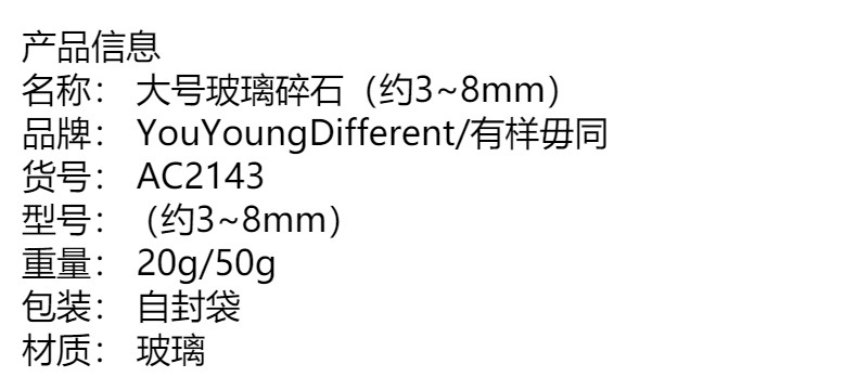| 20克/包(约3~8mm) | USD $0.22 | 9772 pack available |
