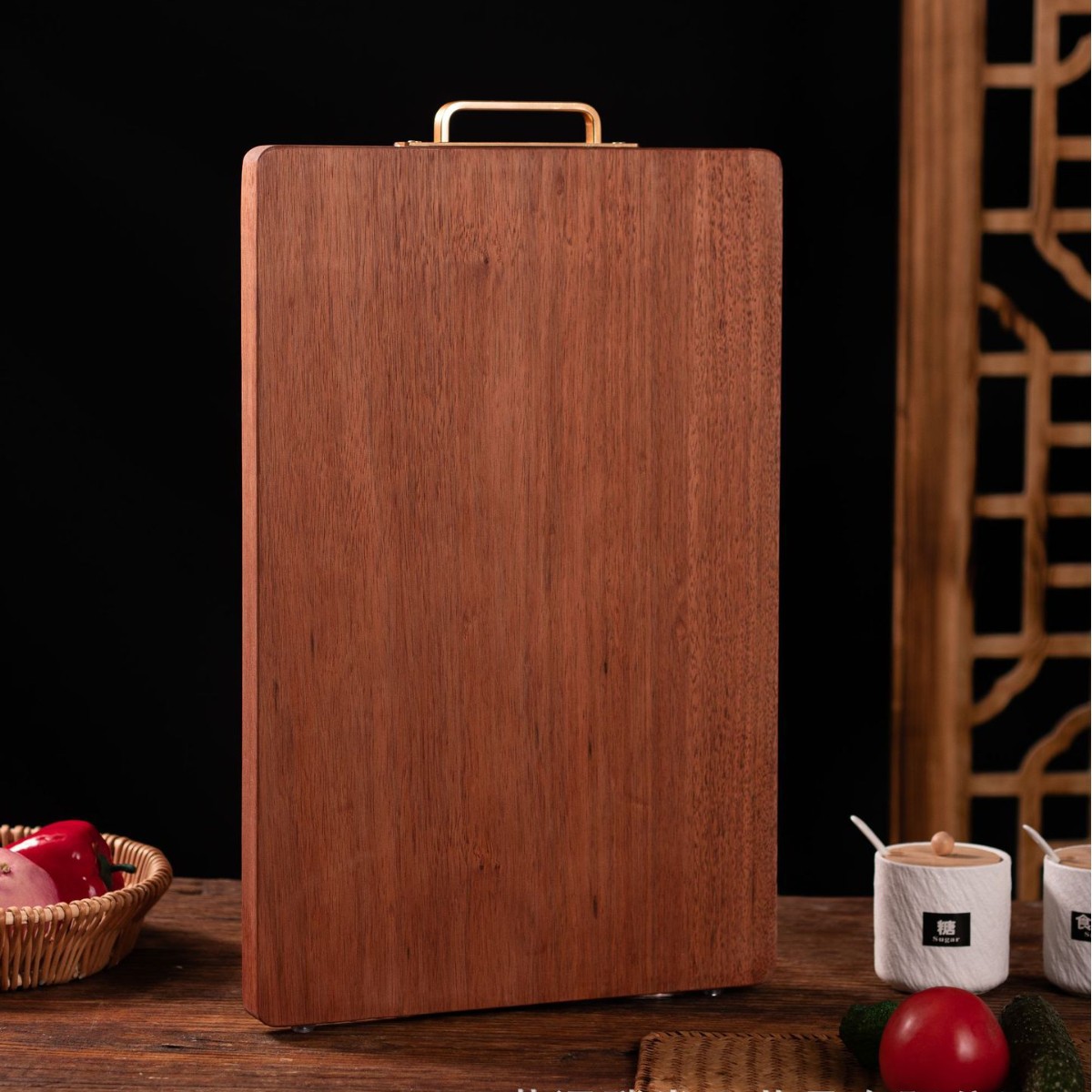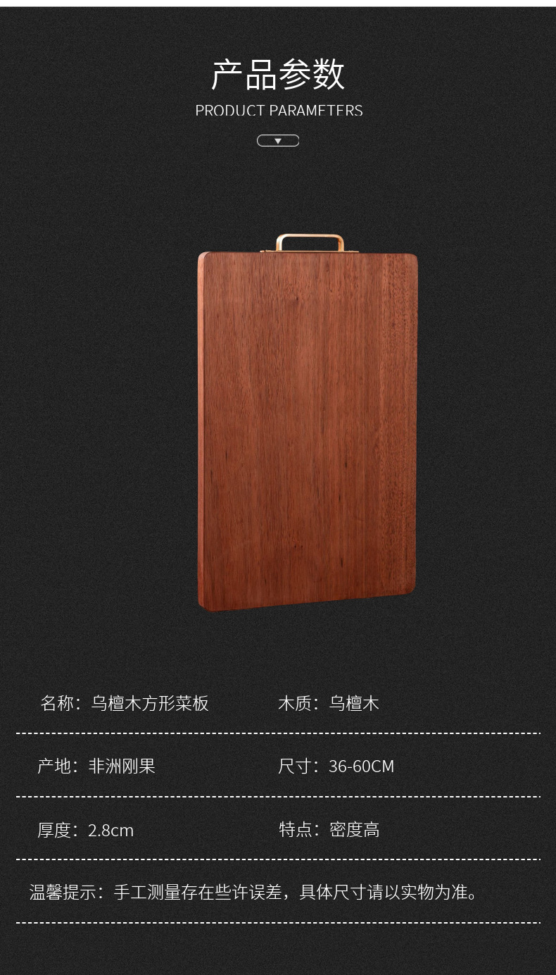 乌檀木整木砧板家用长方形带把手木质菜板水果蔬菜面包板实木案板