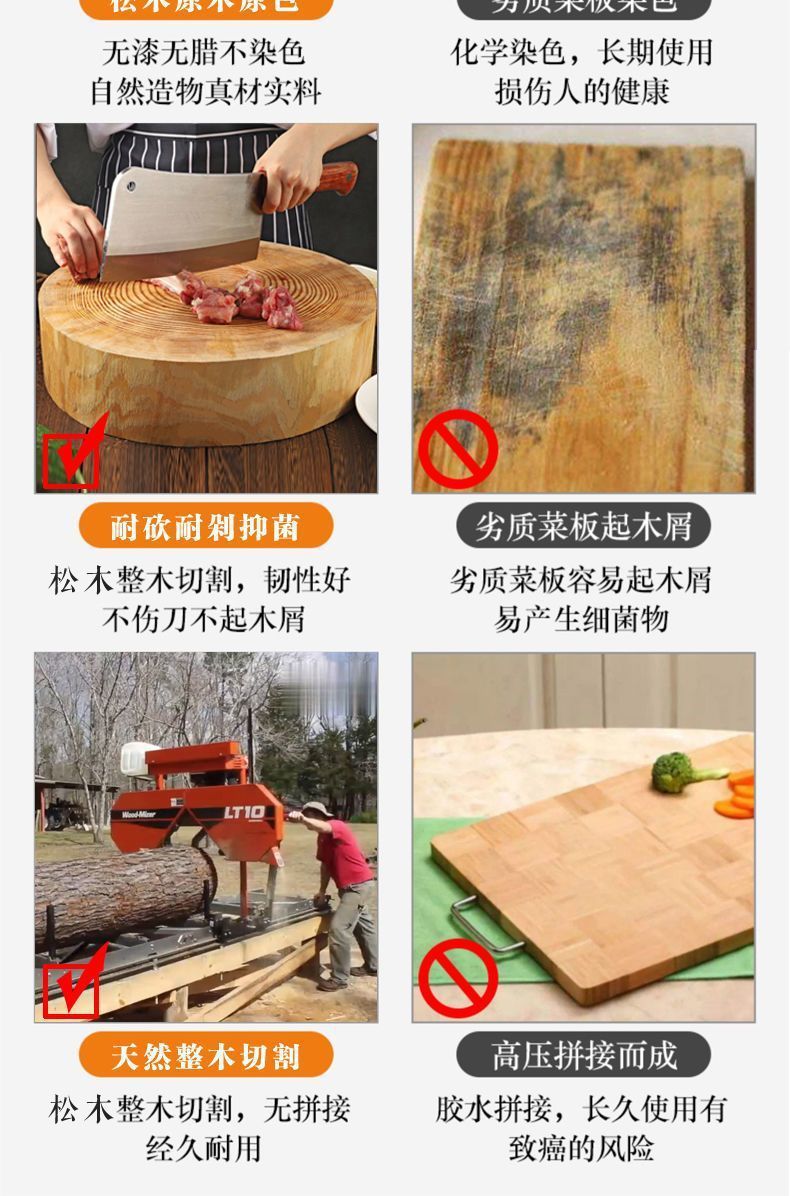 松木整木菜板加厚粘板家用实木菜墩案板商用砧板防霉切菜板直发