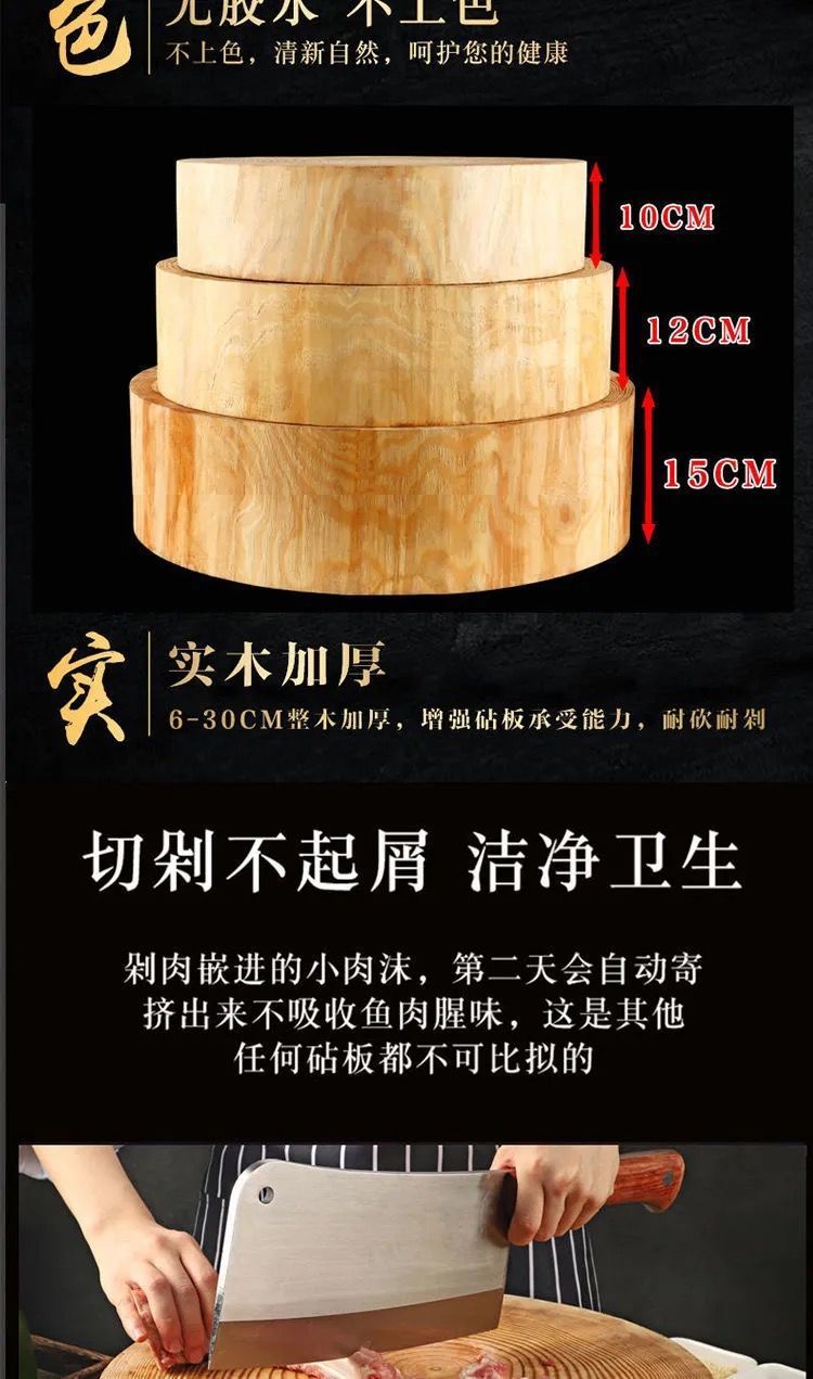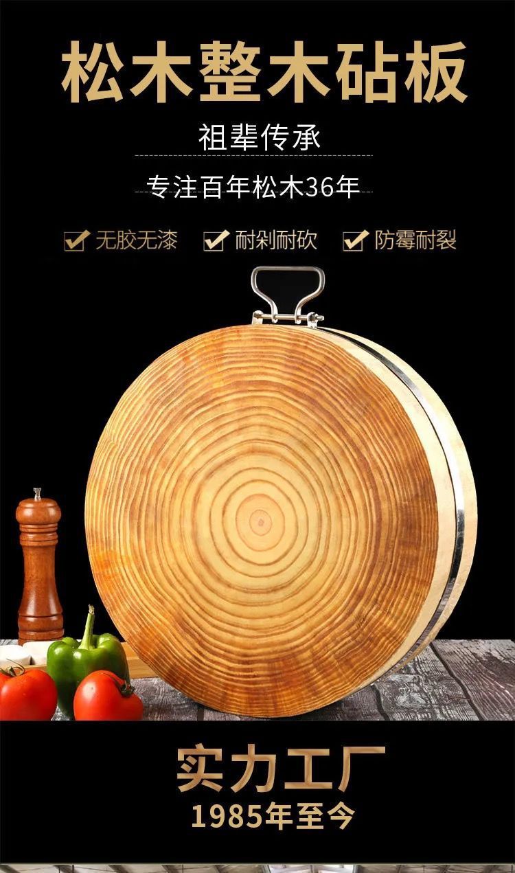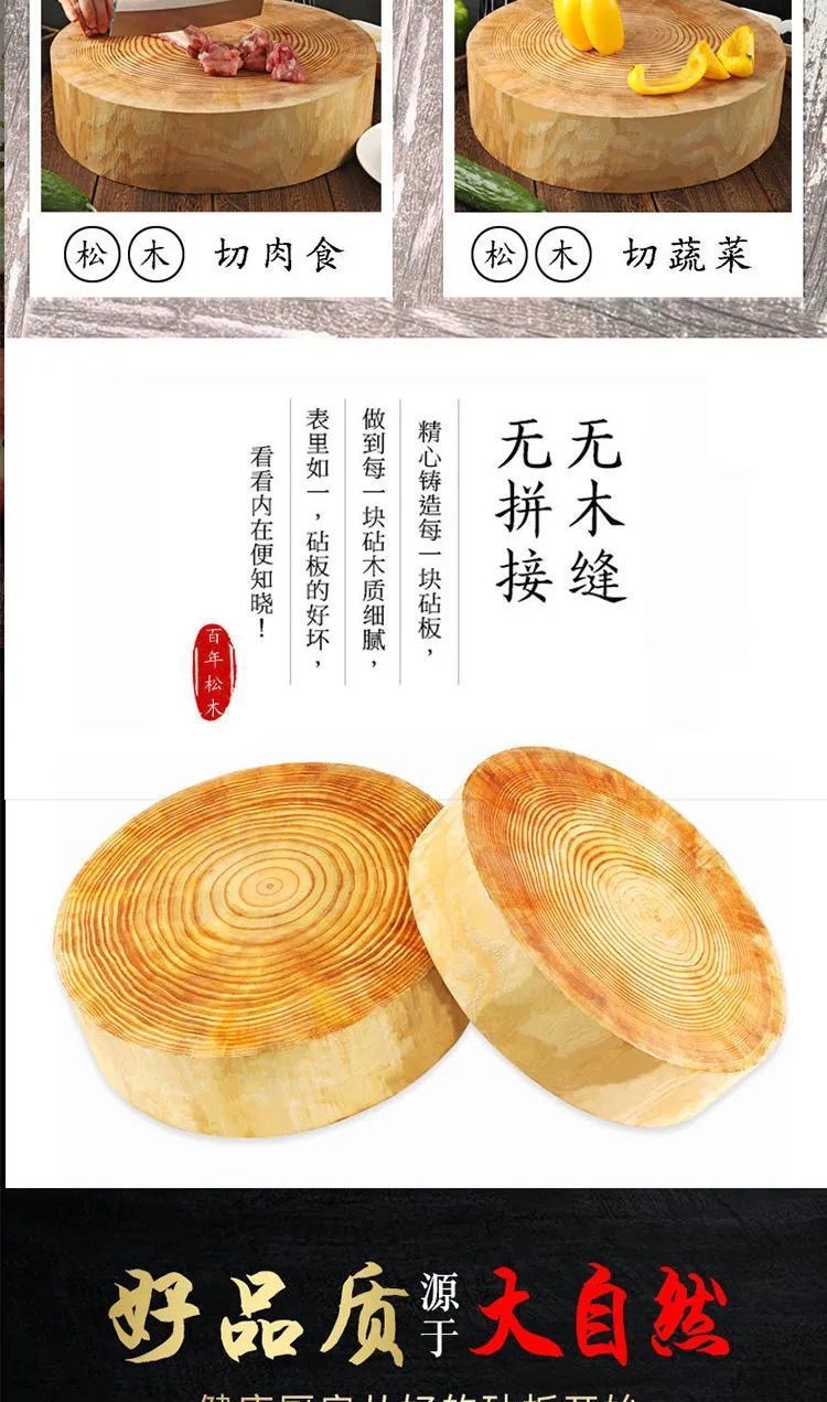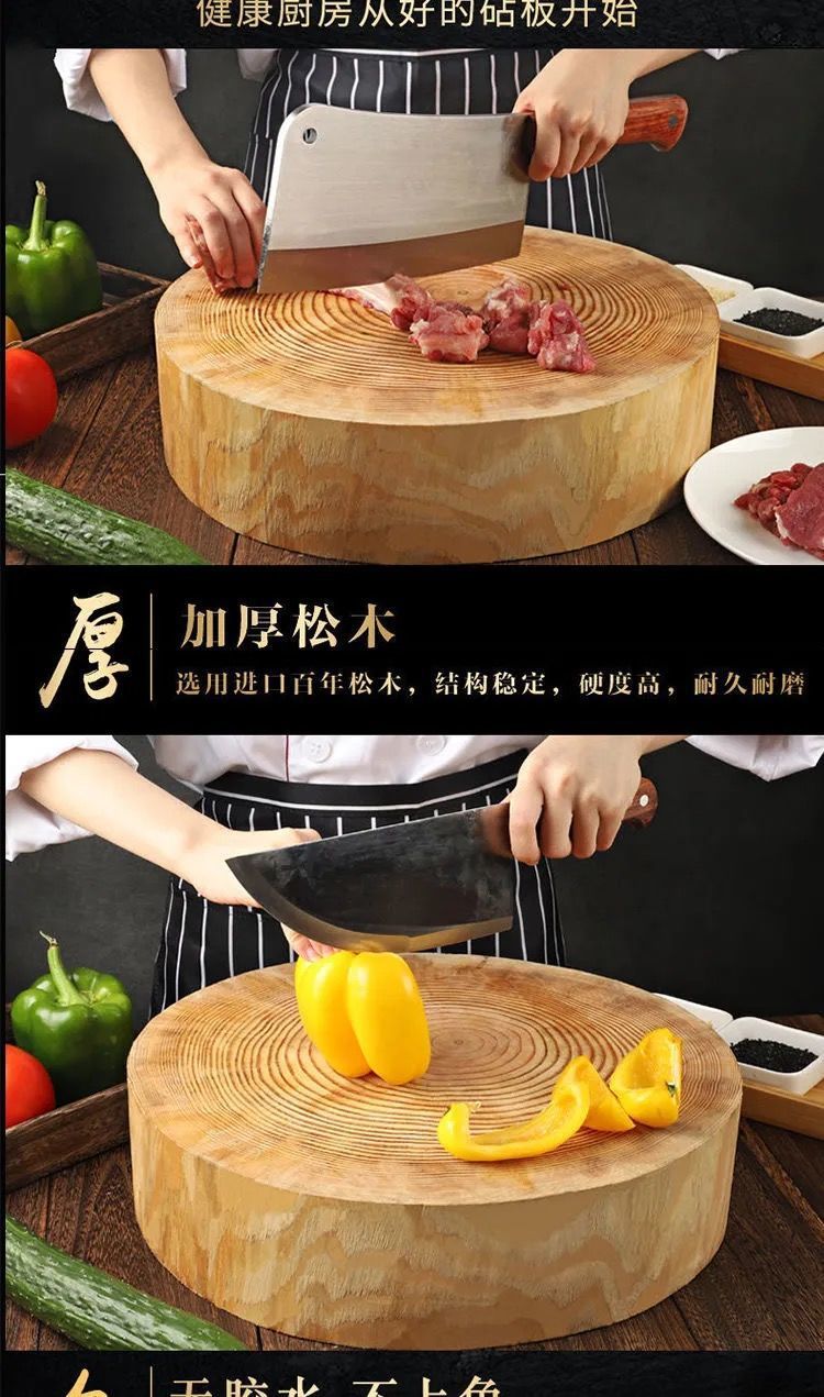 加厚圆形松木菜板实木家用案板厨房切菜板商用菜墩整木砍骨头砧板