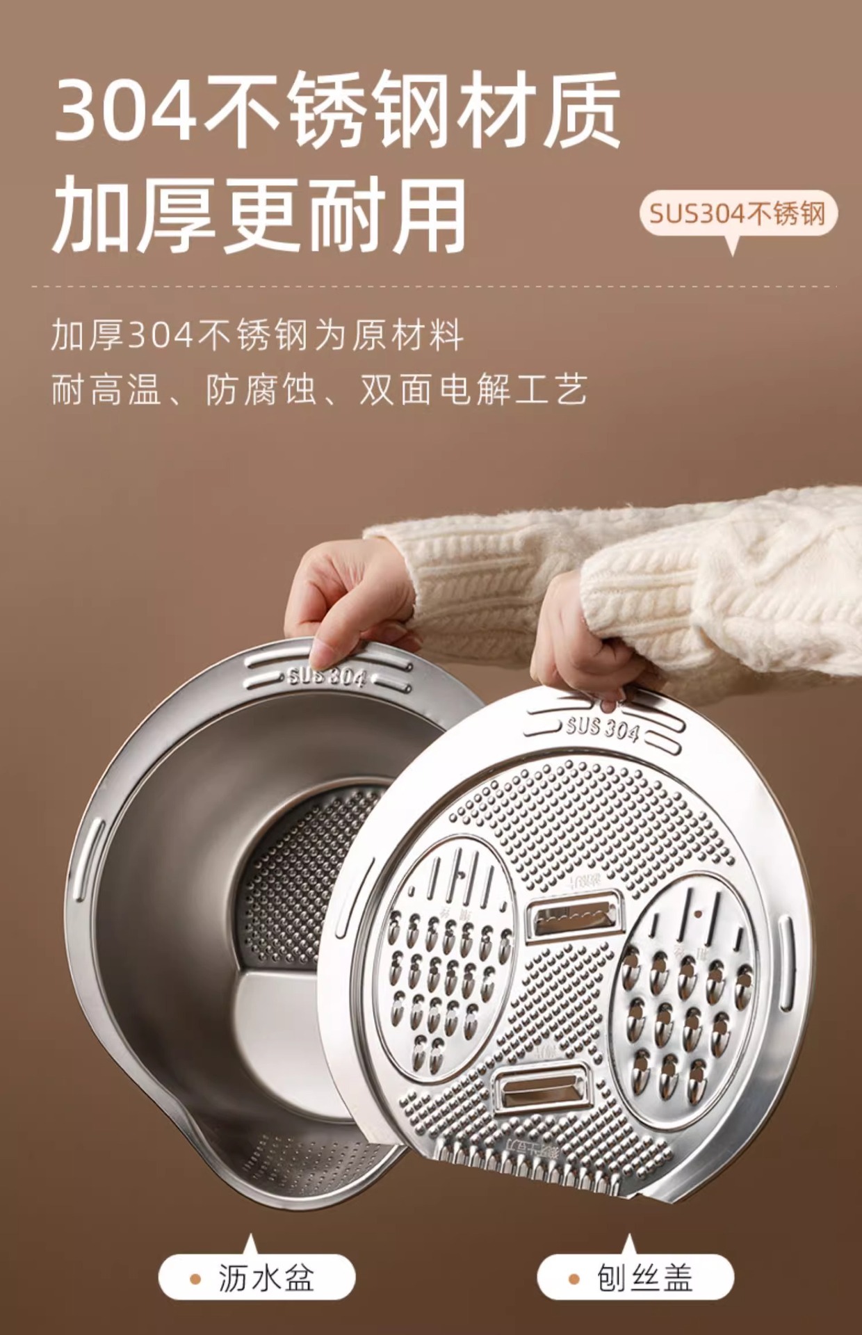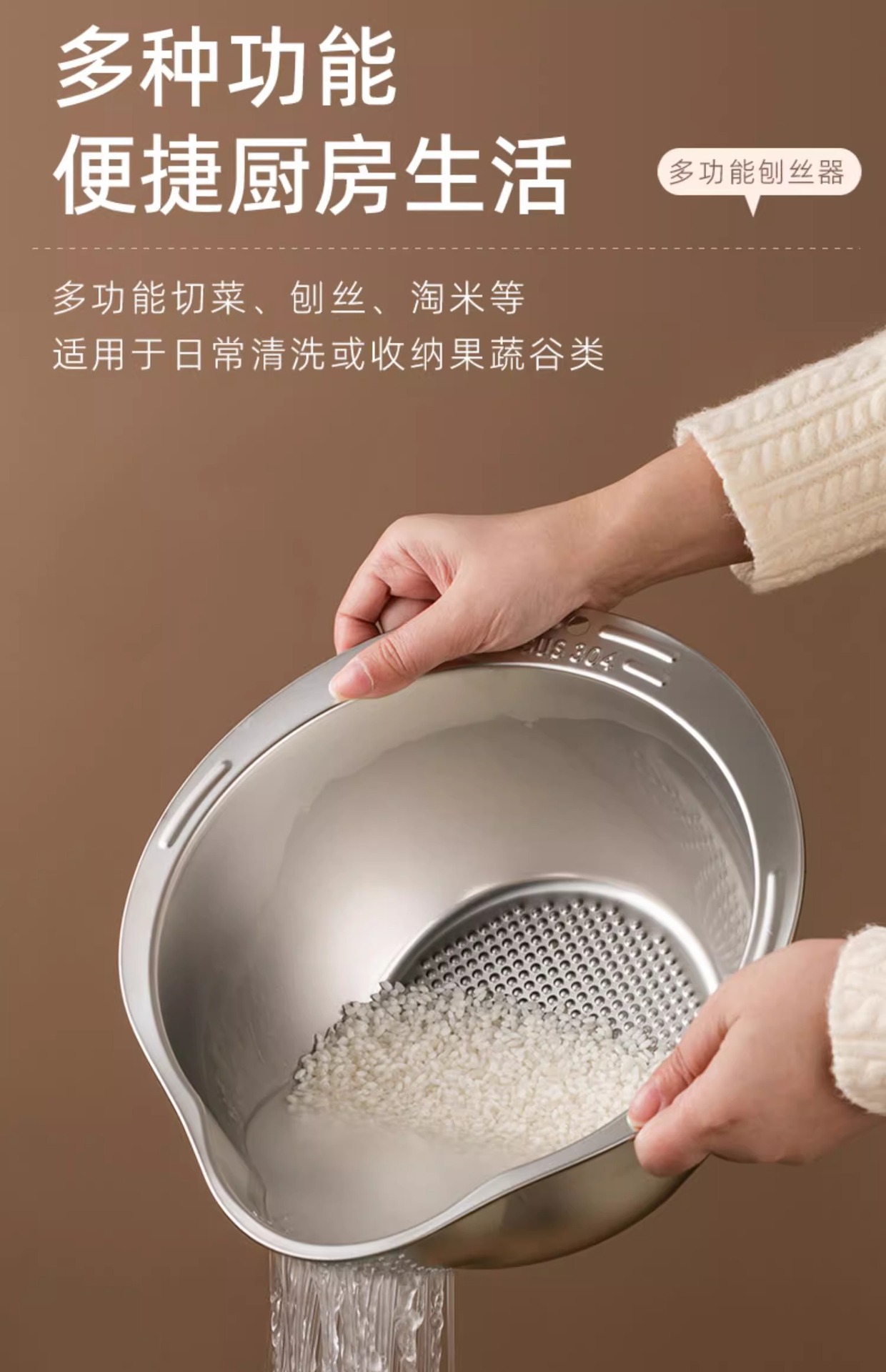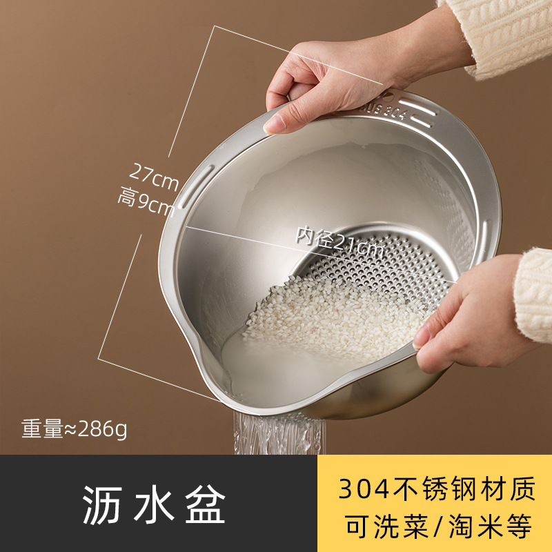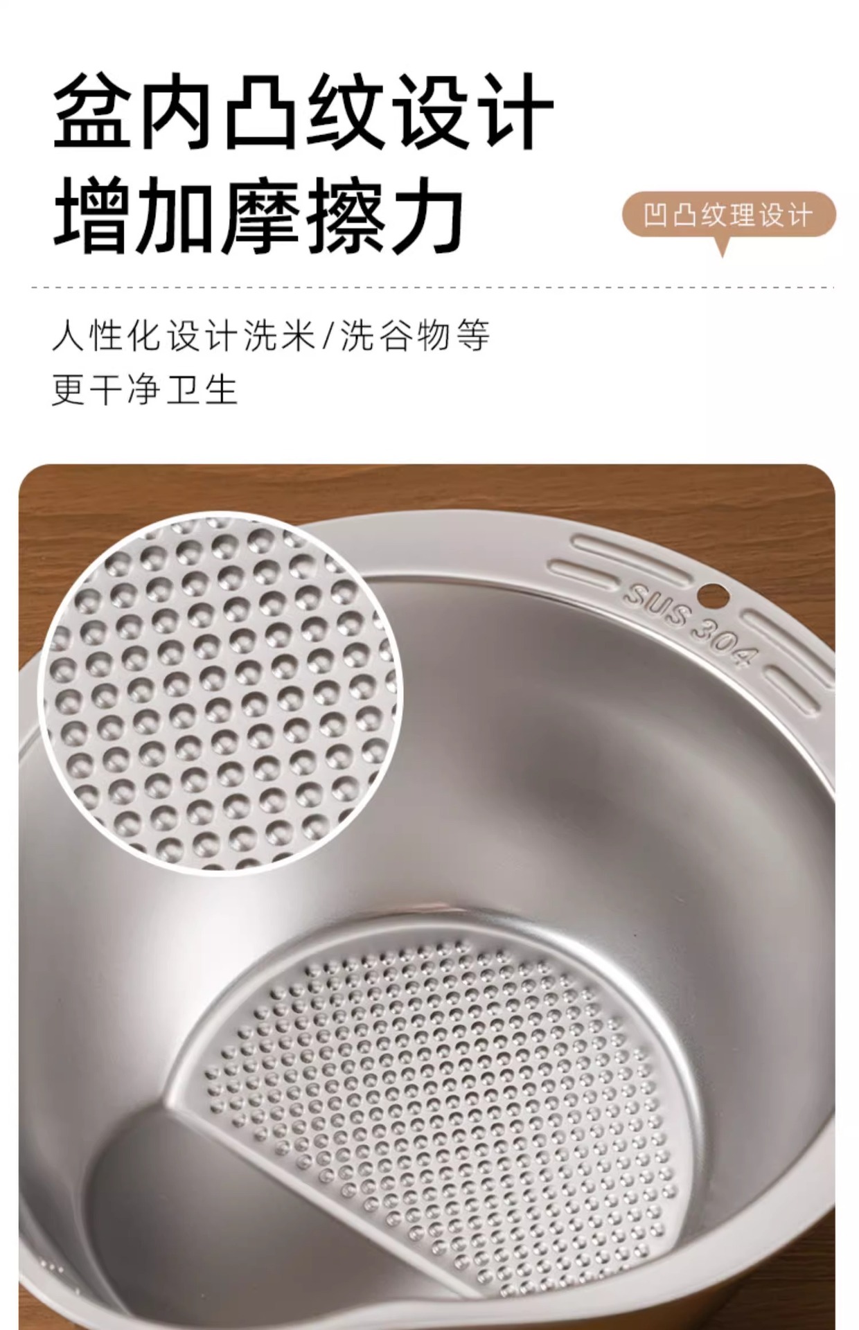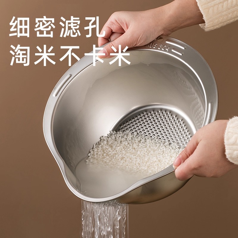【意华厨品】厨房淘米304不锈钢家用多功能沥水细孔加厚淘洗米盆