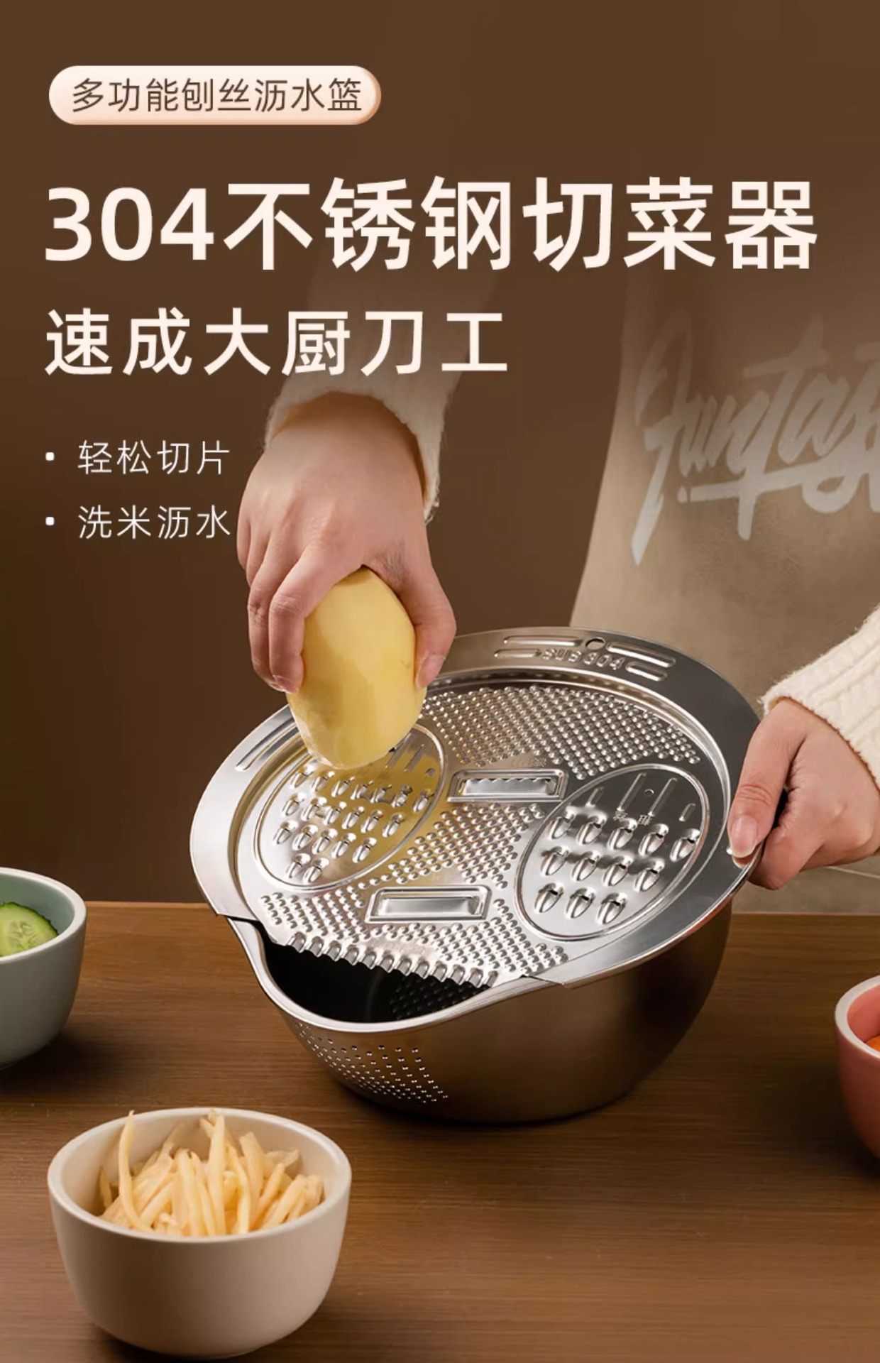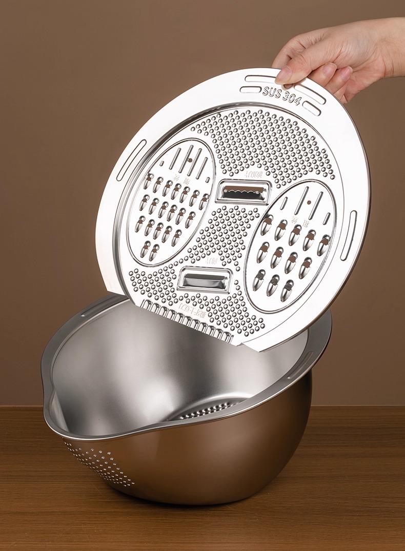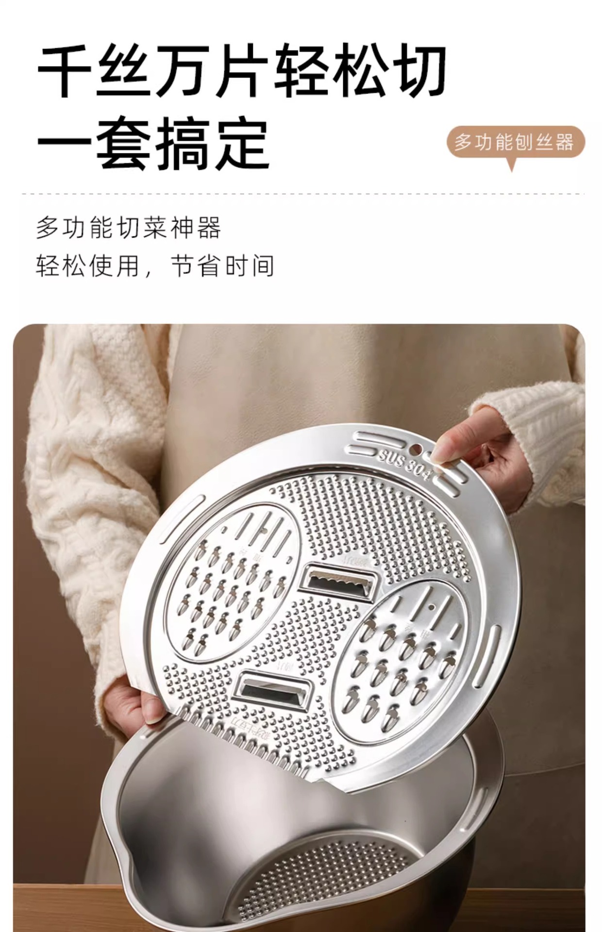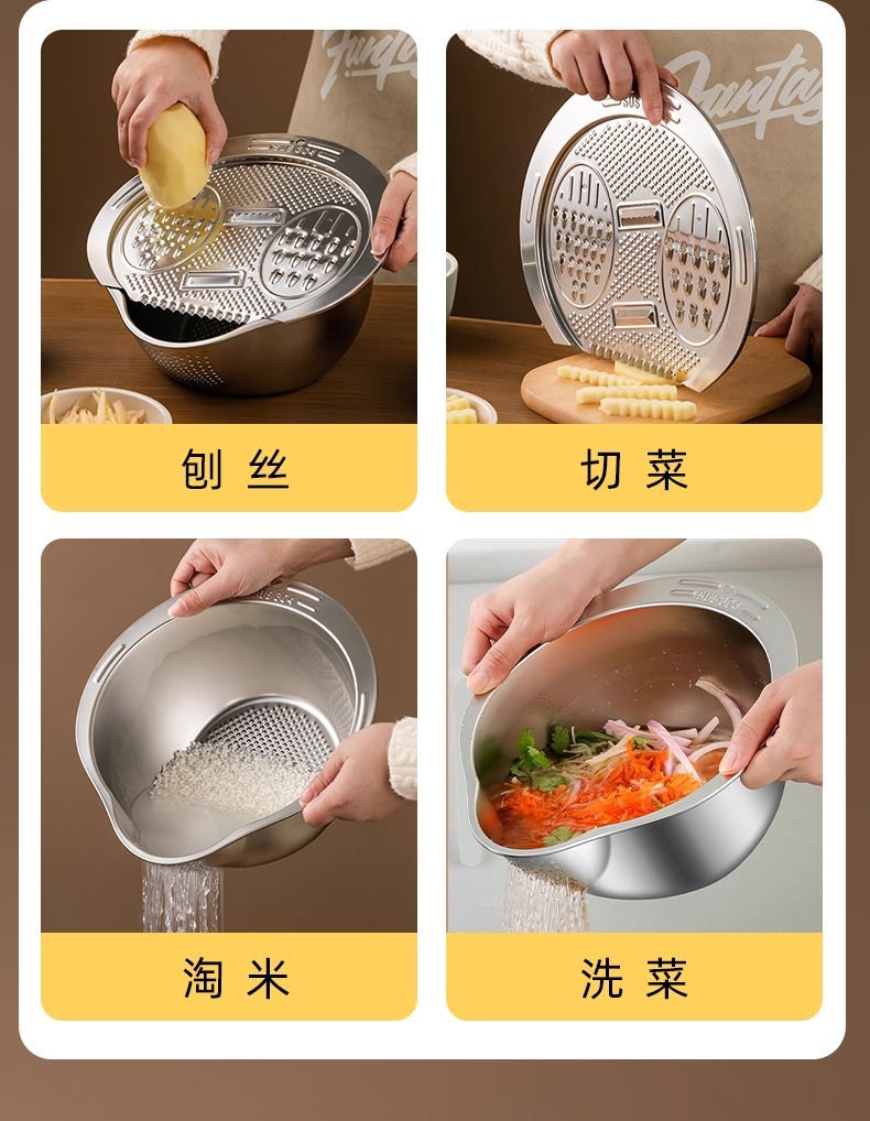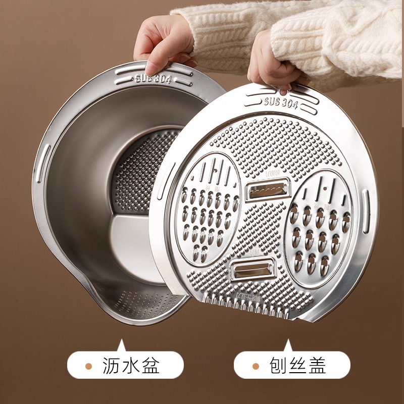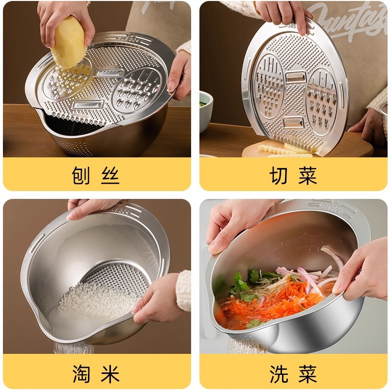 【意华厨品】厨房淘米304不锈钢家用多功能沥水细孔加厚淘洗米盆