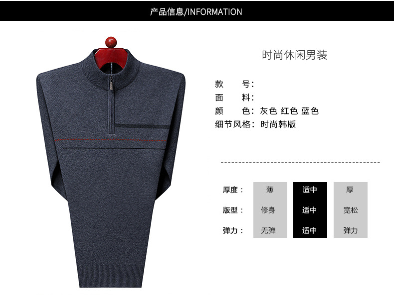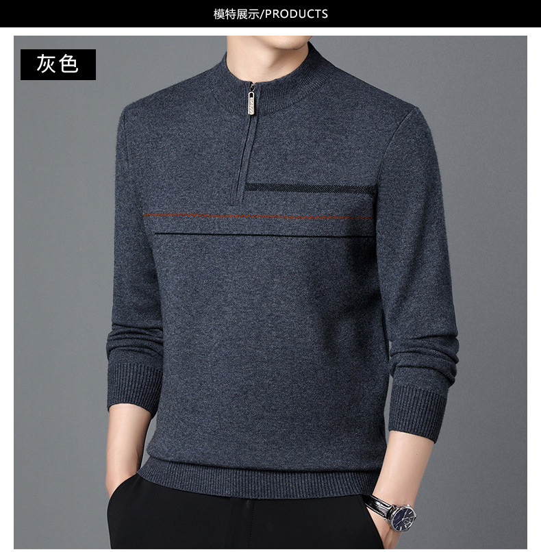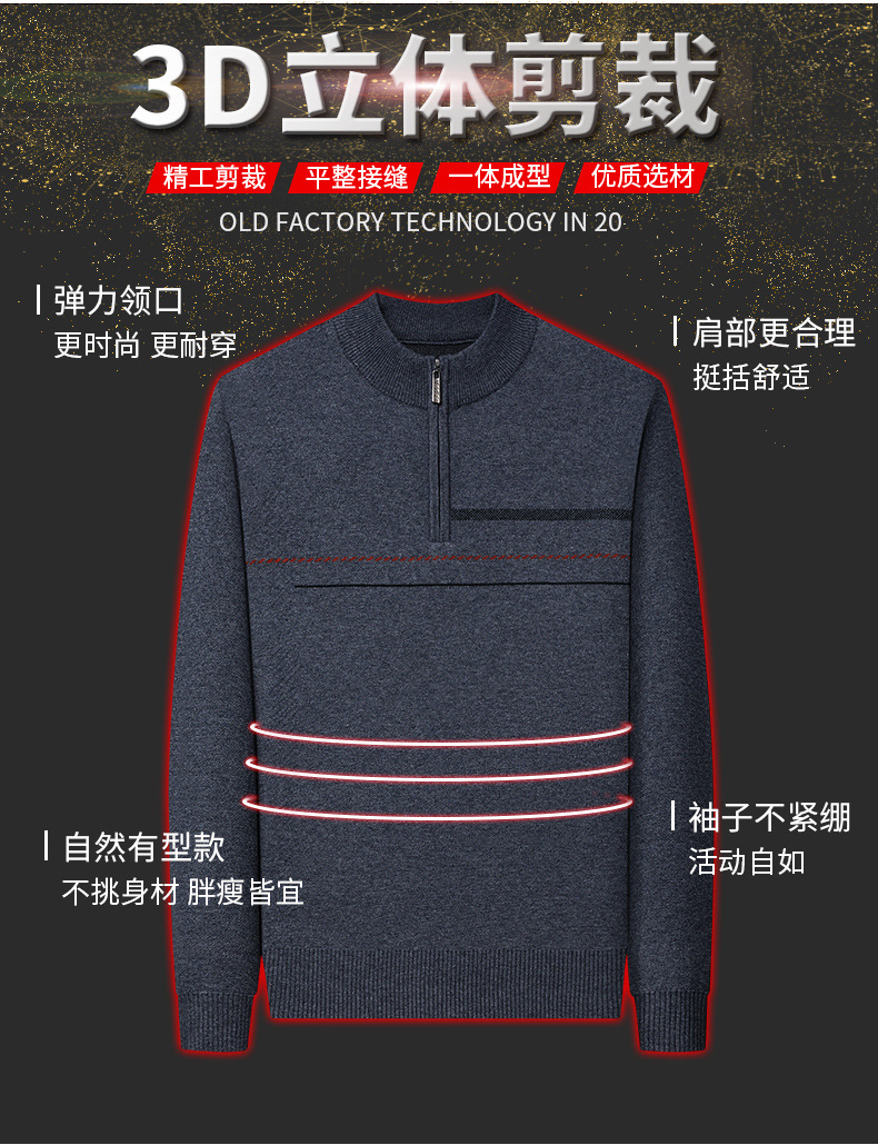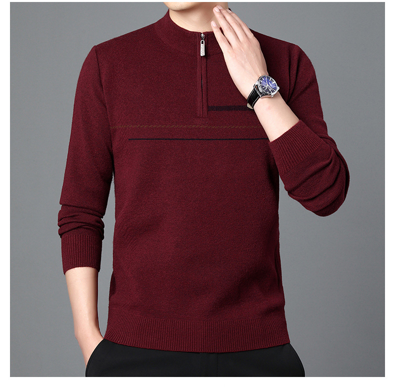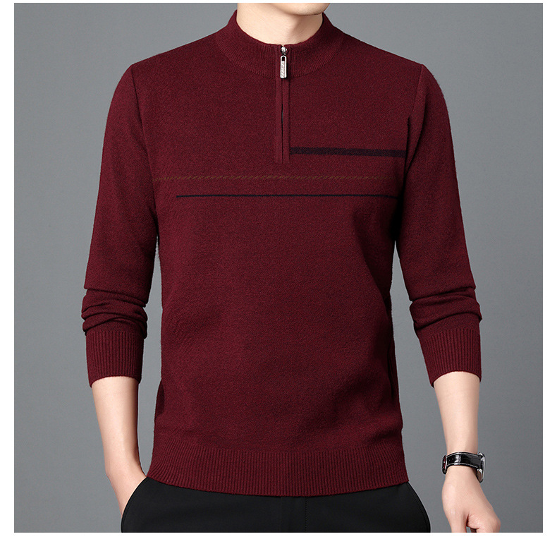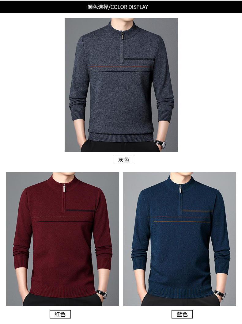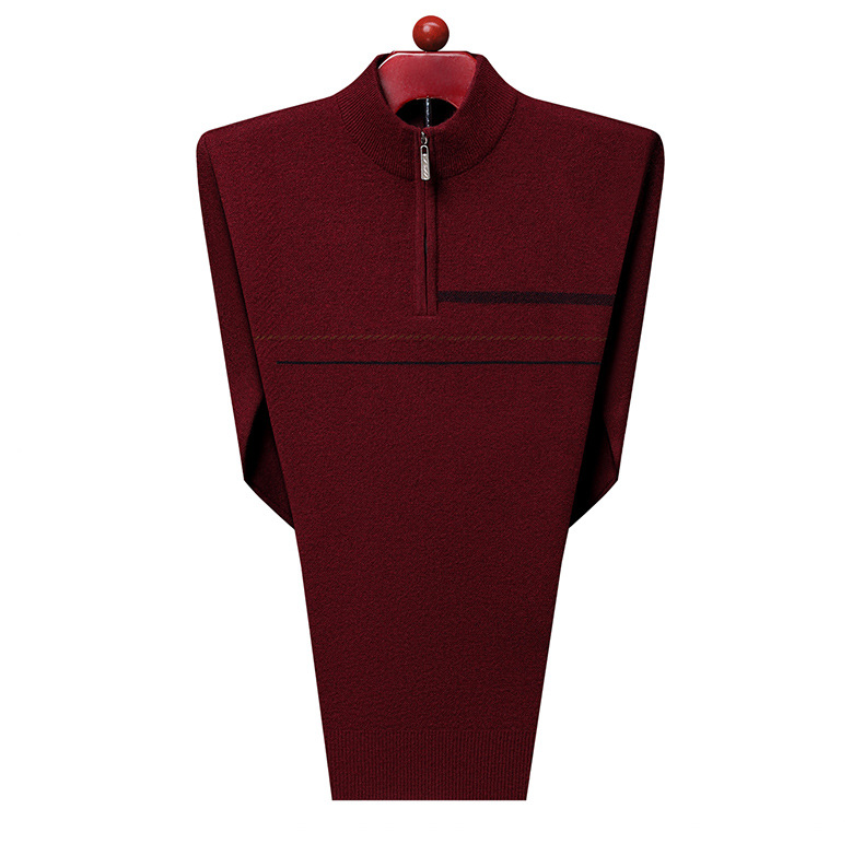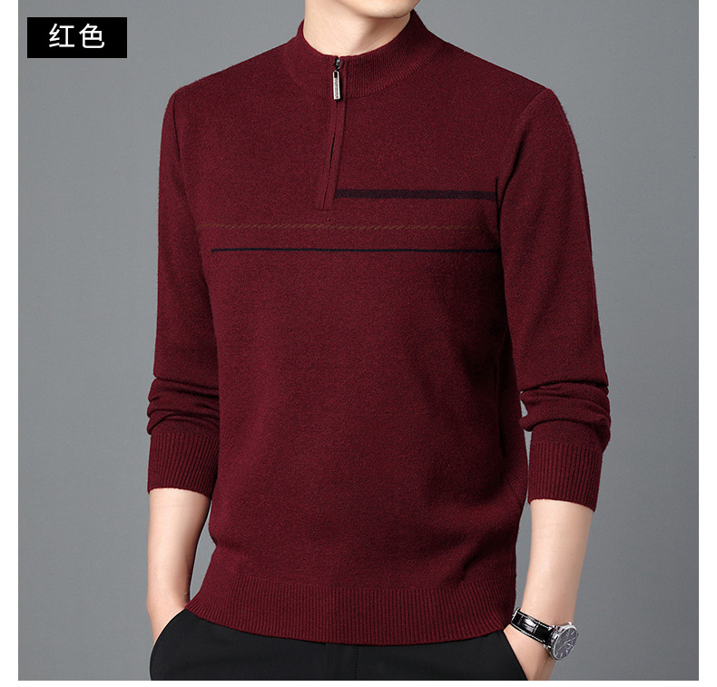 爸爸秋冬拉链领羊毛衫男装2025新款中老年毛衣过年红色保暖针织衫