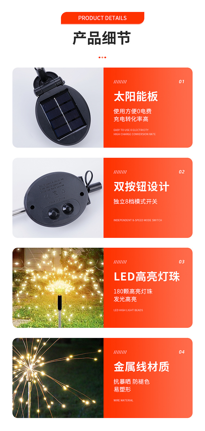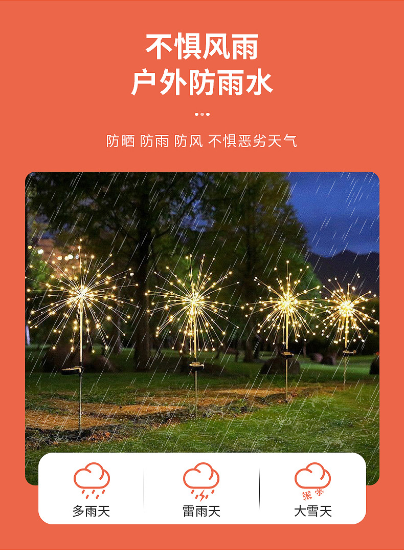 直销led太阳能地插烟花灯蒲公英草坪灯户外防水花园庭院装饰灯串