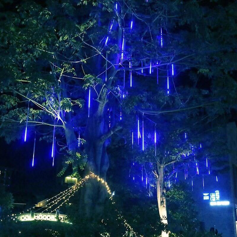 LED流星雨灯户外防水节日庭院装饰太阳能灯串挂树led彩色装饰灯串