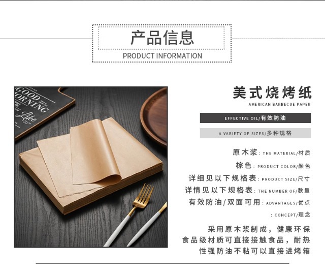 本色烧烤纸烤肉吸油纸烘焙硅油纸商用长方形烤箱油纸垫食品级不粘