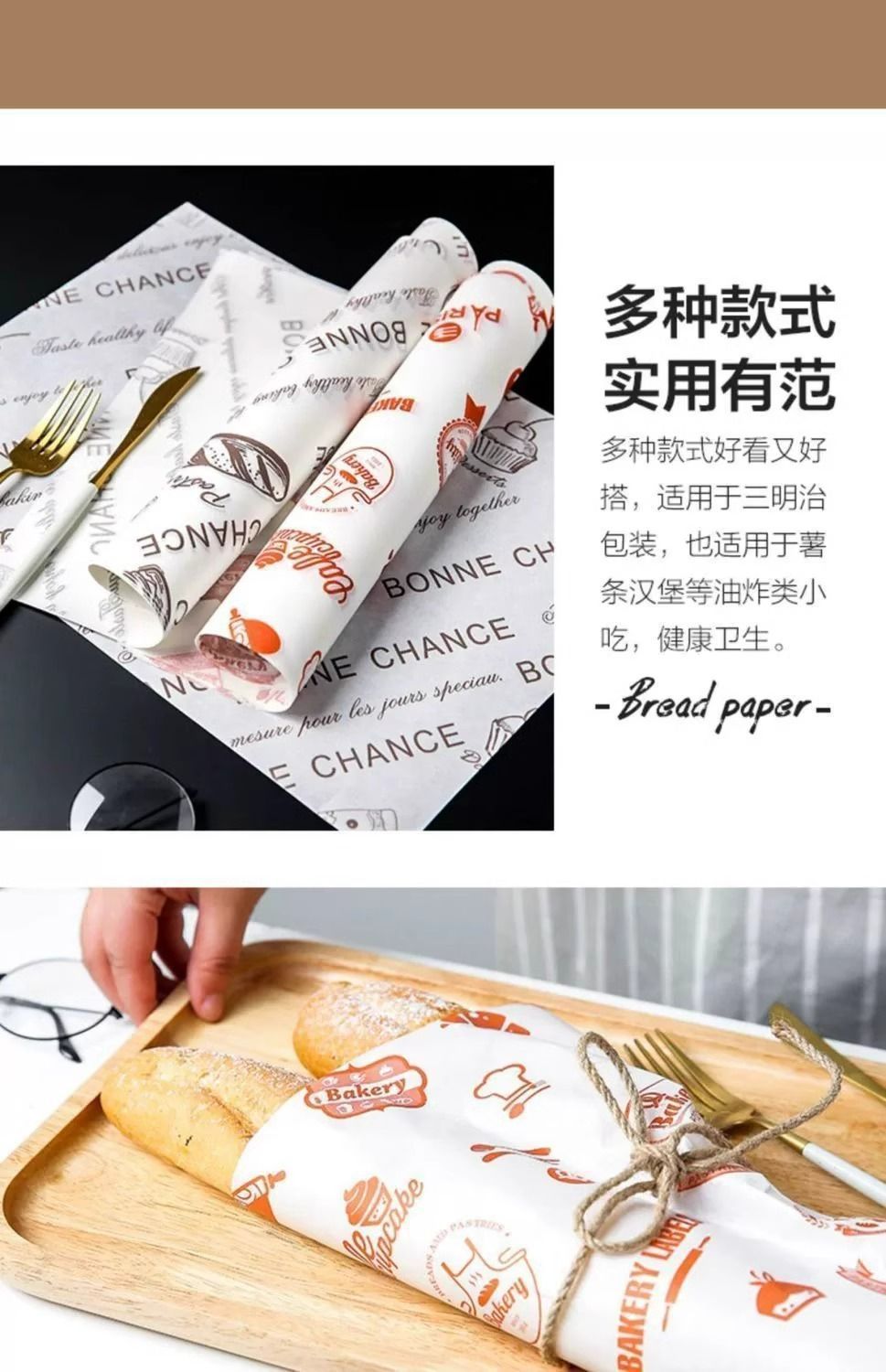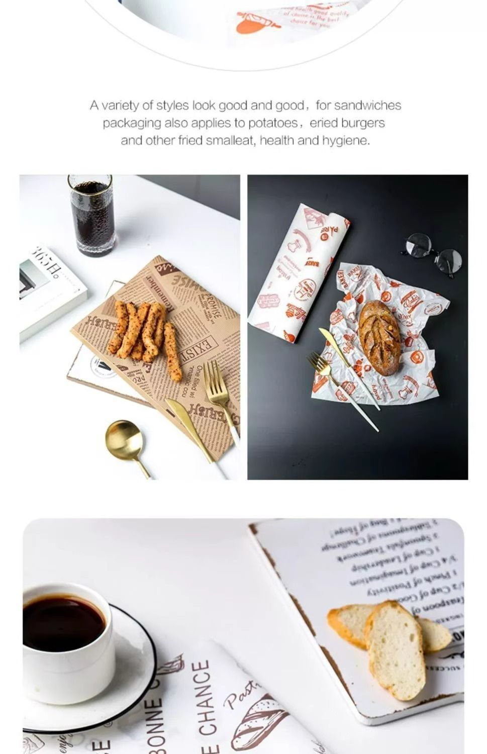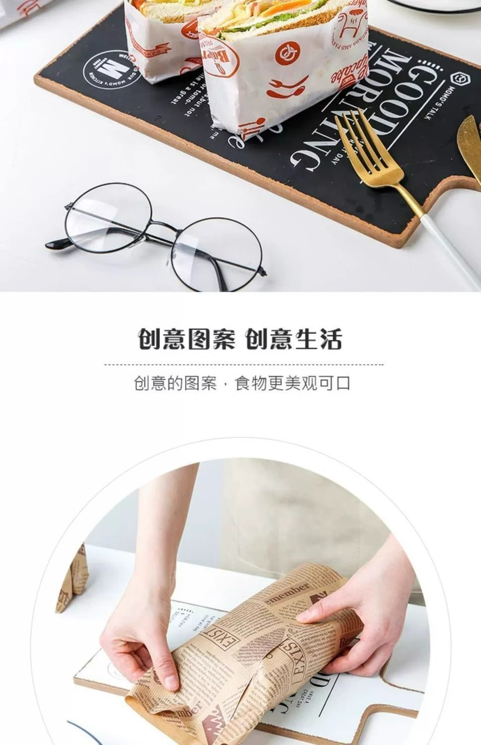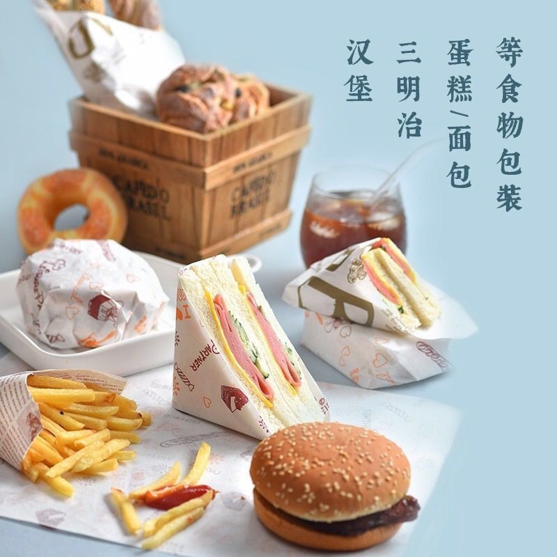 防油纸三明治包装纸可切可微波加热汉堡垫盘纸三文治鸡肉卷包装纸