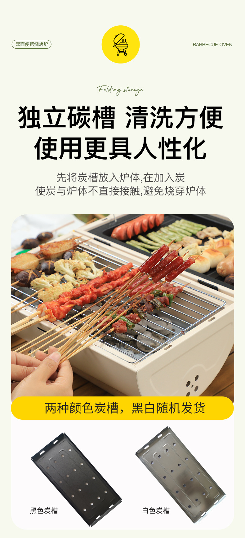 便携式淄博烧烤炉家用双面木炭烧烤架野外烟囱炉户外露营烤肉炉