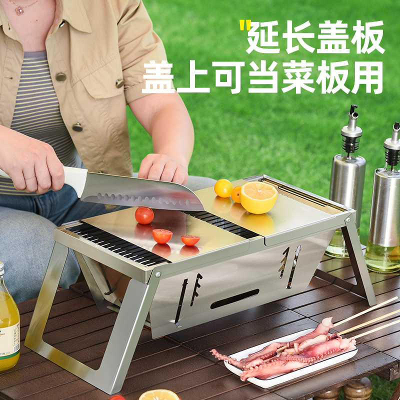 不锈钢烧烤炉 户外木炭加厚烧烤架家用小型一秒折叠碳烤烤串炉