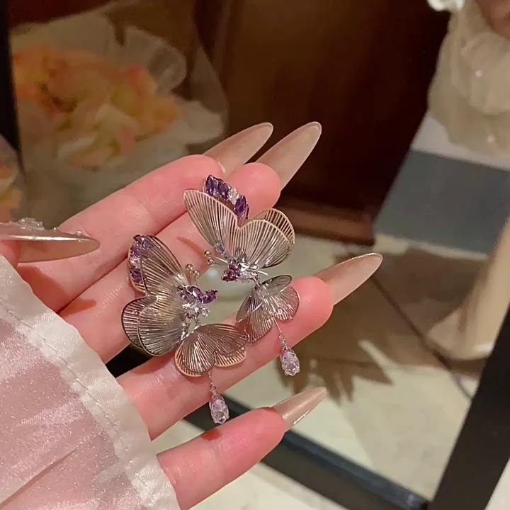 饰品小众高级感百搭气质耳钉耳饰S925银针夸张大气蝴蝶耳环女批发