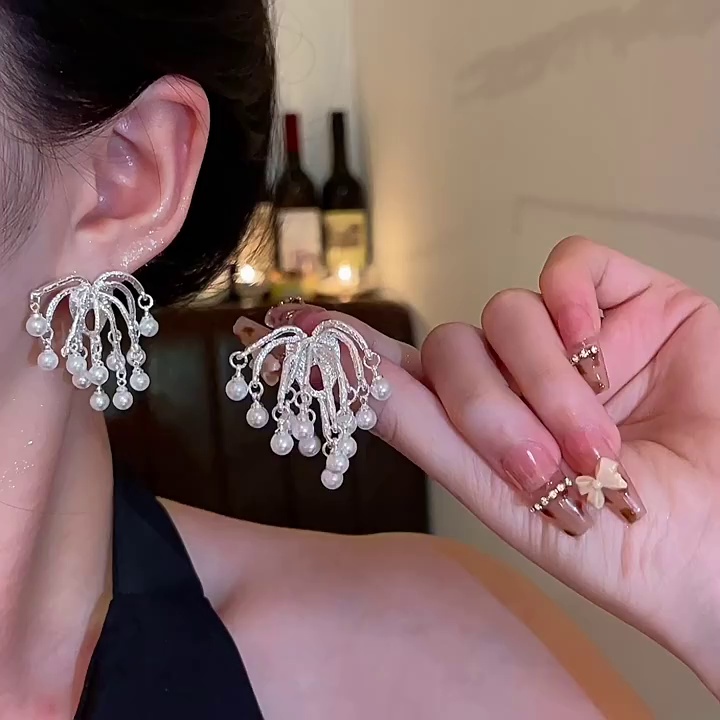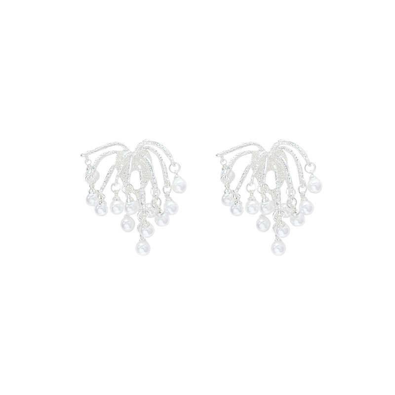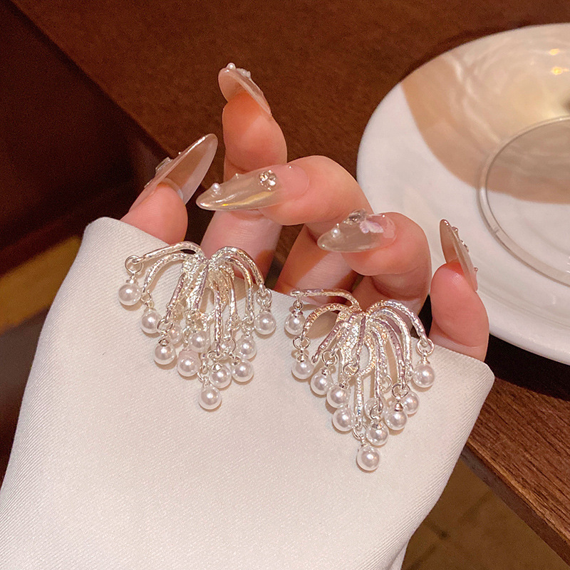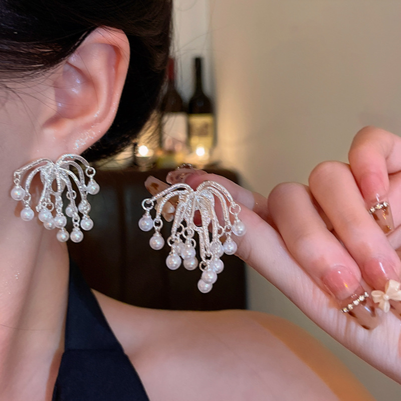 耳环小众高级感珍珠耳钉耳饰品S925银针镀白金气质烟花流苏耳环女