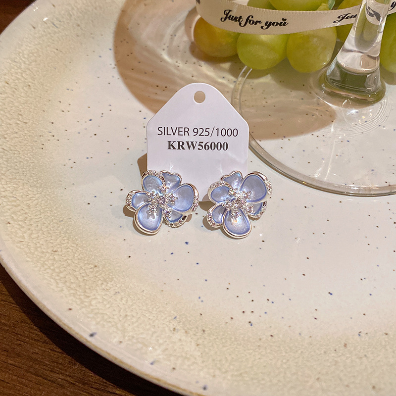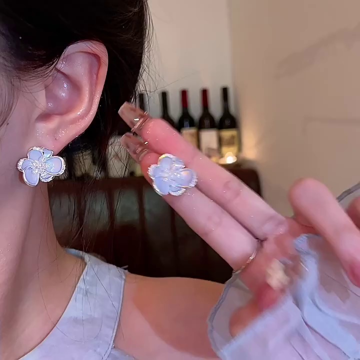 小众高级感花朵耳钉S925银针超仙百搭气质滴釉立体山茶花耳环女
