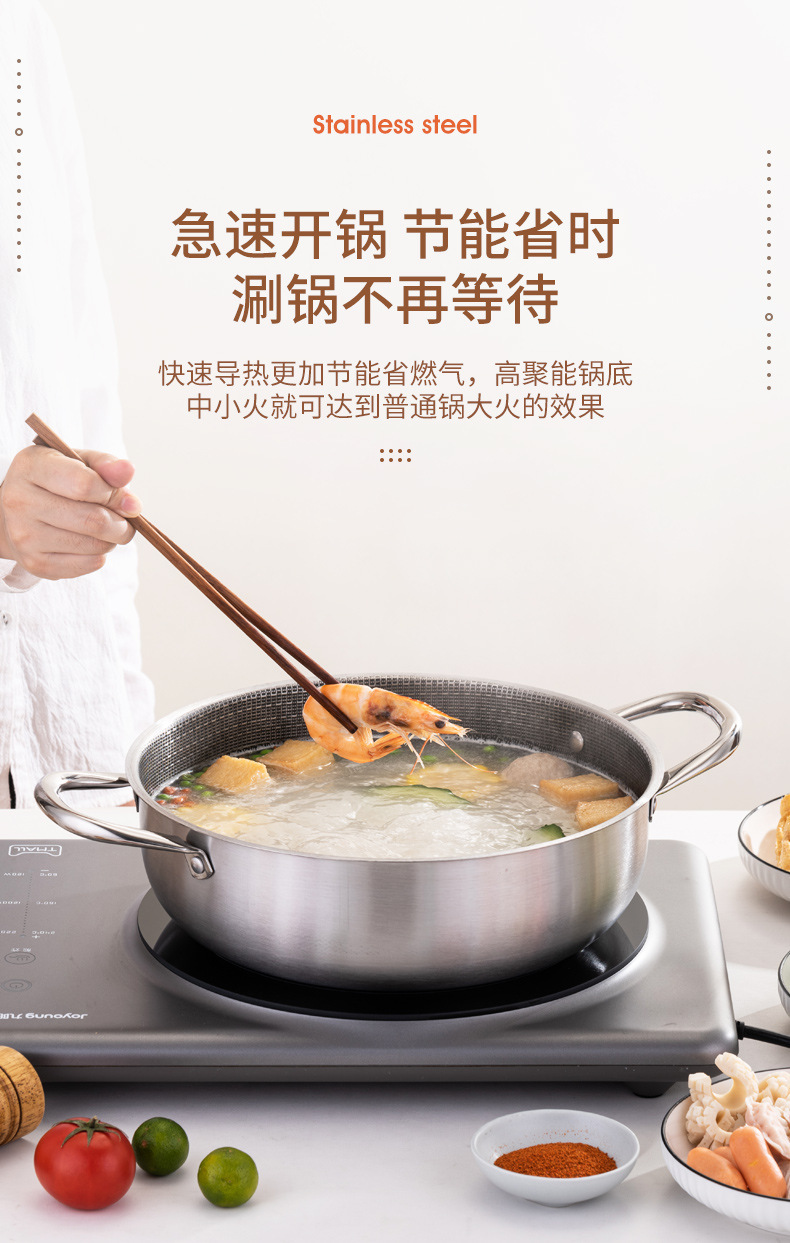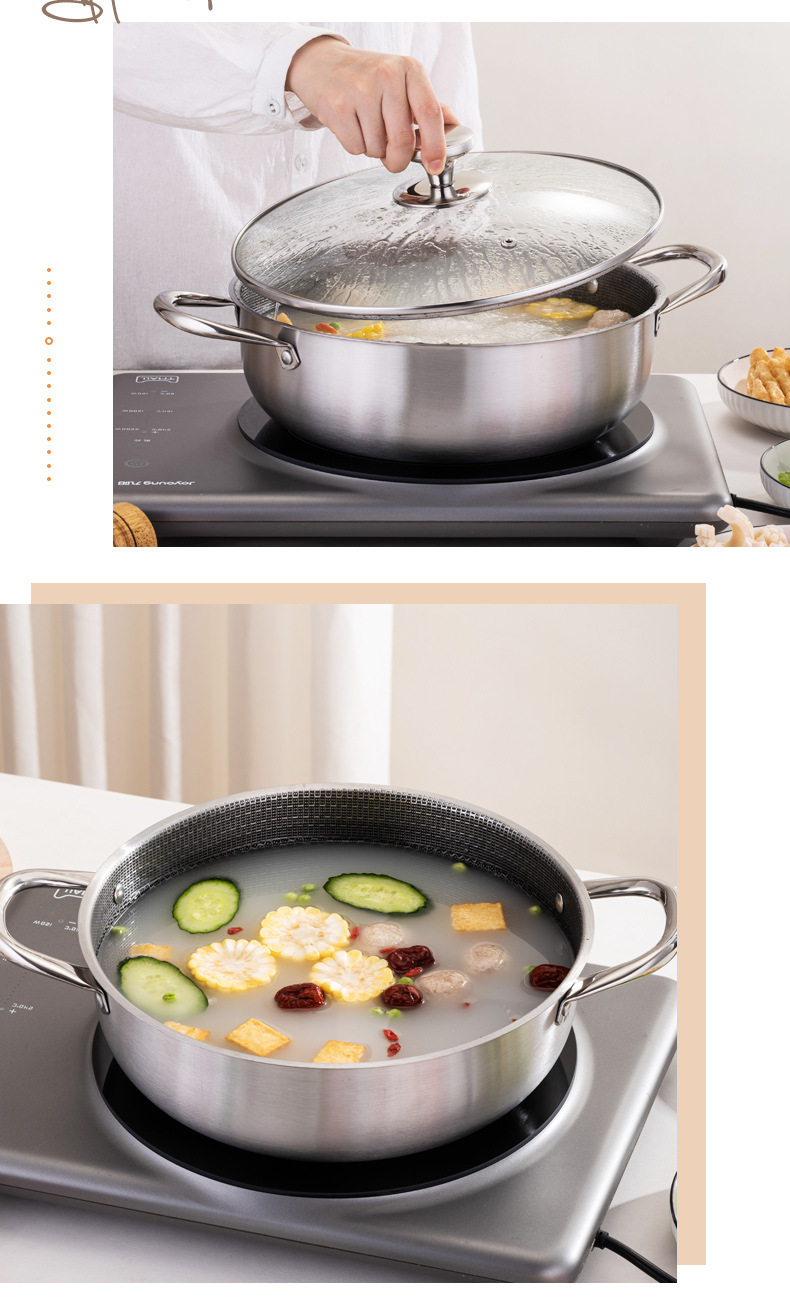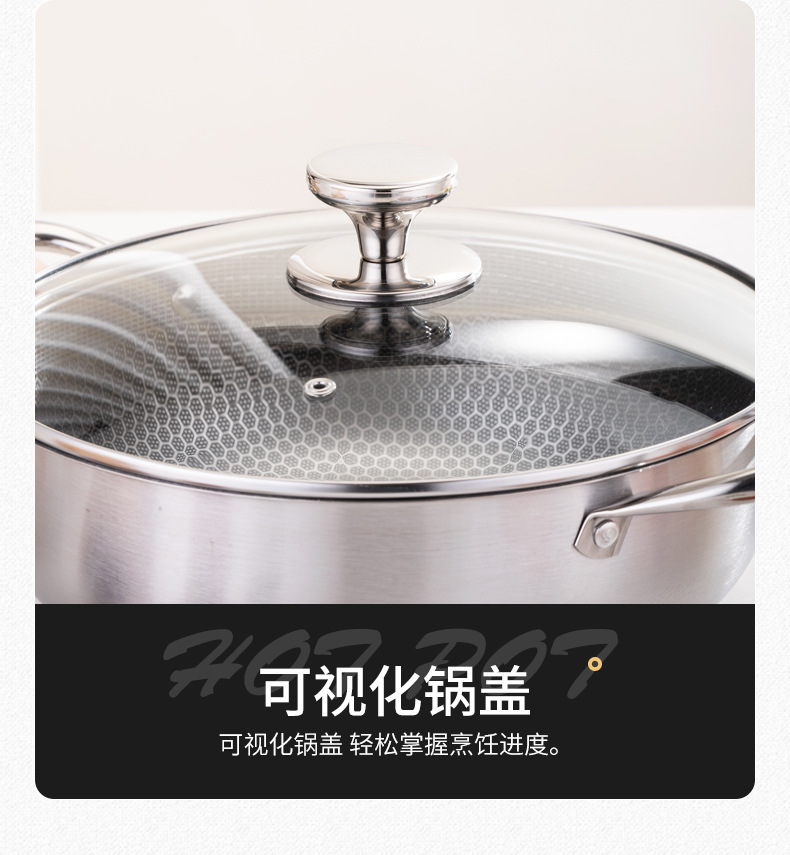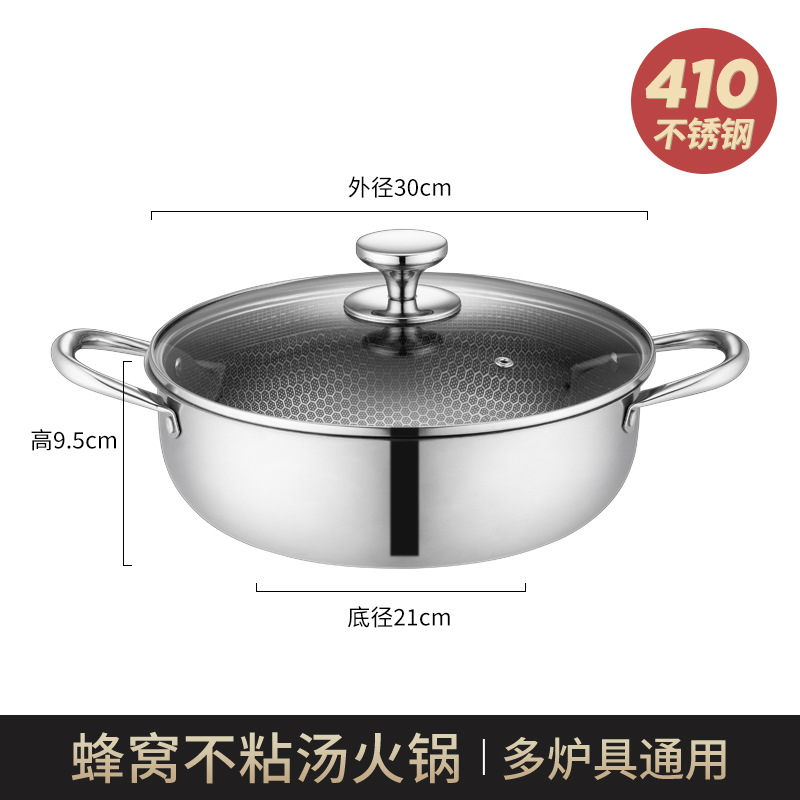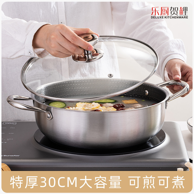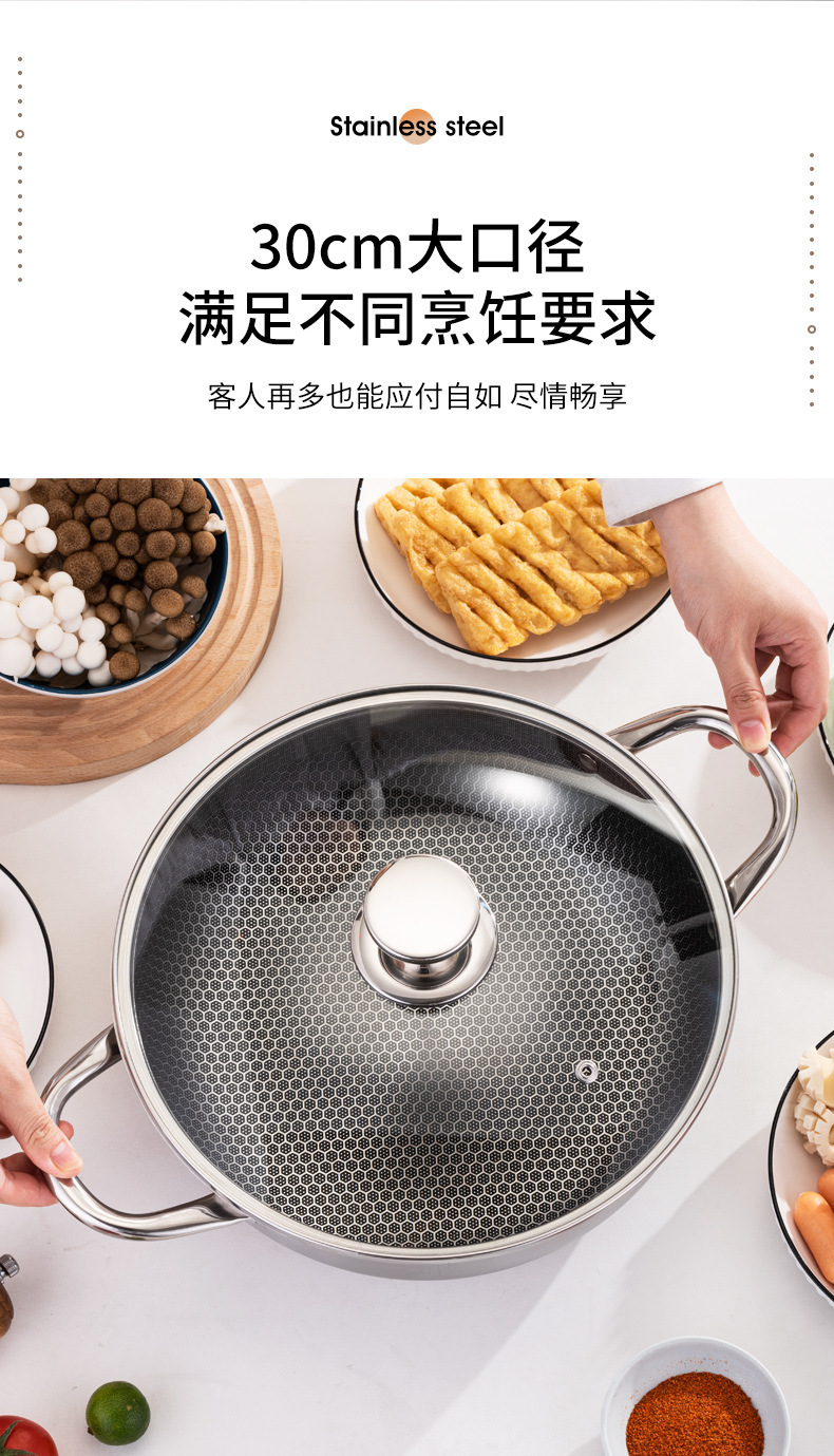 加厚30cm不锈钢锅双柄汤锅物理不粘火锅涮锅电磁炉锅实用礼品锅具