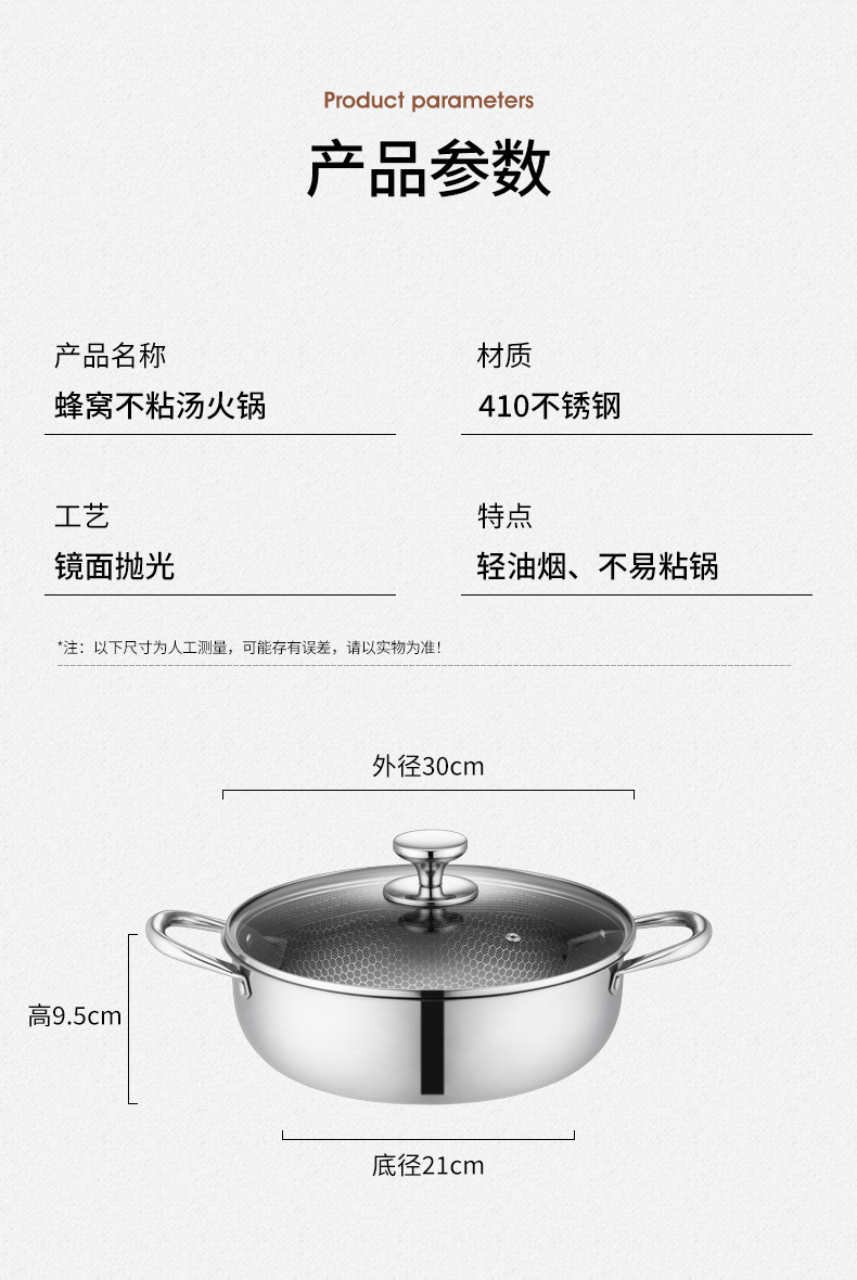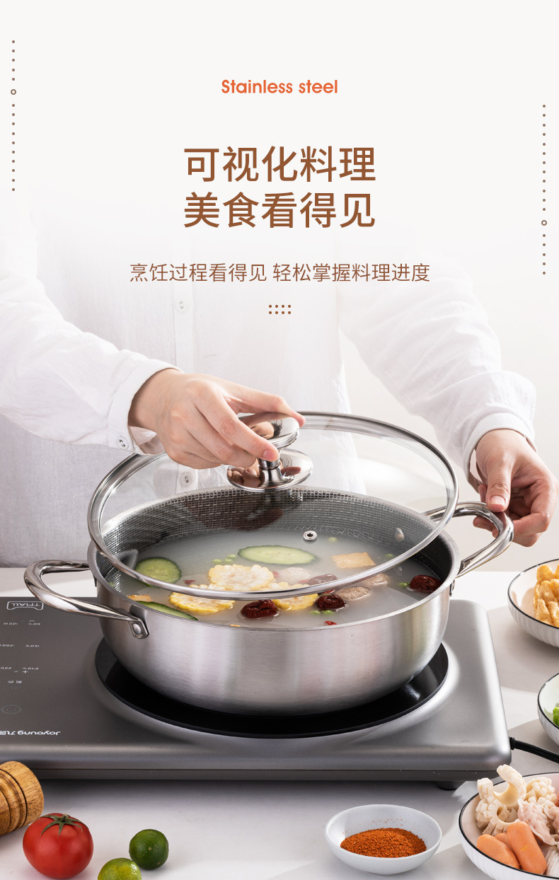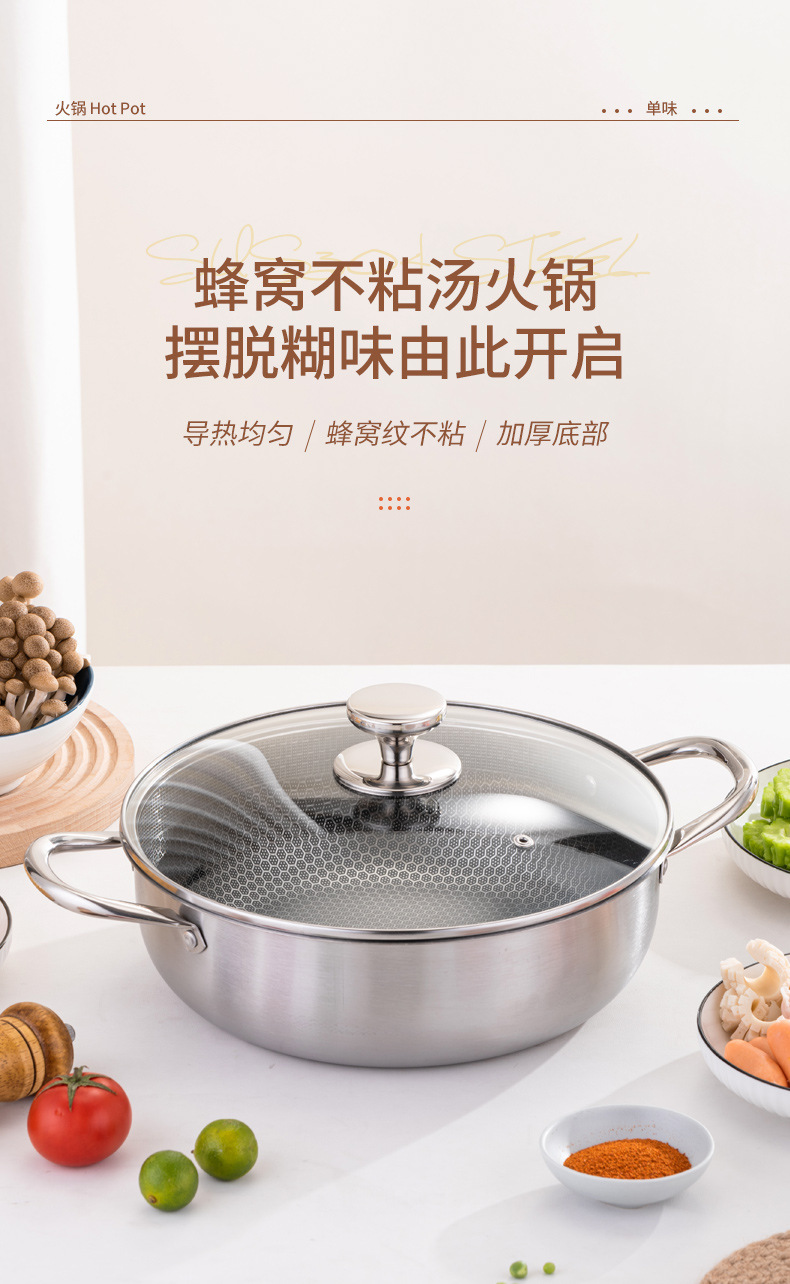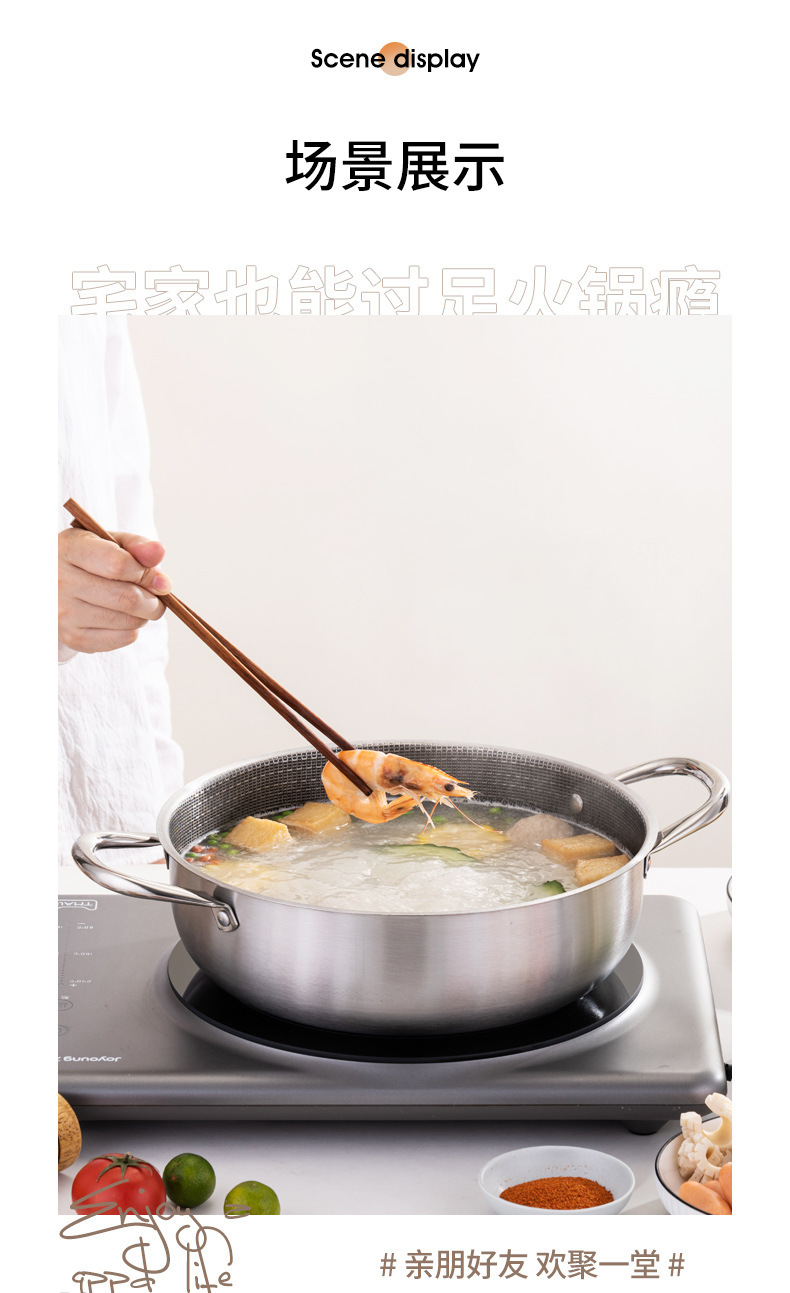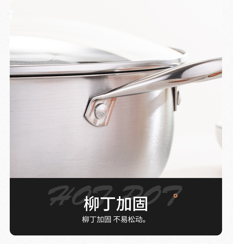 加厚30cm不锈钢锅双柄汤锅物理不粘火锅涮锅电磁炉锅实用礼品锅具