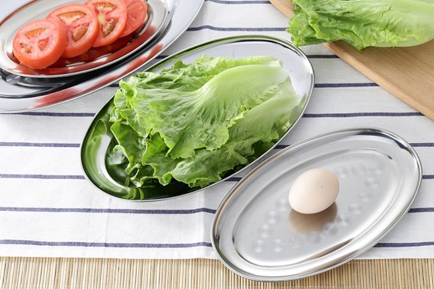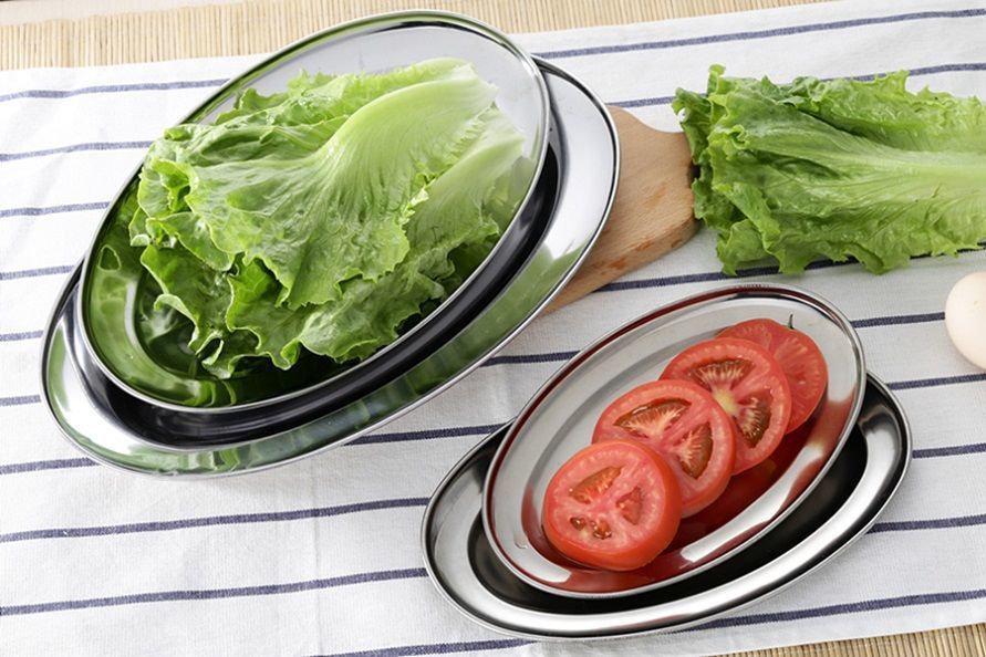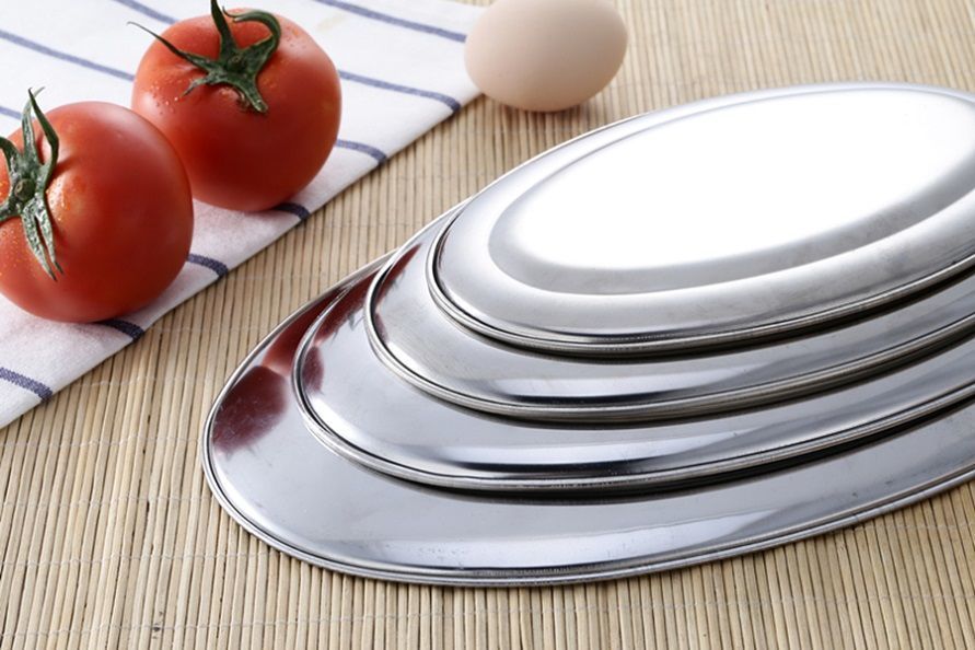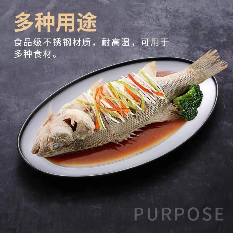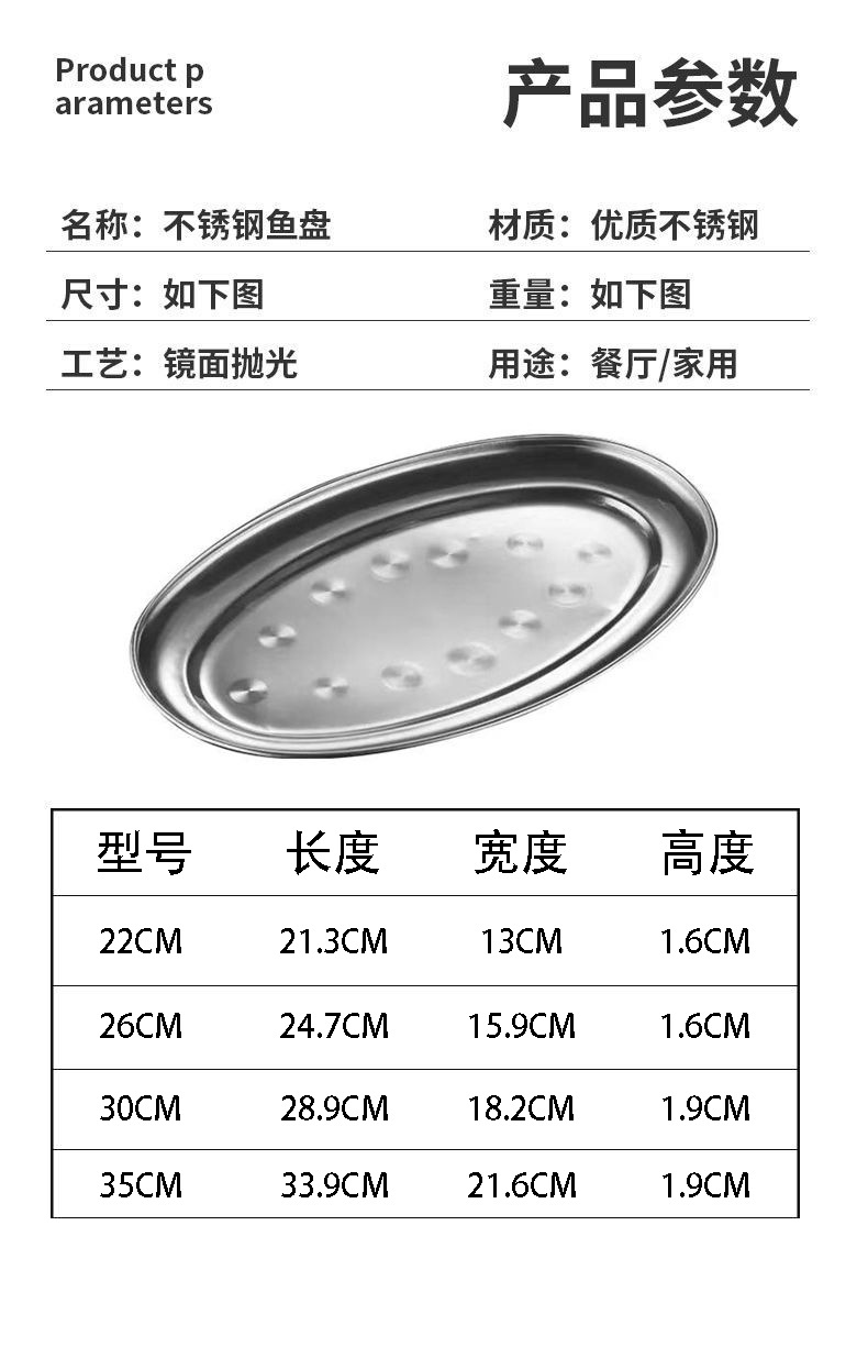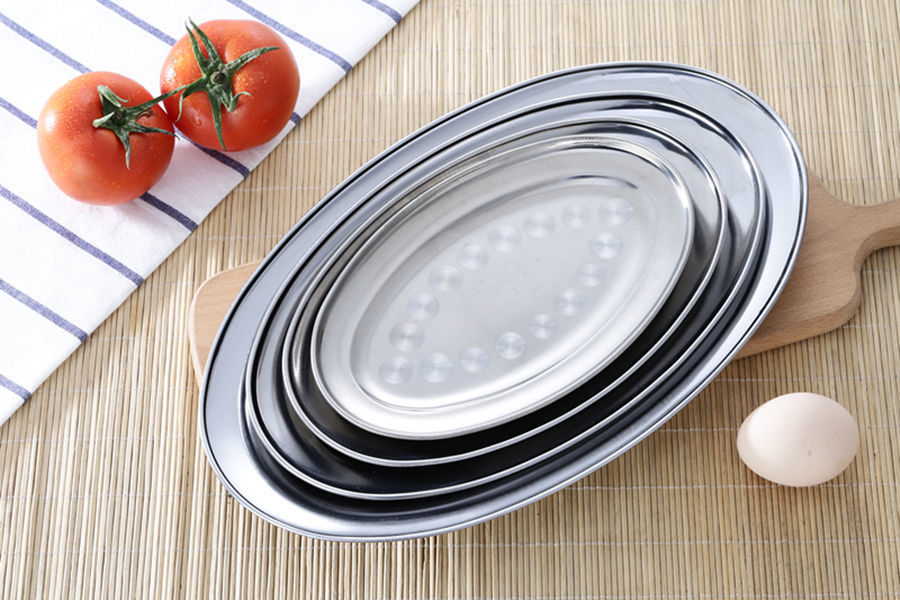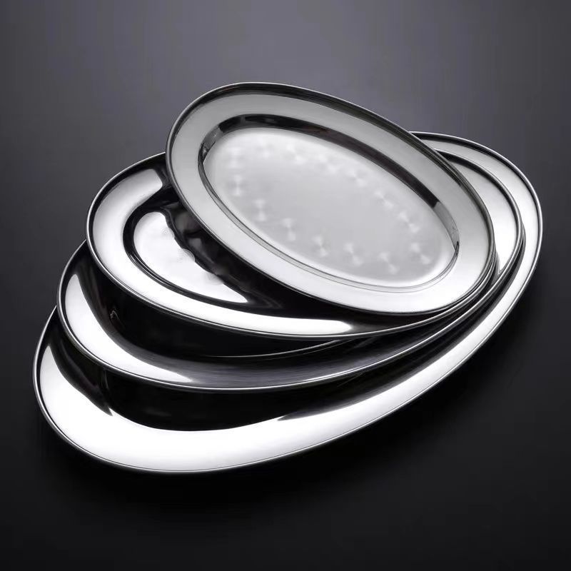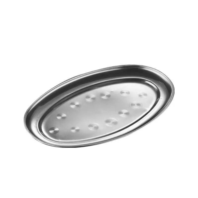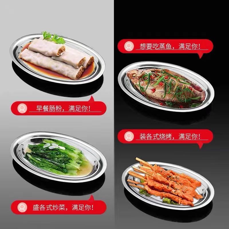 厂家直销不锈钢蒸鱼盘加厚家用蒸鱼椭圆盘子商用烧烤盘早餐小吃盘