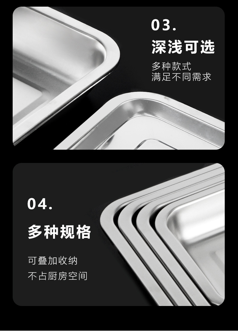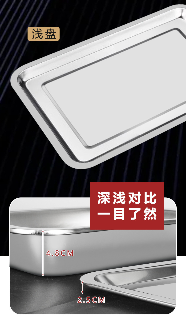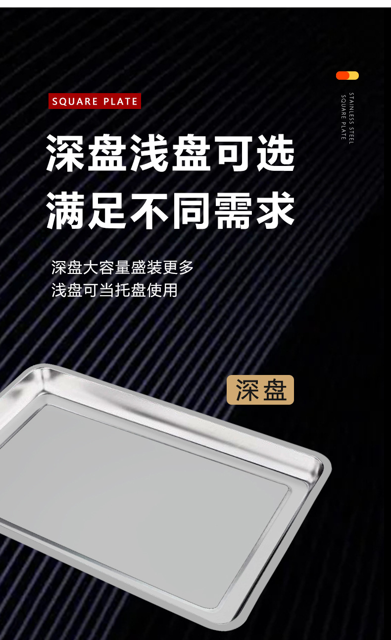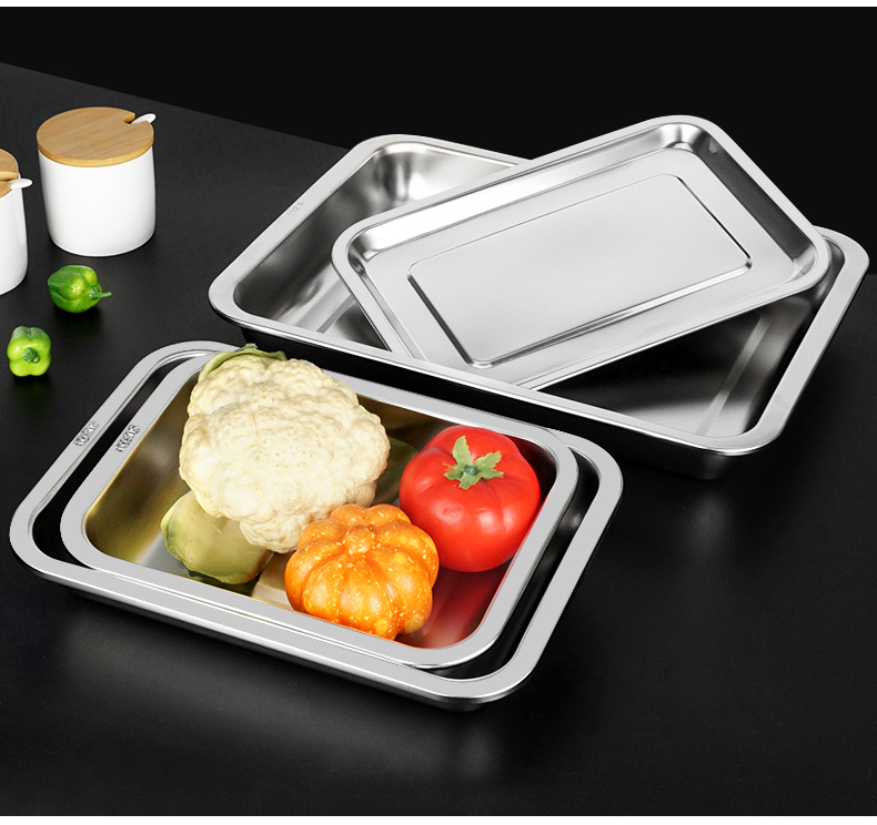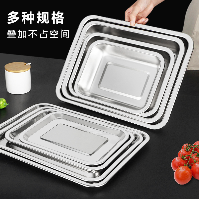304不锈钢方盘 平底烧烤盘饺子盘餐厅蒸饭盘多用盘加厚长方形托盘