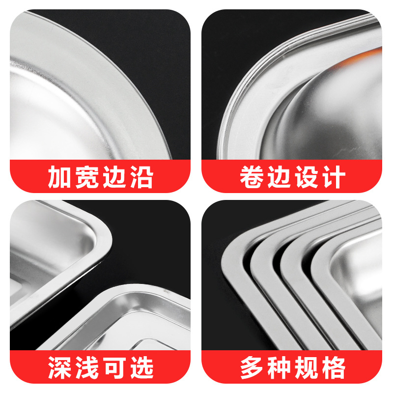 方盘304不锈钢平底烧烤盘 饺子盘餐厅蒸饭盘多用盘加厚长方形托盘