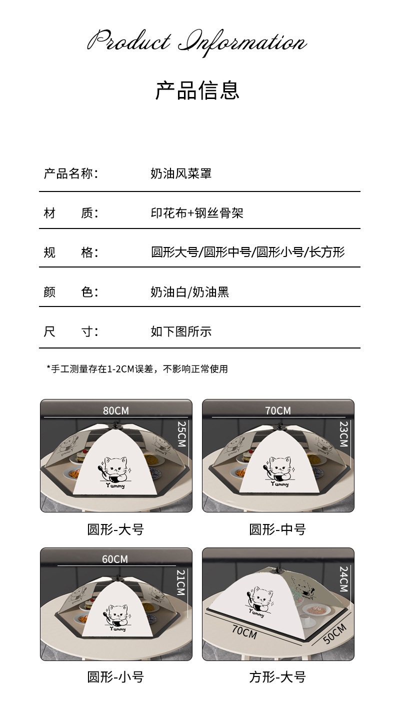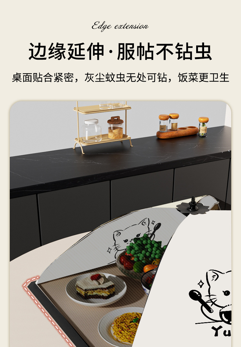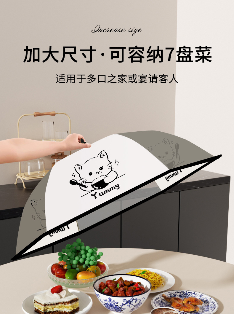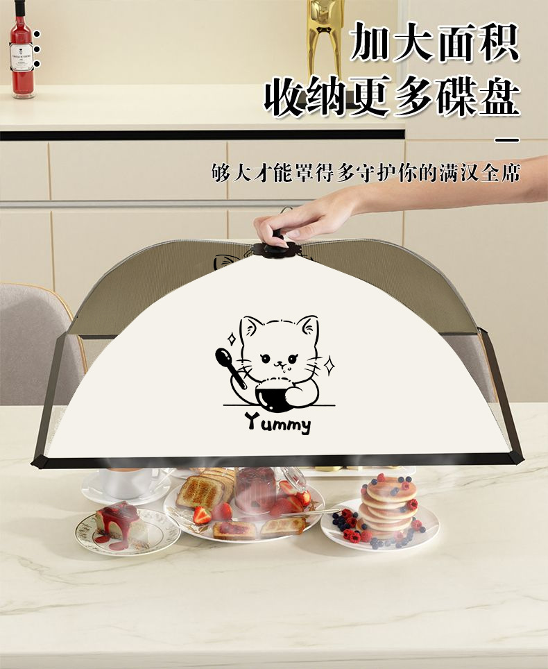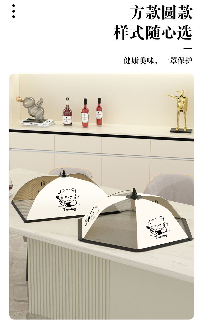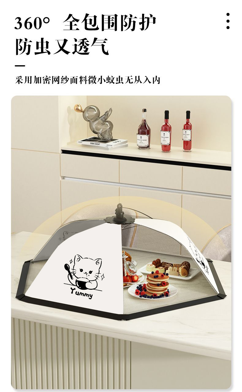 2025新款餐桌罩猫干饭网纱饭菜罩子防尘罩家用黑白简约盖菜罩