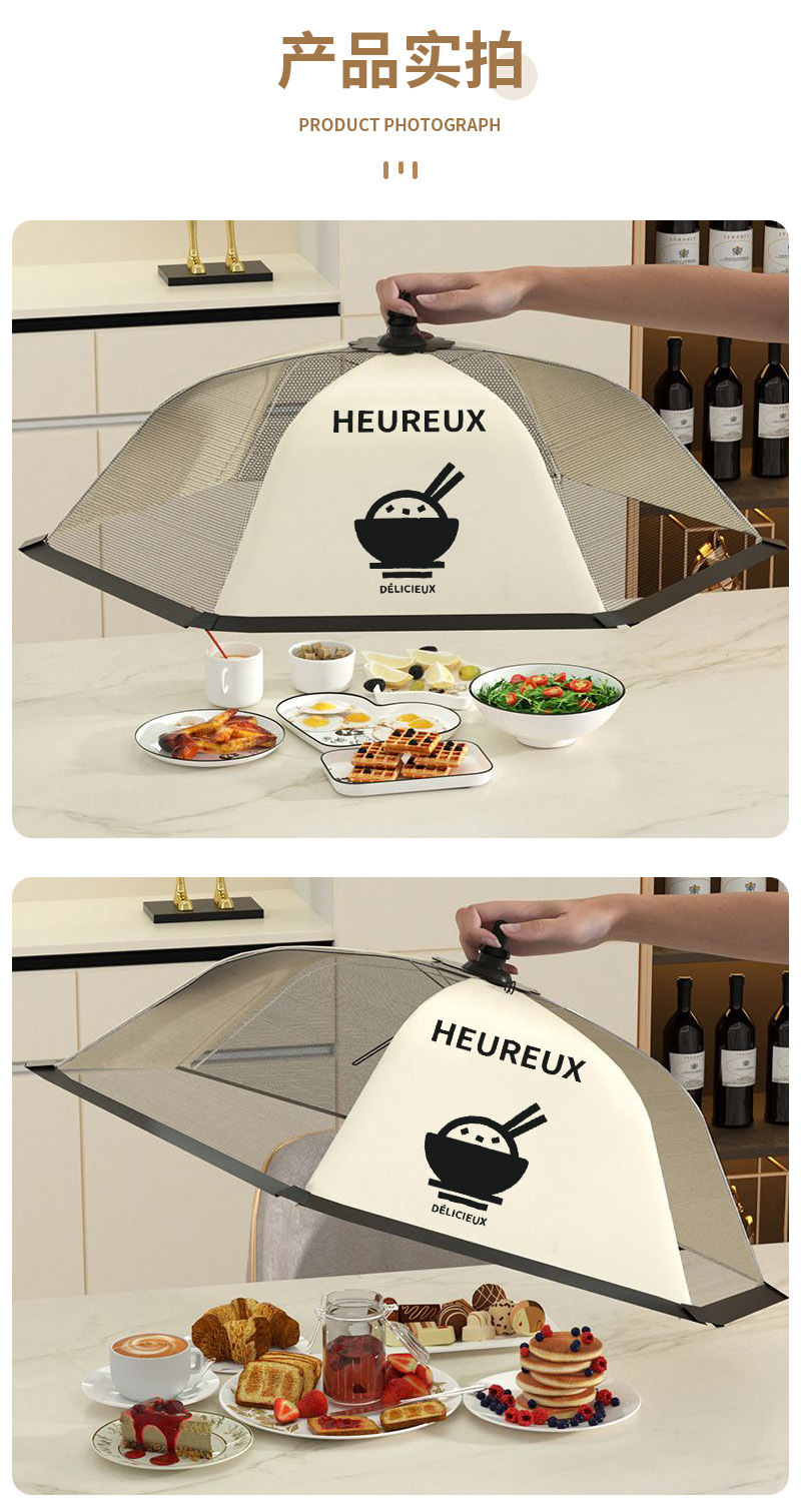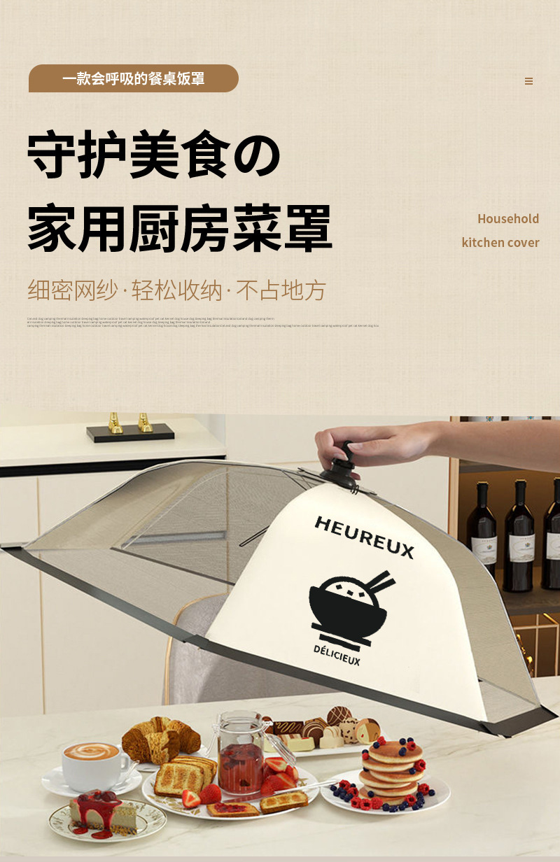 可折叠饭菜罩子加厚遮菜防尘厨房食物罩保温菜罩家用可拆洗餐桌罩