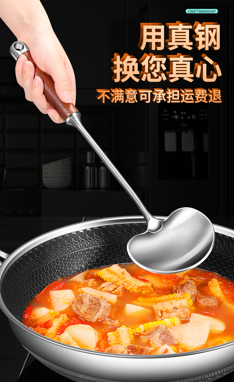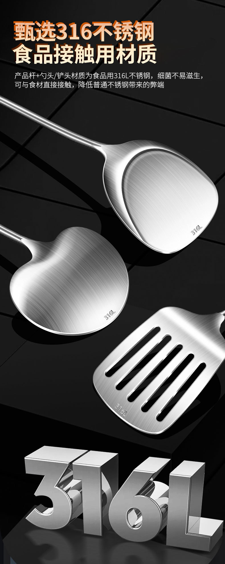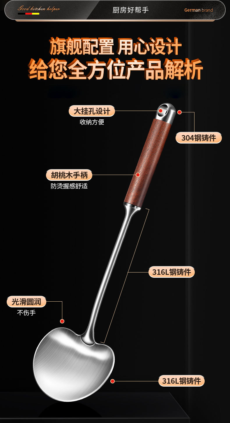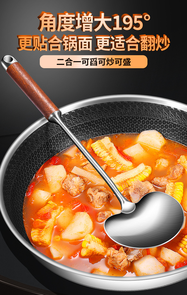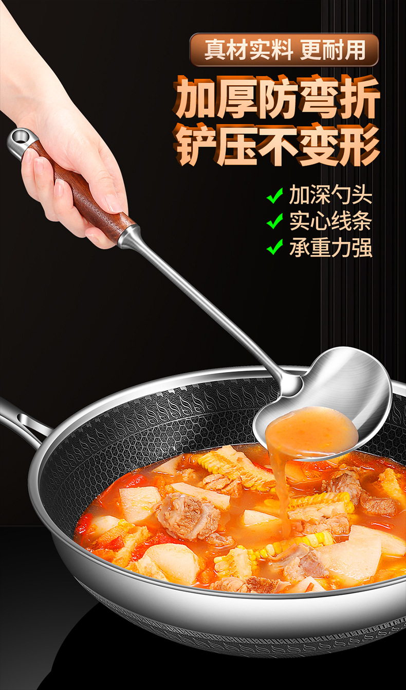 316L不锈钢蘑菇铲实木防烫炒铲厨房加长锅铲家用烹饪汤勺加厚煎铲