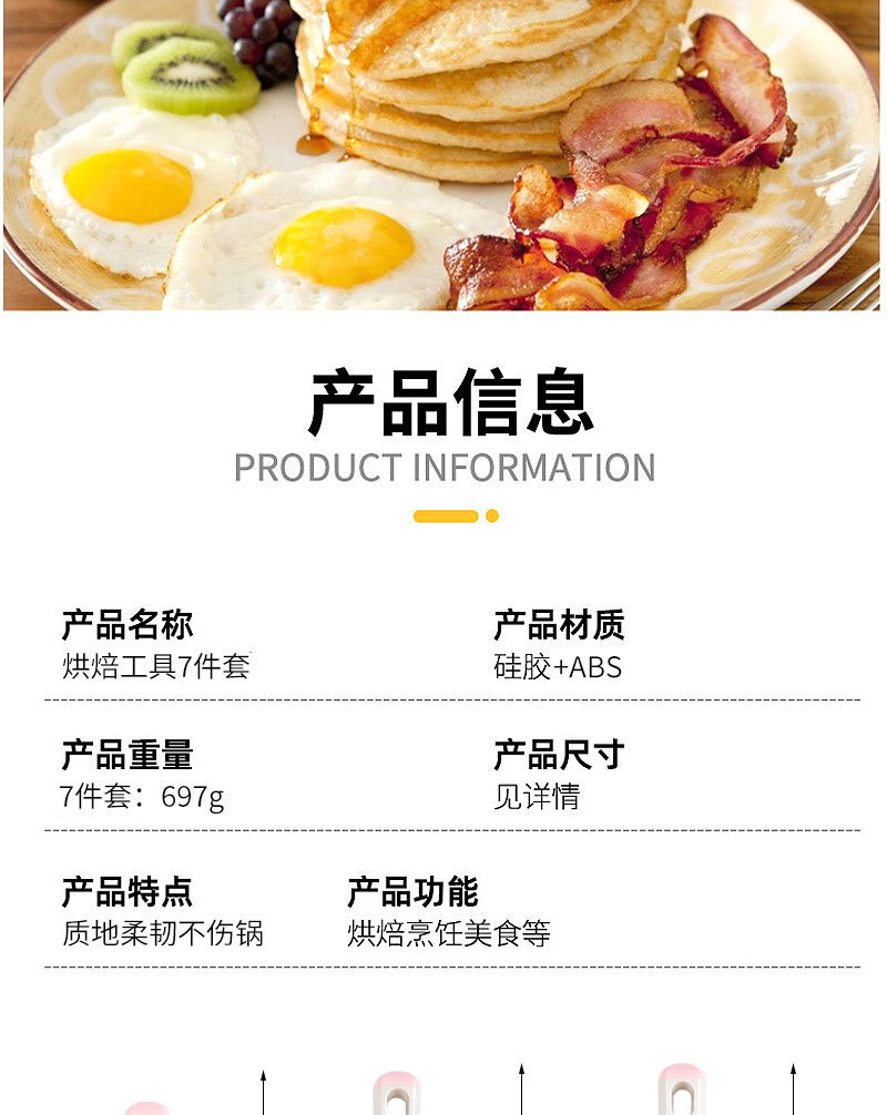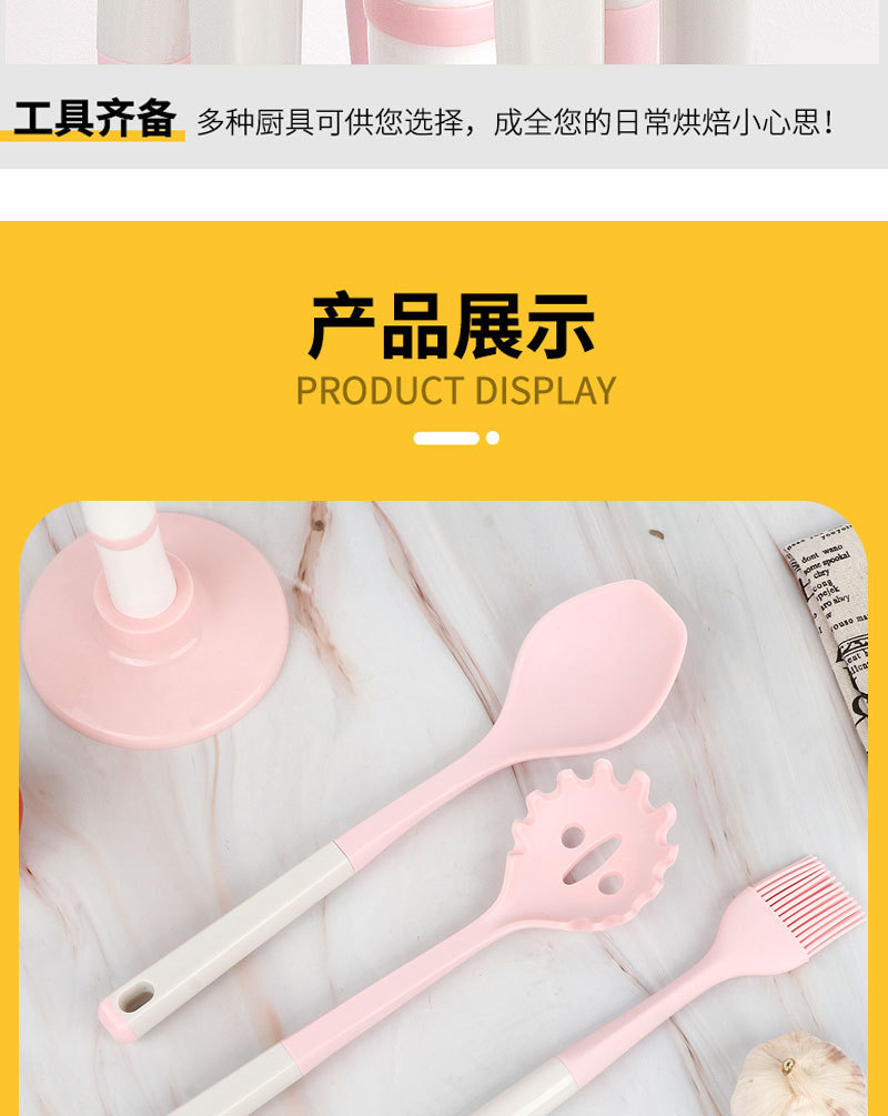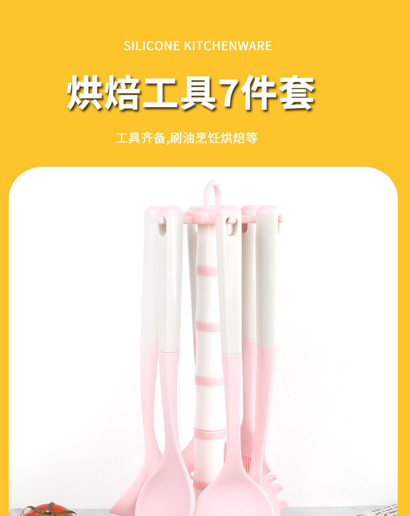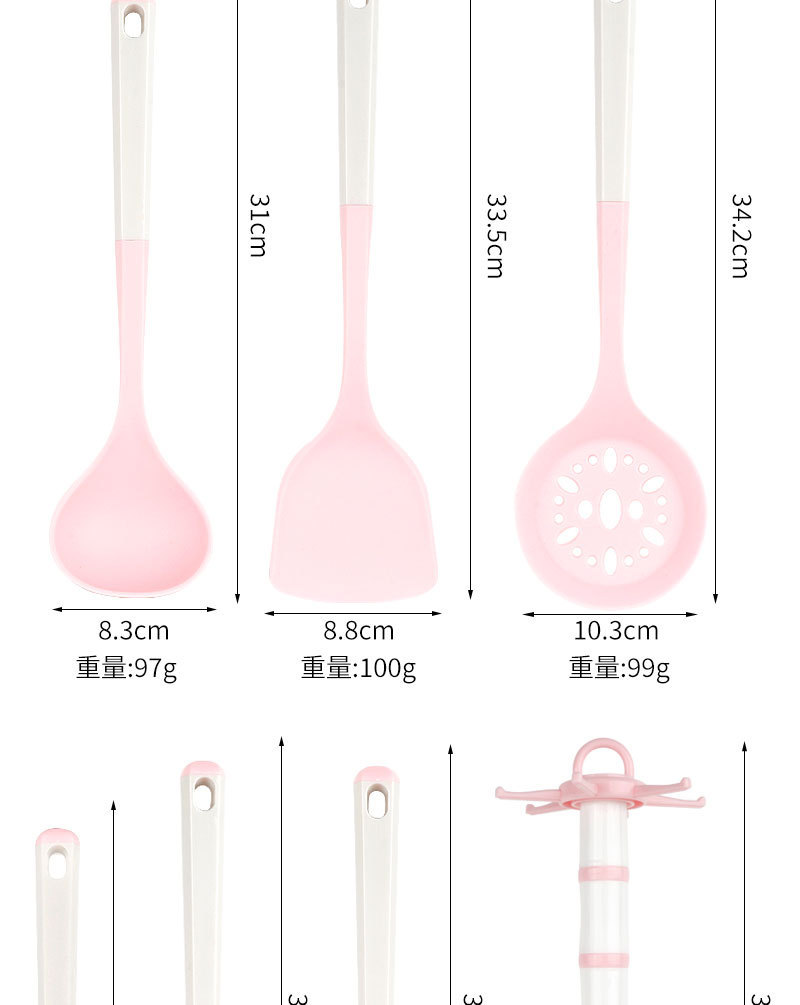 新款硅胶厨具6件套耐高温不粘锅烹饪厨房厨具铲勺套装日用餐厨