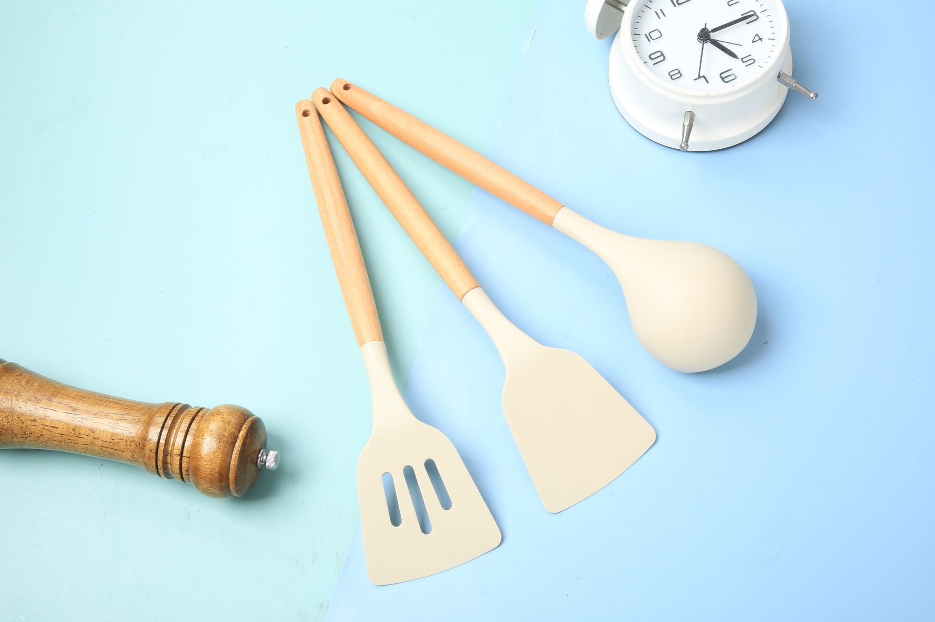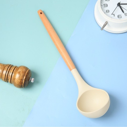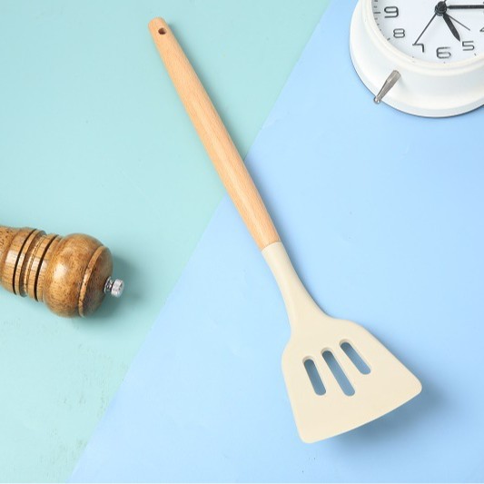 厂家供应木柄硅胶厨具家用烹饪铲勺不粘锅炒菜铲子防烫耐高温汤勺