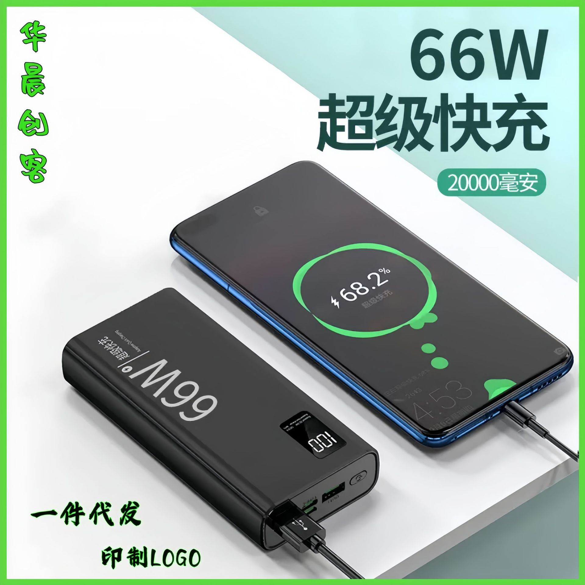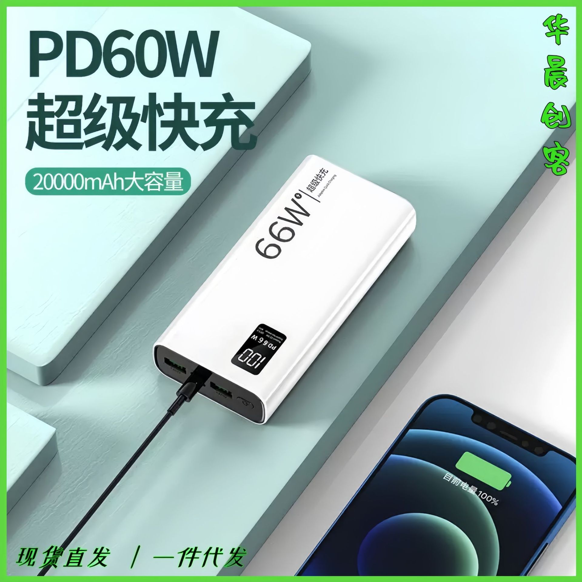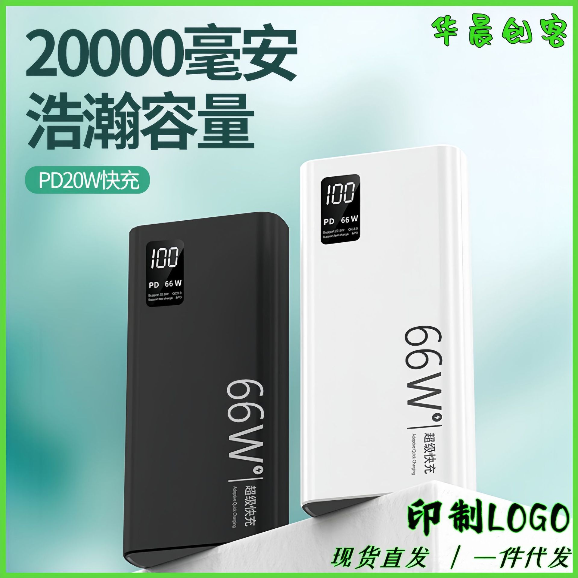 跨境3c认证超级快充充电宝自带线20000毫安大容量移动电源闪购