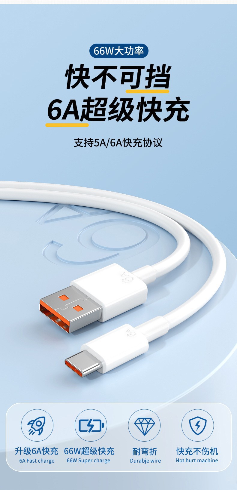 65w超级快充数据线typec适用华为荣耀乐视手机6a充电线厂家批发