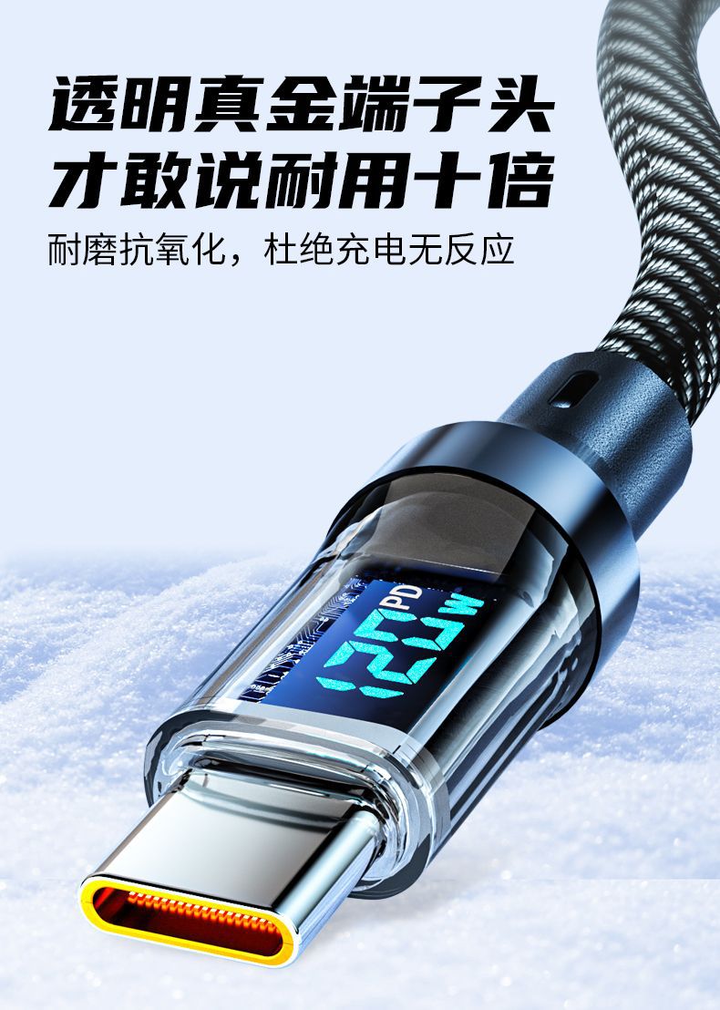 数显120W超级快充双Typec数据线适用苹果15/16华为荣耀6A闪充电线