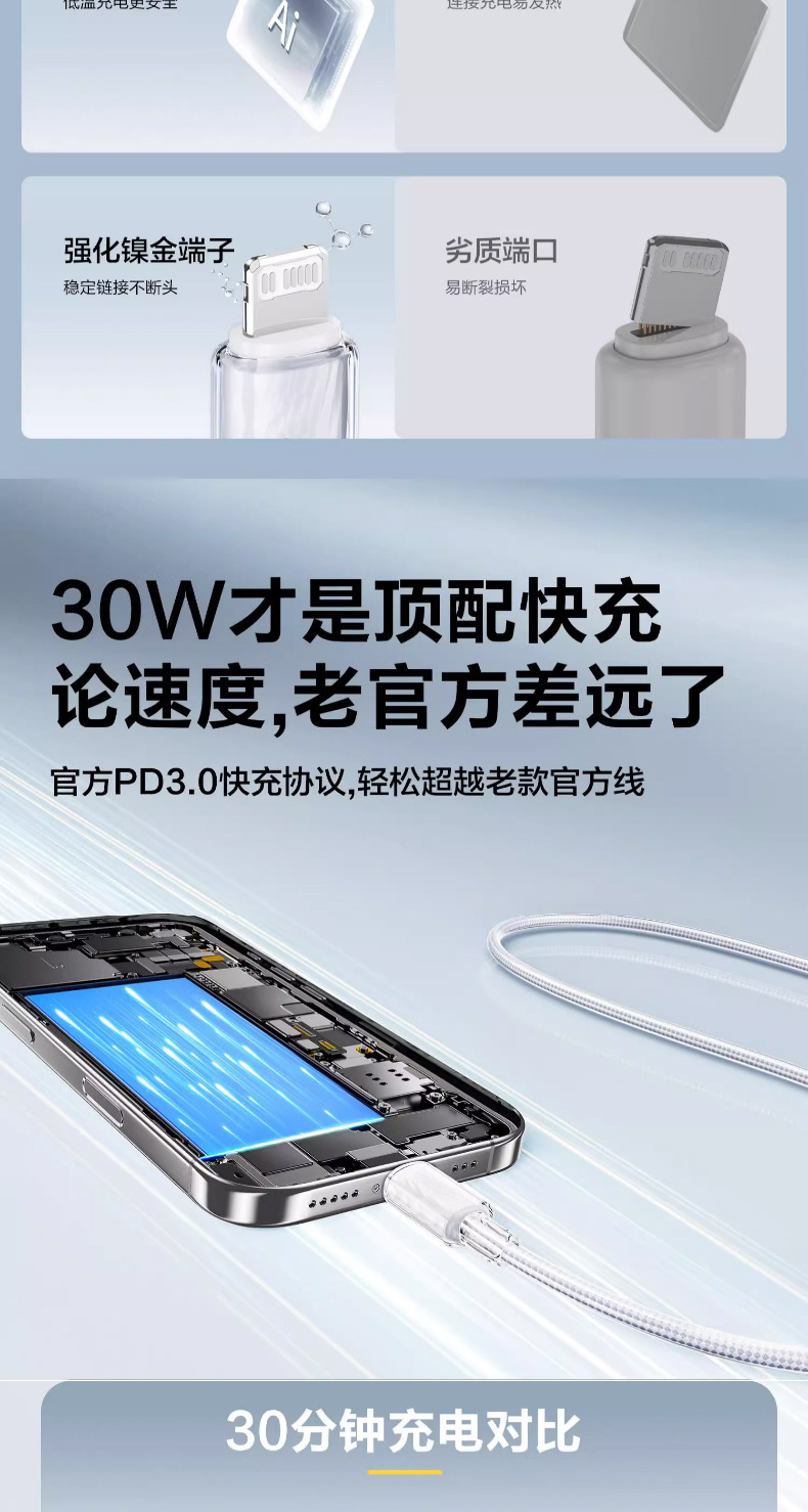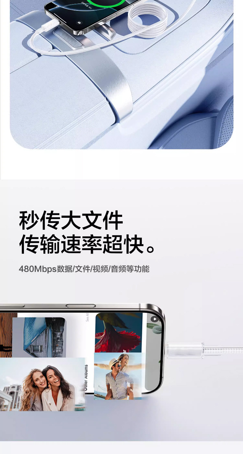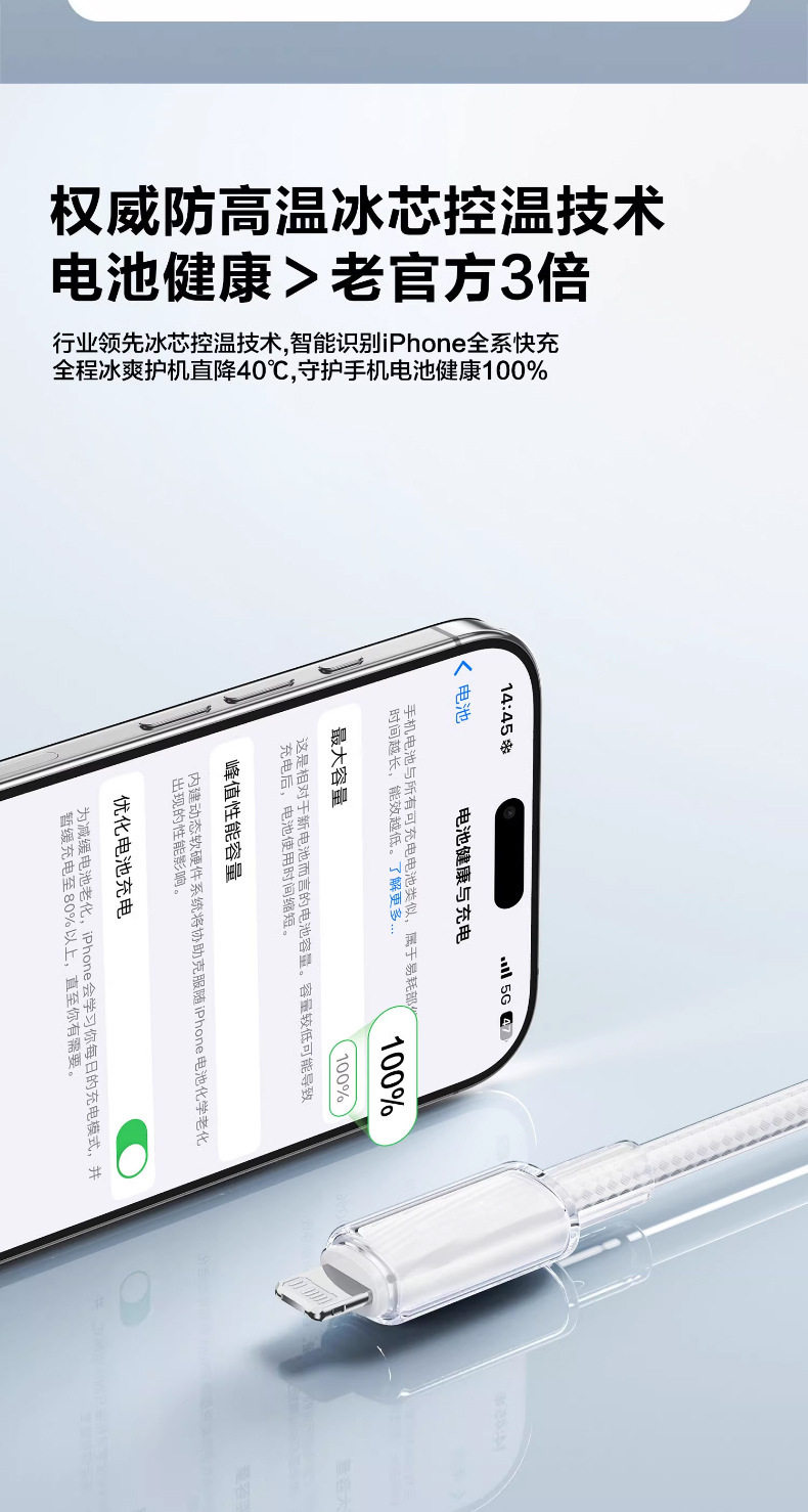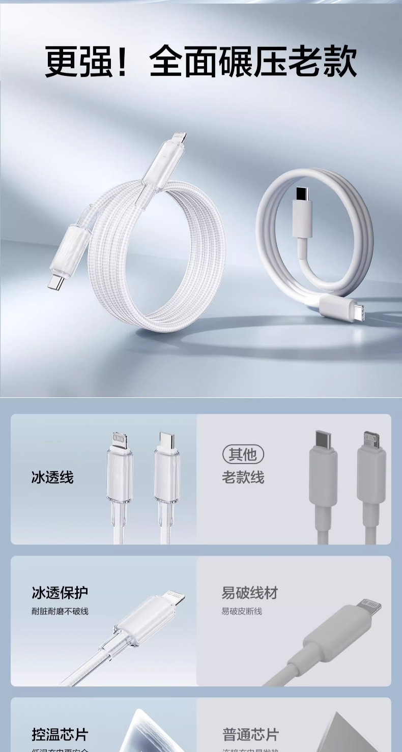 适用苹果冰透快充数据线适用苹果15-16华为手机typec闪充6A编织线