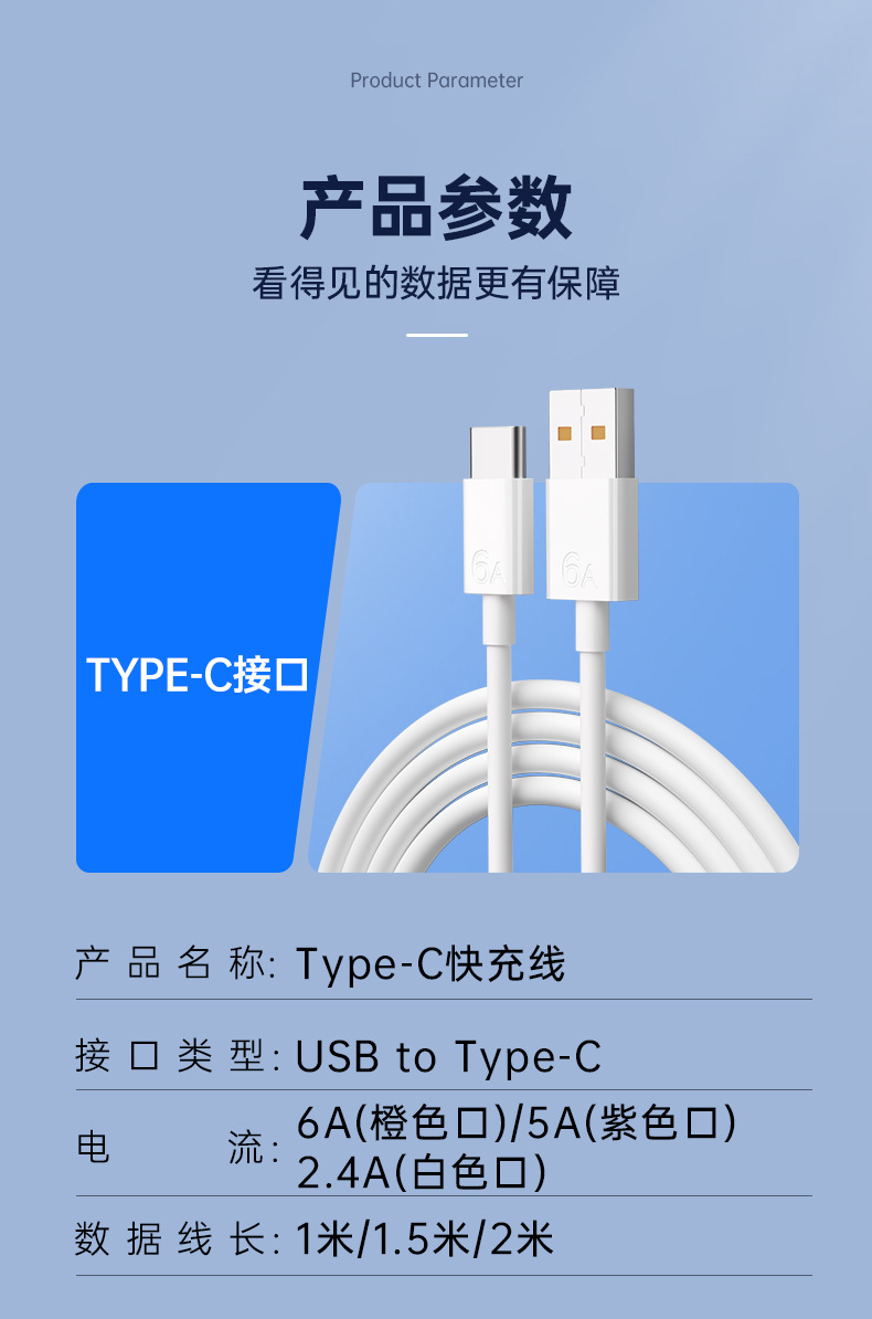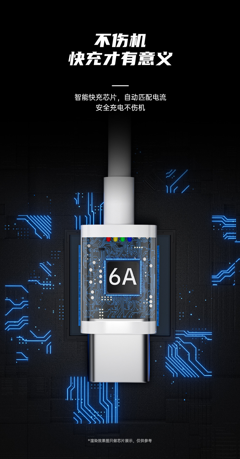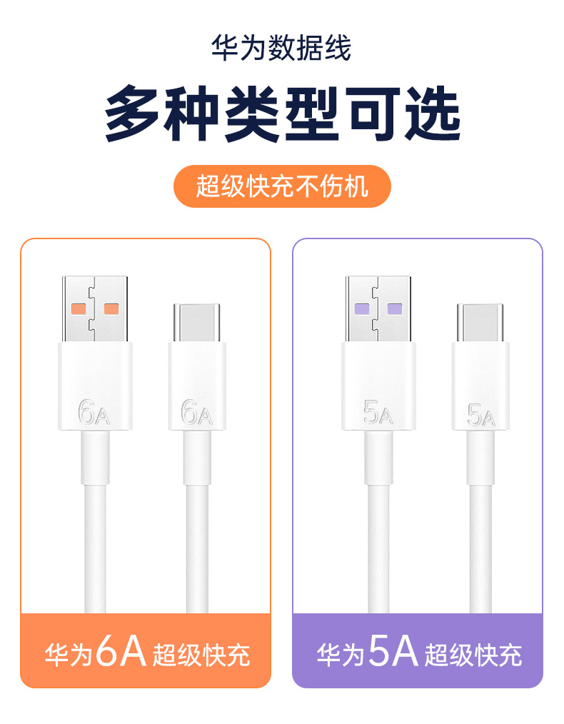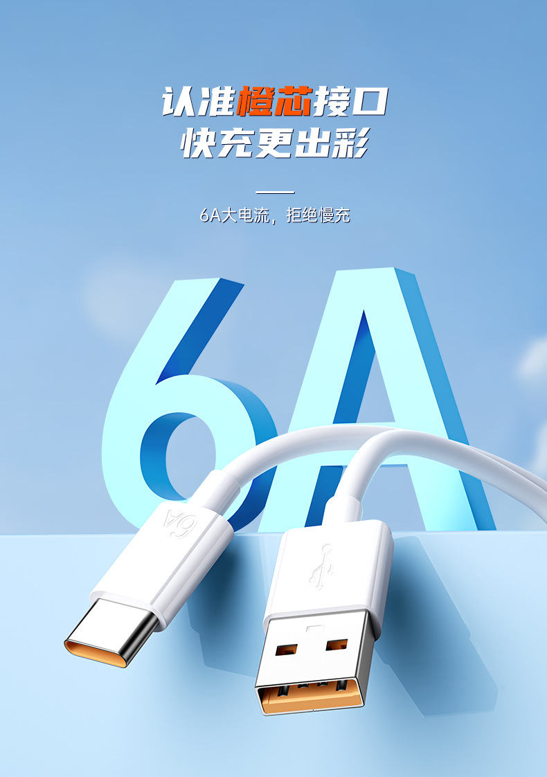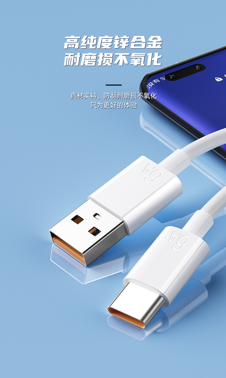 Type-c单头6A数据线闪充线typec适用于华为安卓苹果充电线快充5A