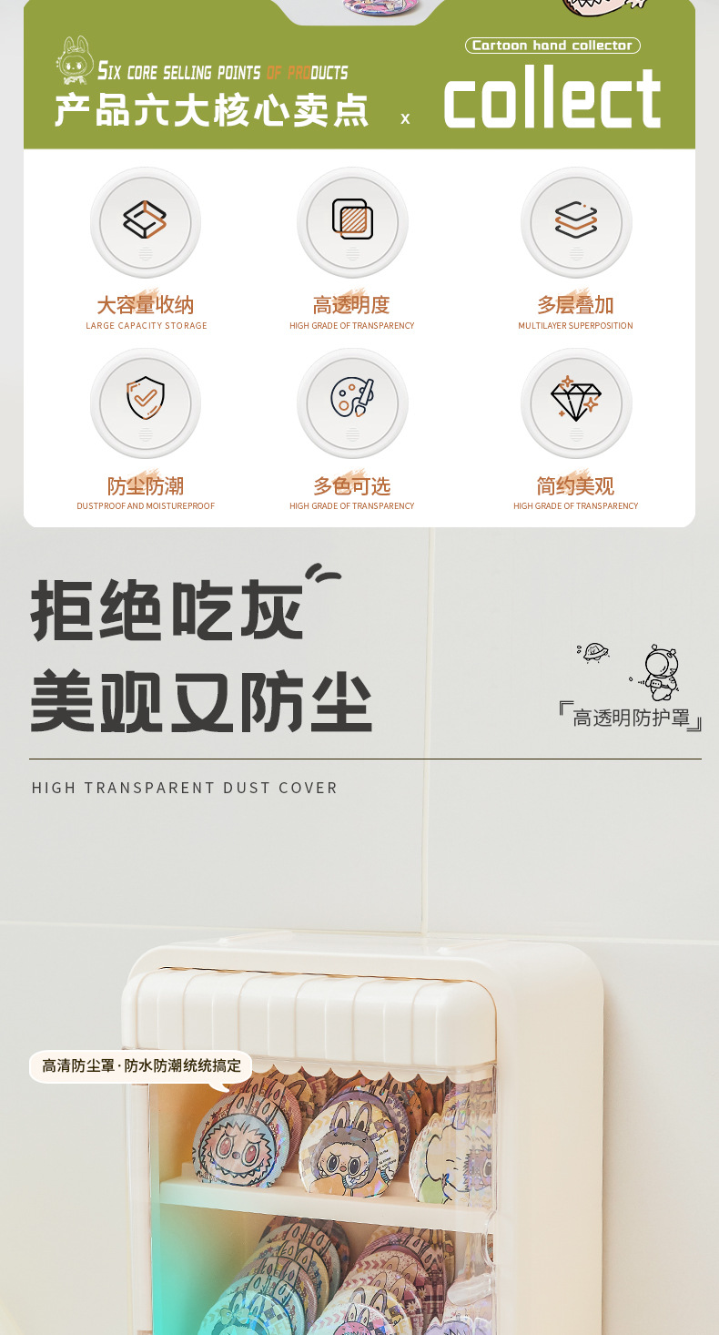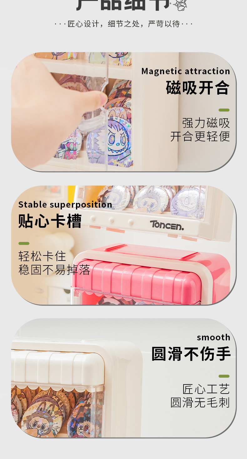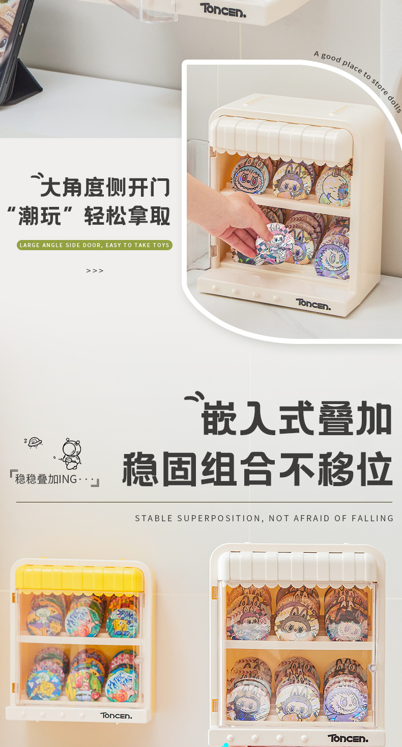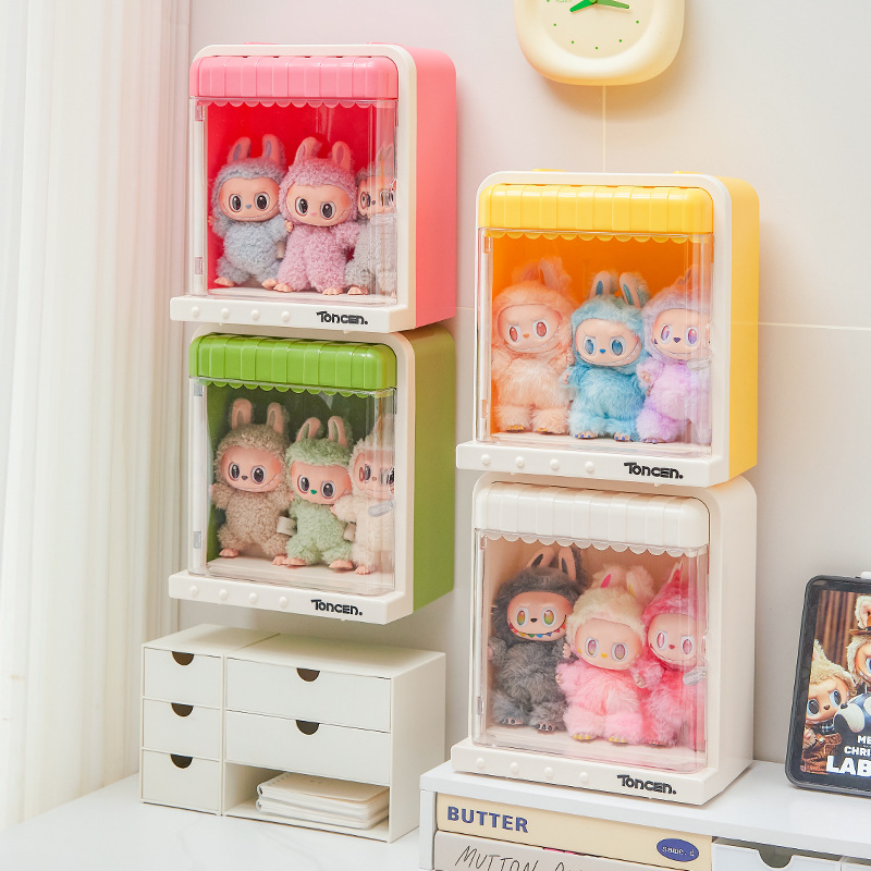 大容量学生透明带盖塑料谷子卡片展示盒盲盒玩偶展示架手办收纳盒