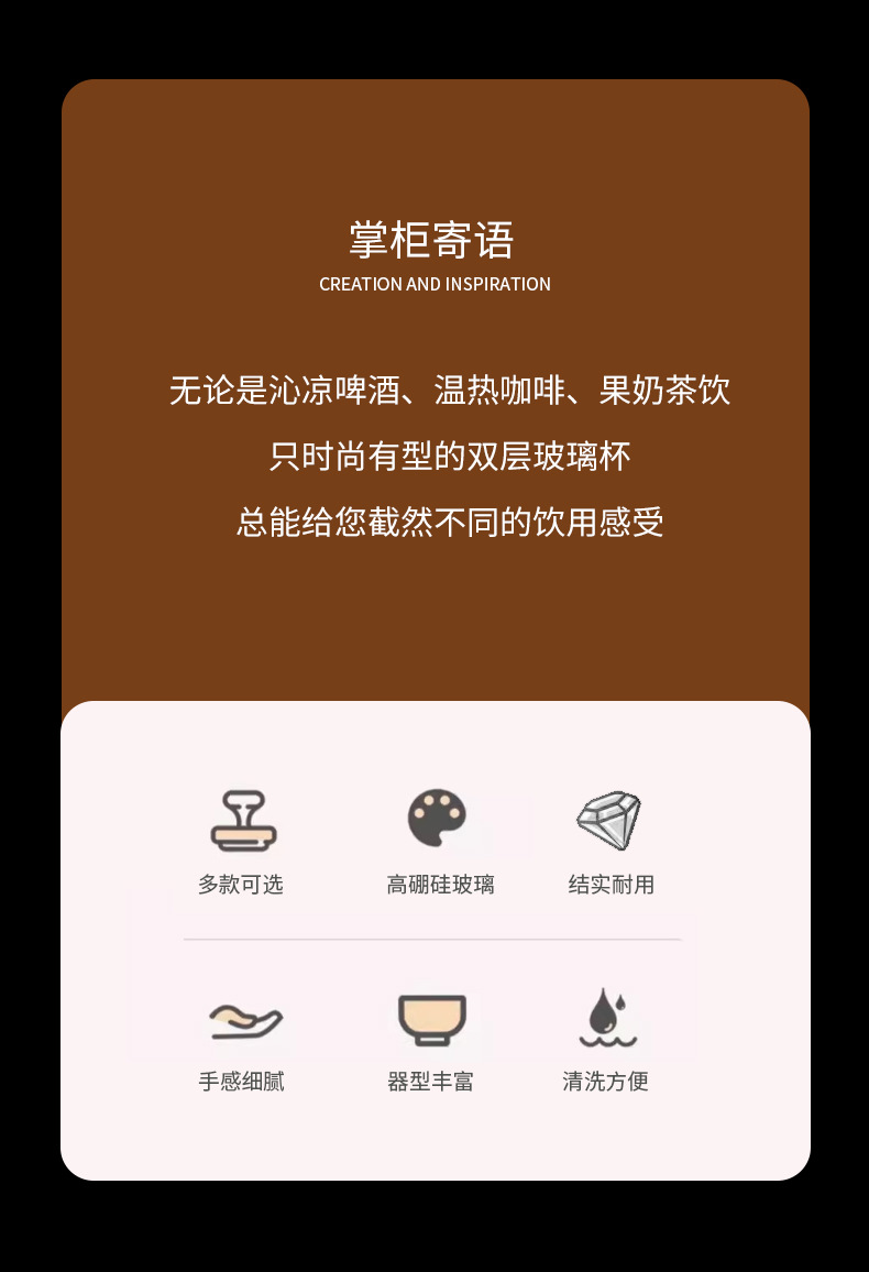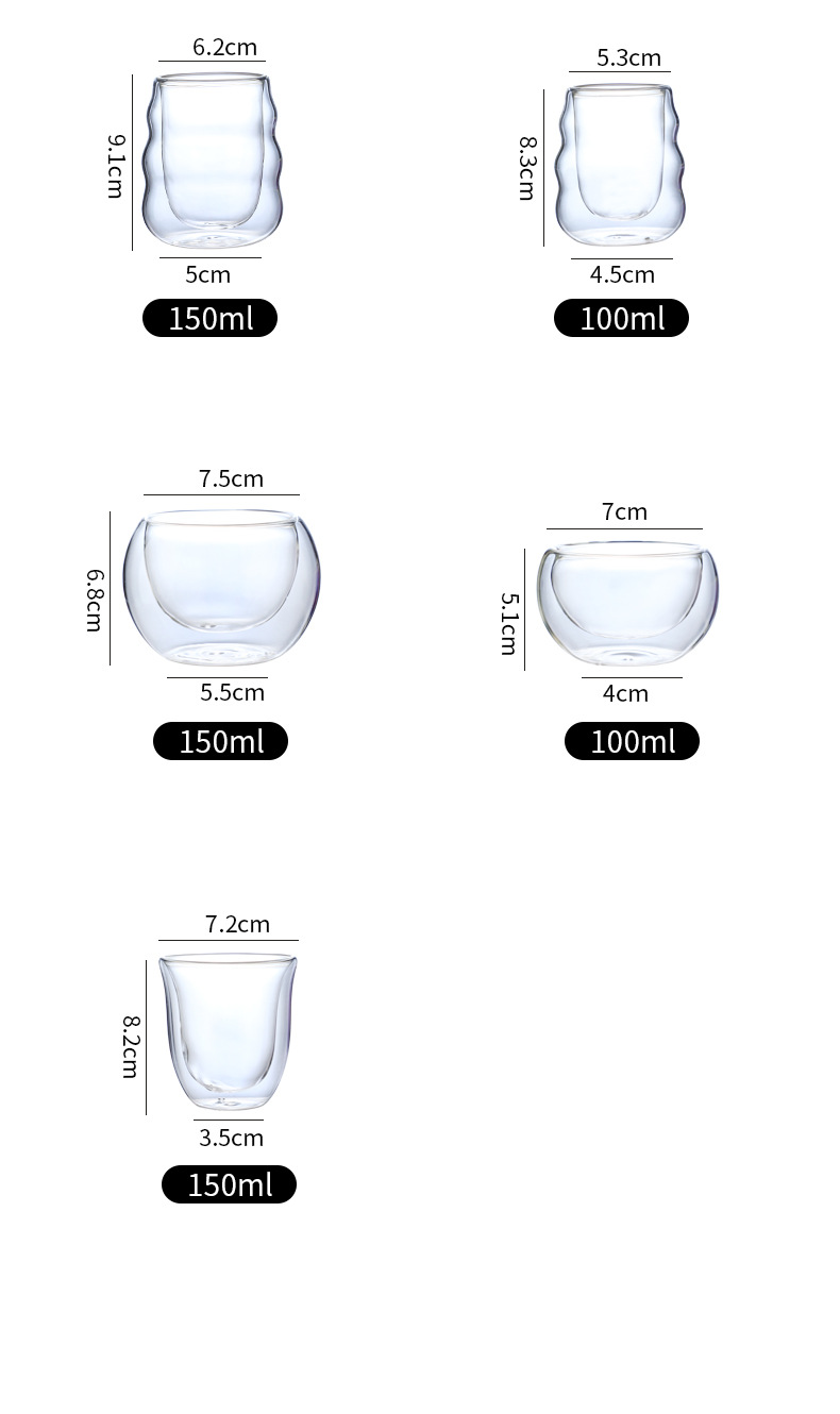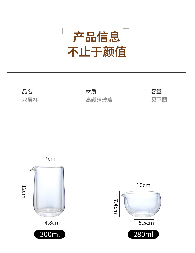 不带把双层玻璃咖啡杯 加厚透明大容量高硼硅家用水杯果汁杯