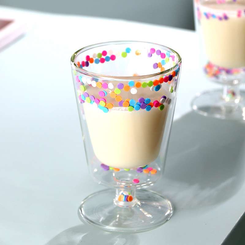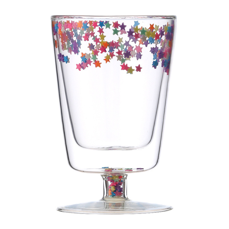 家用高颜值水杯创意双层玻璃杯高硼硅耐热果汁牛奶杯子礼品高脚酒