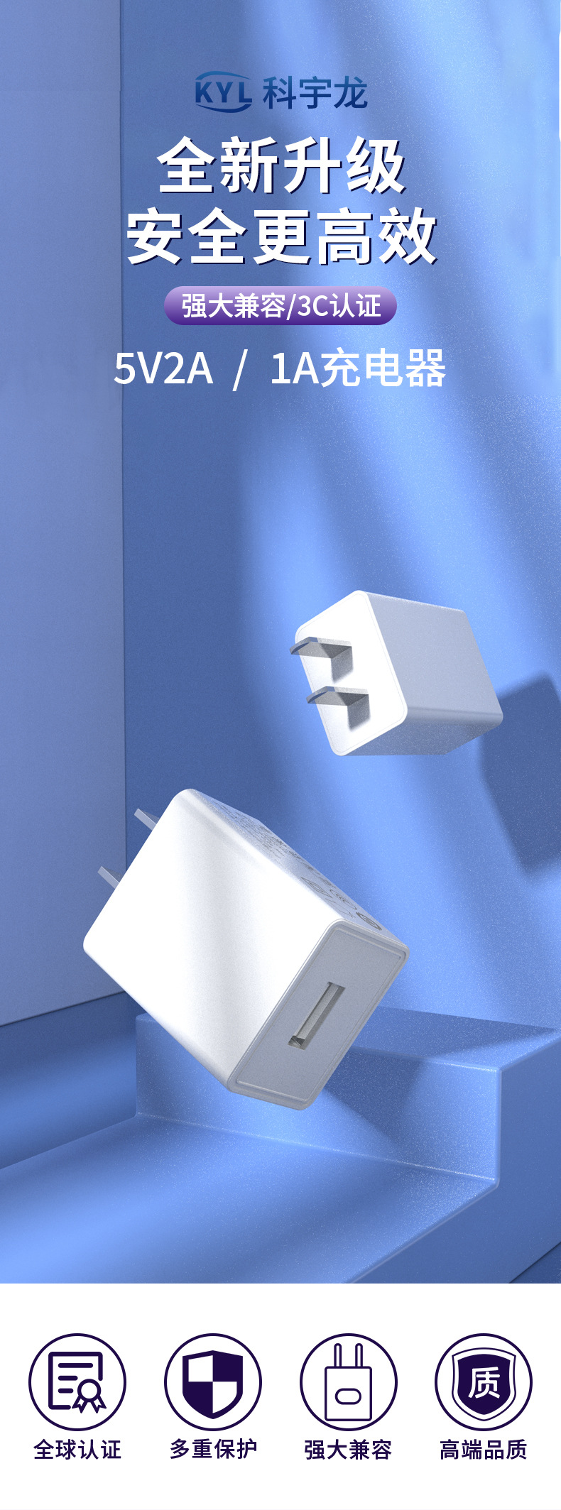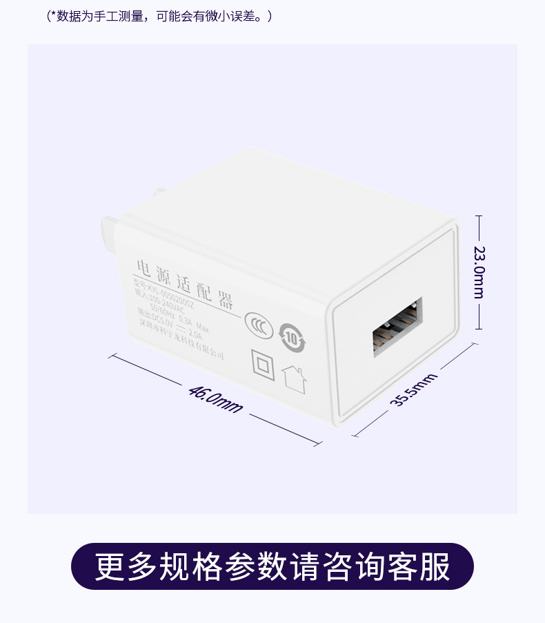现货5v2a充电器USB插头通用灯带台灯中规ccc认证5v1a手机充电器头