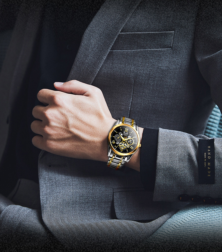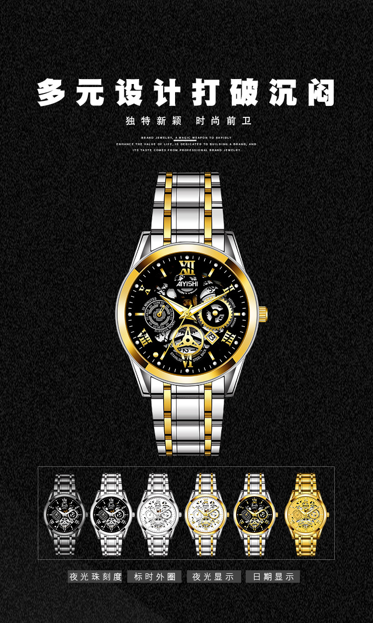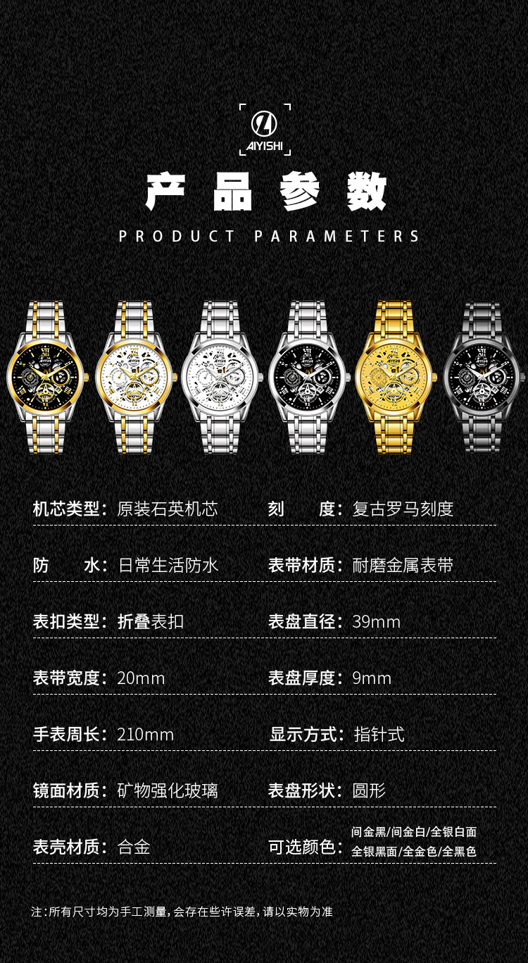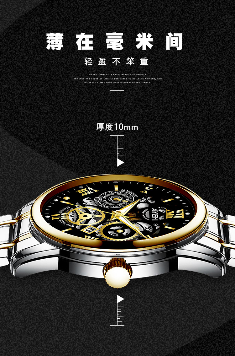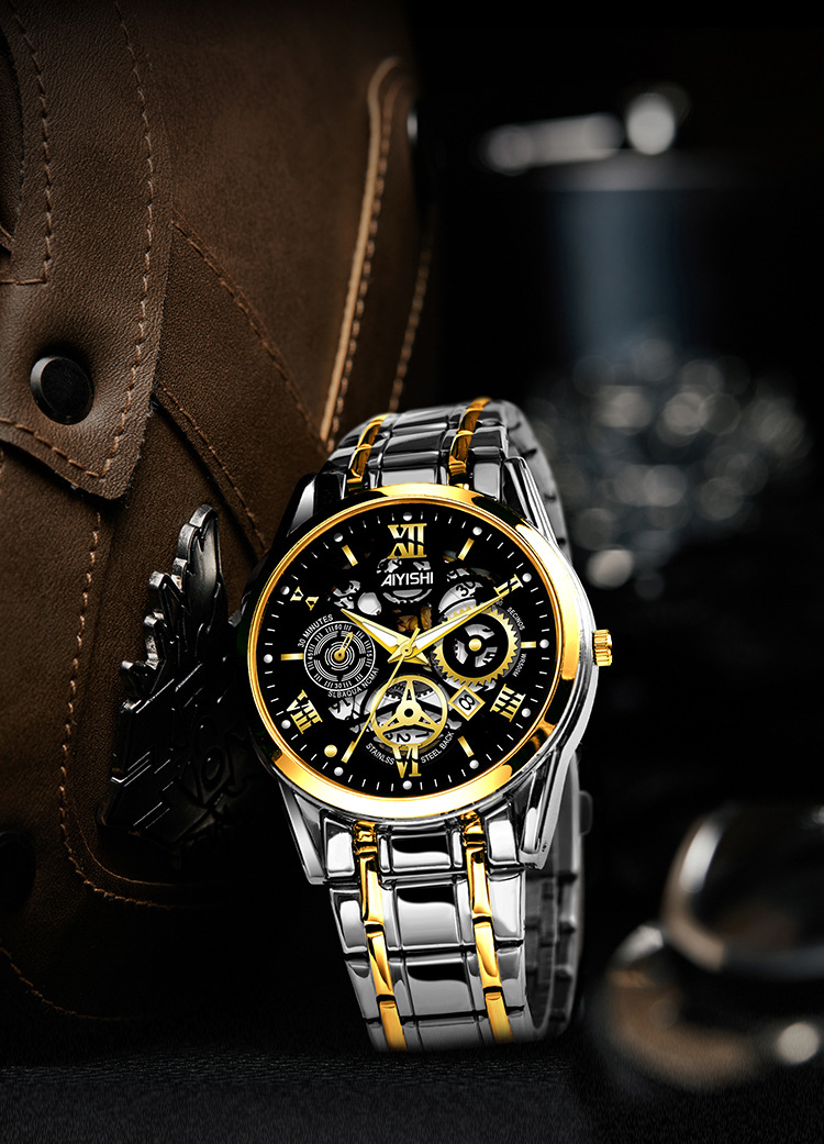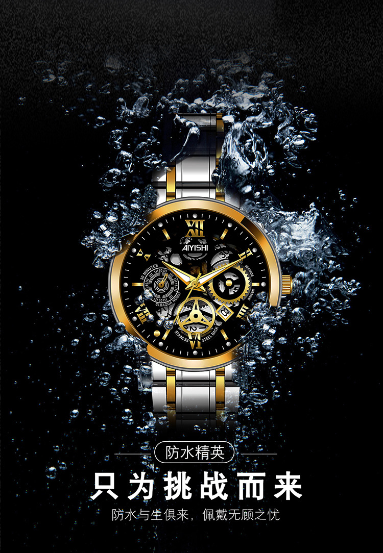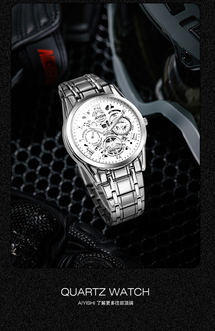 正品手表男全自动非机械男表 精钢防水 石英日历男士手表钢带夜光