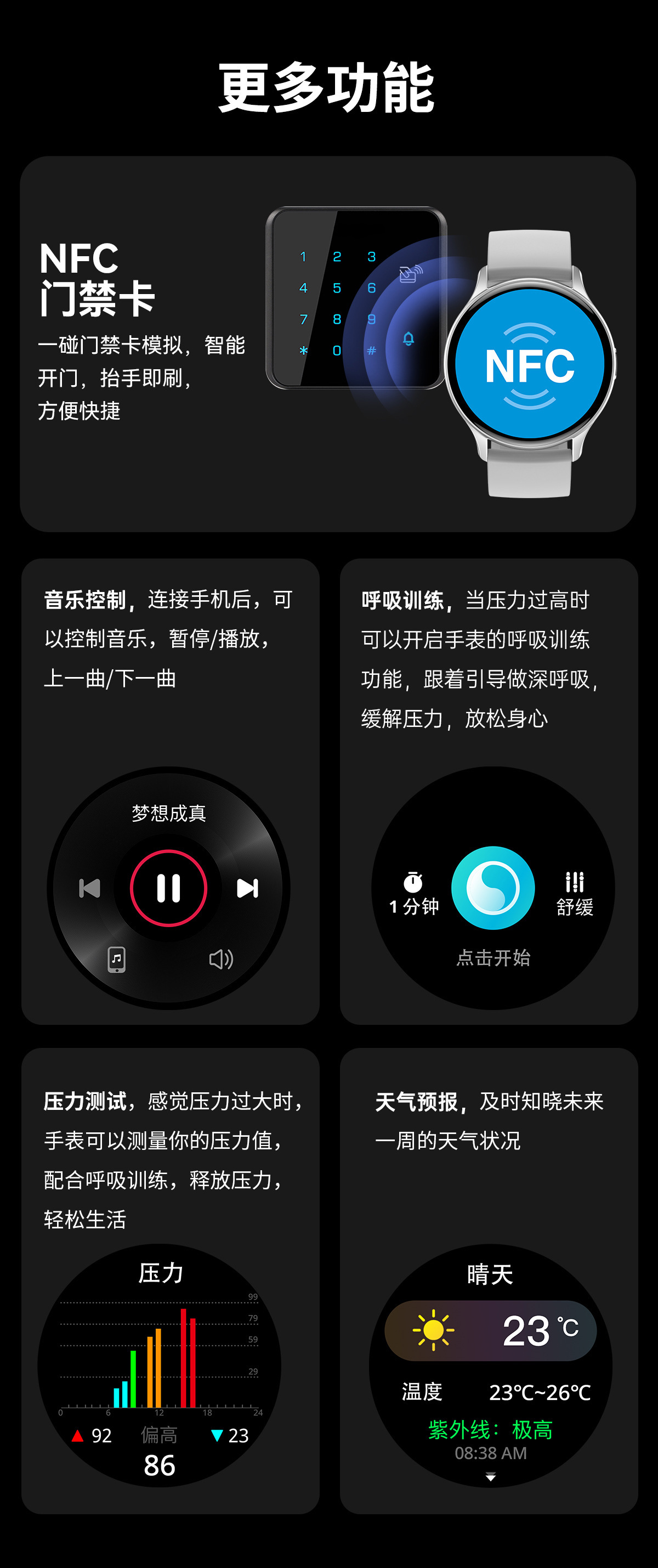 HK89蓝牙通话智能手表心率血压NFC天气音乐多运动智能手表AMOLED