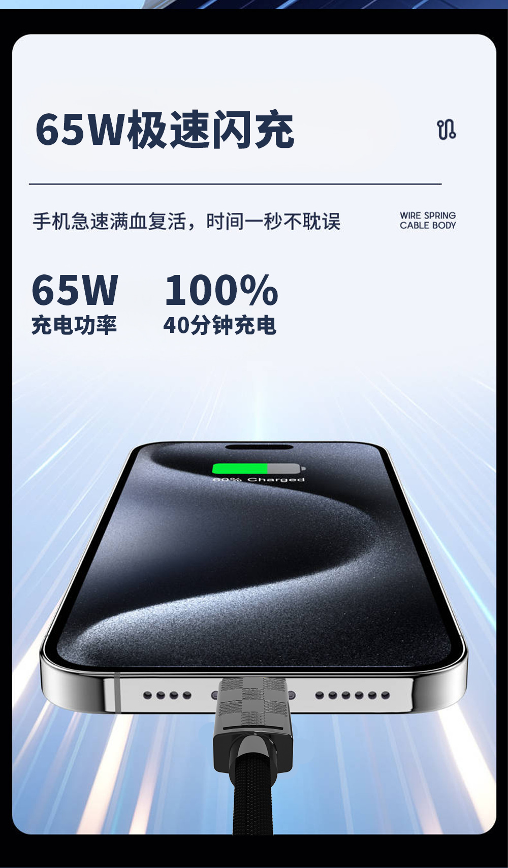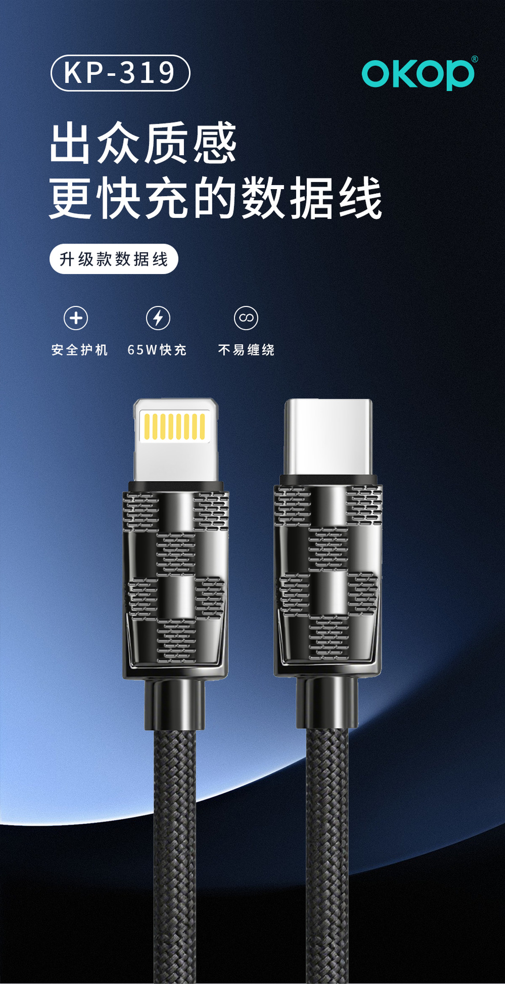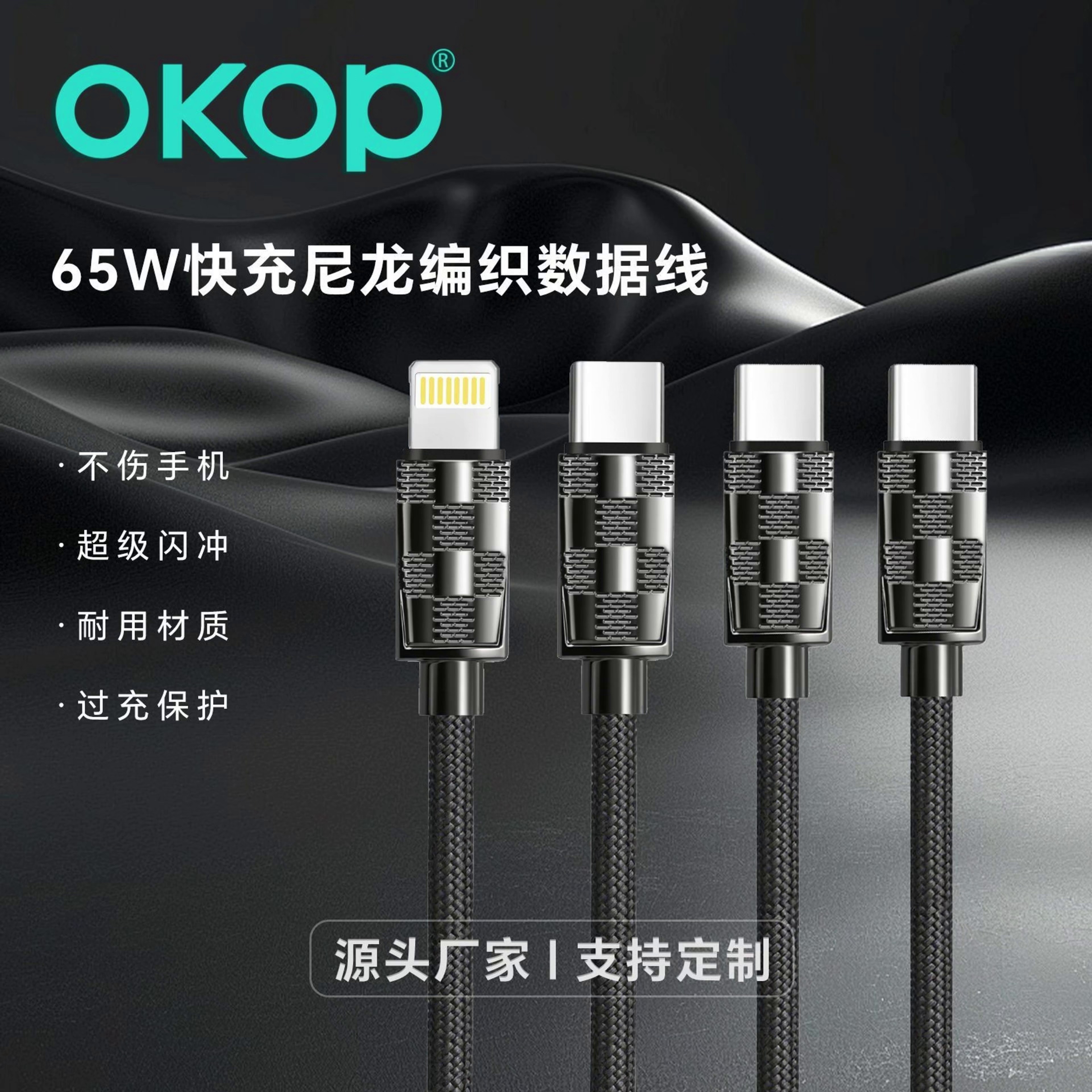 319编织加粗65W超级快充数据线适用苹果华为安卓手机充电高速传输
