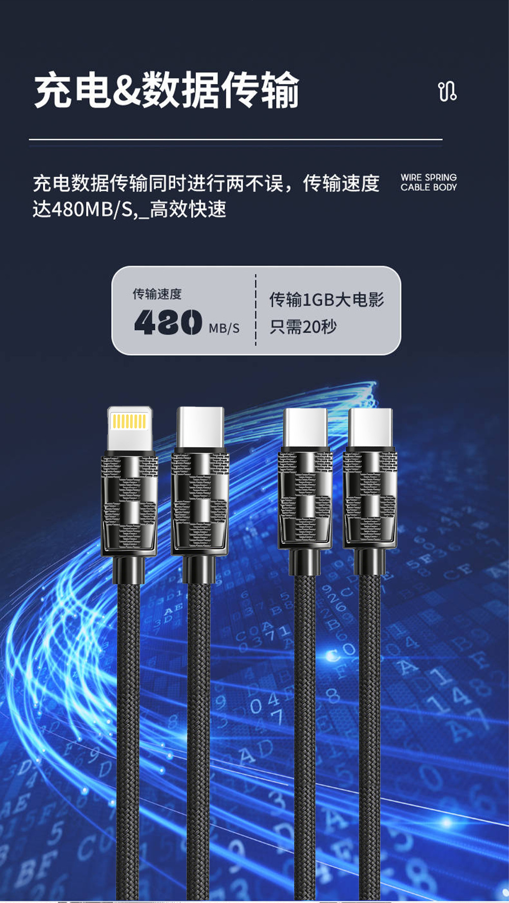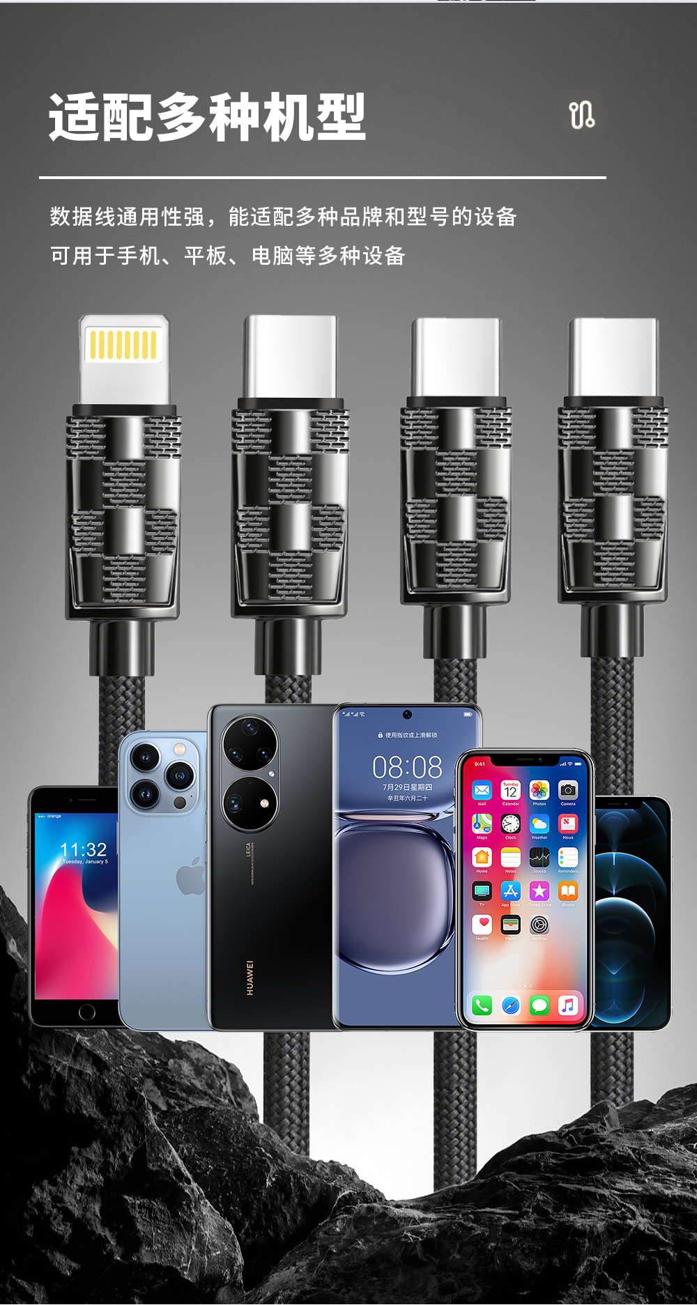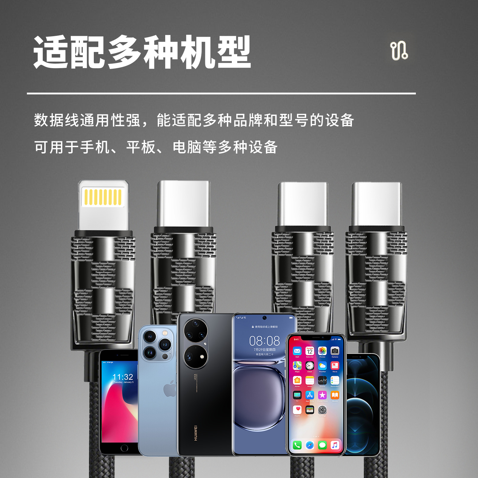 319编织加粗65W超级快充数据线适用苹果华为安卓手机充电高速传输