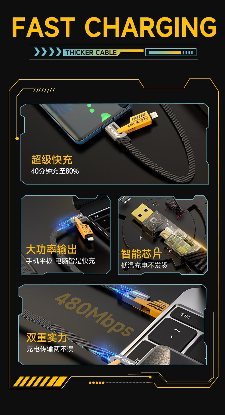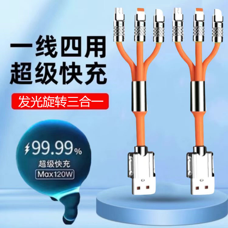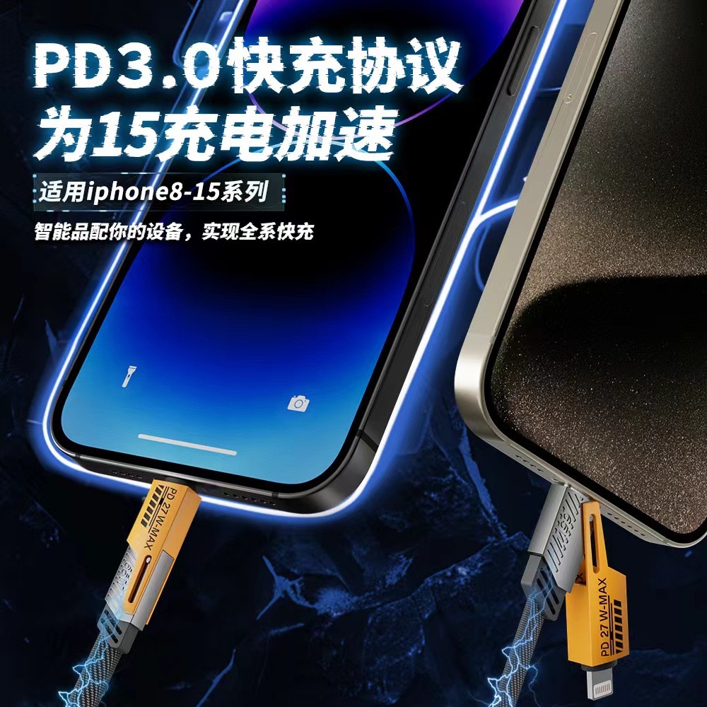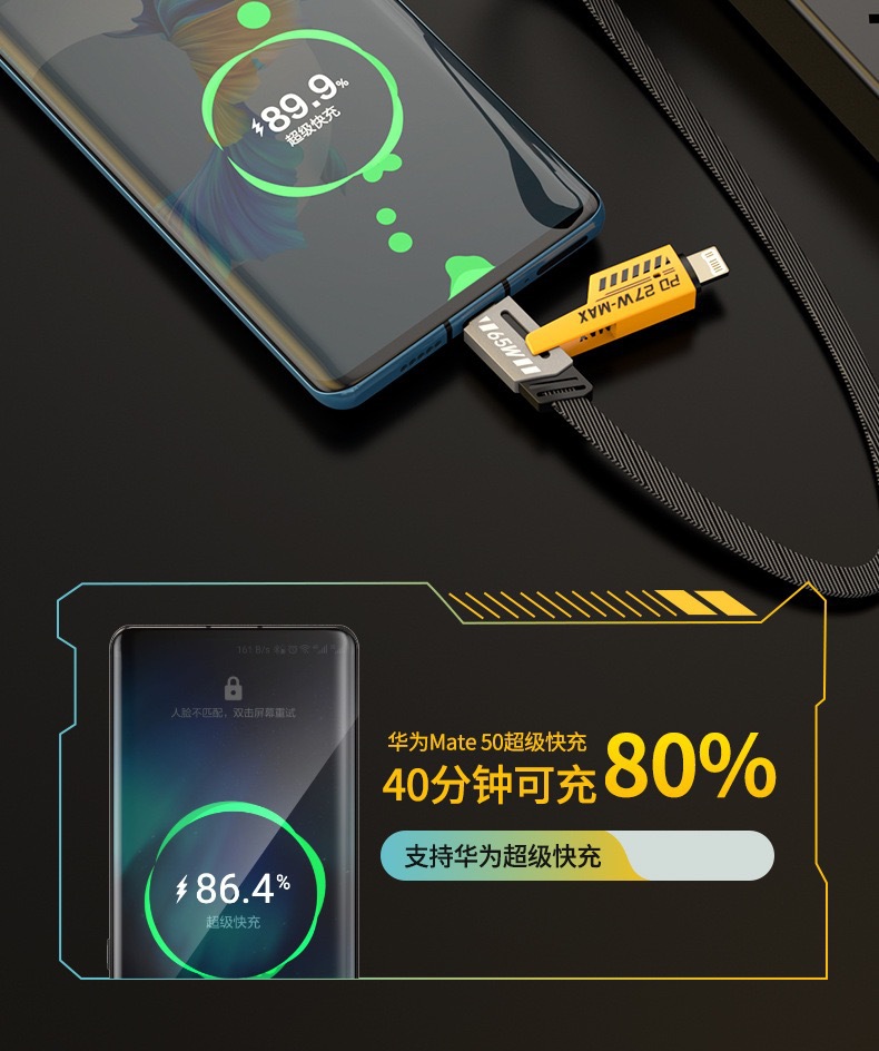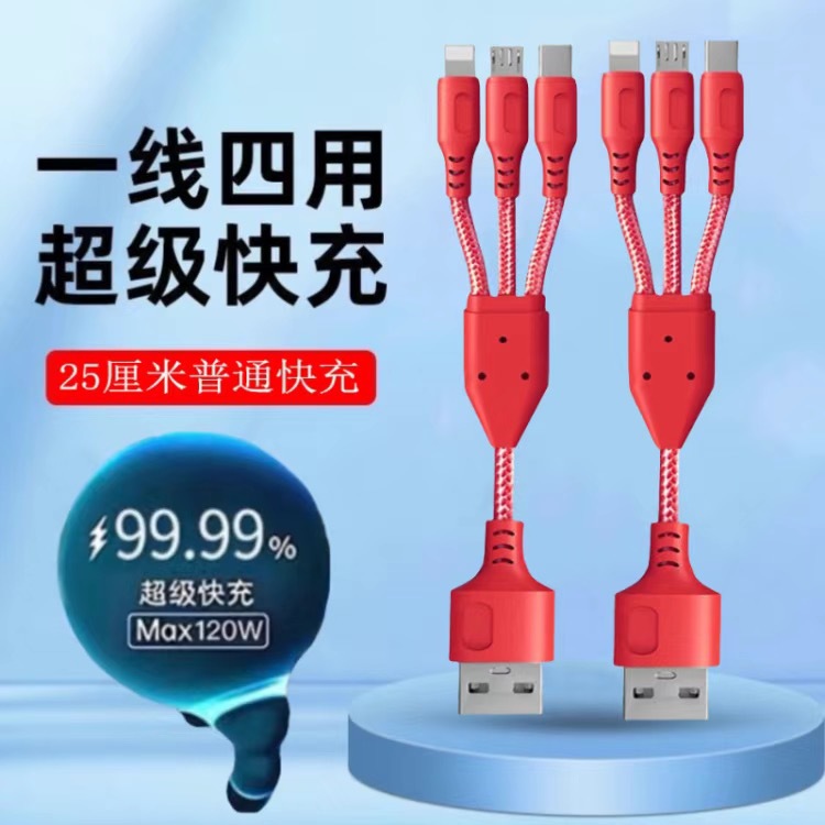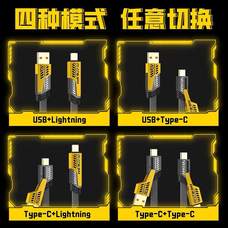迷你数据线四合一发光超级快充PD充电器双typec快充线手机平板线