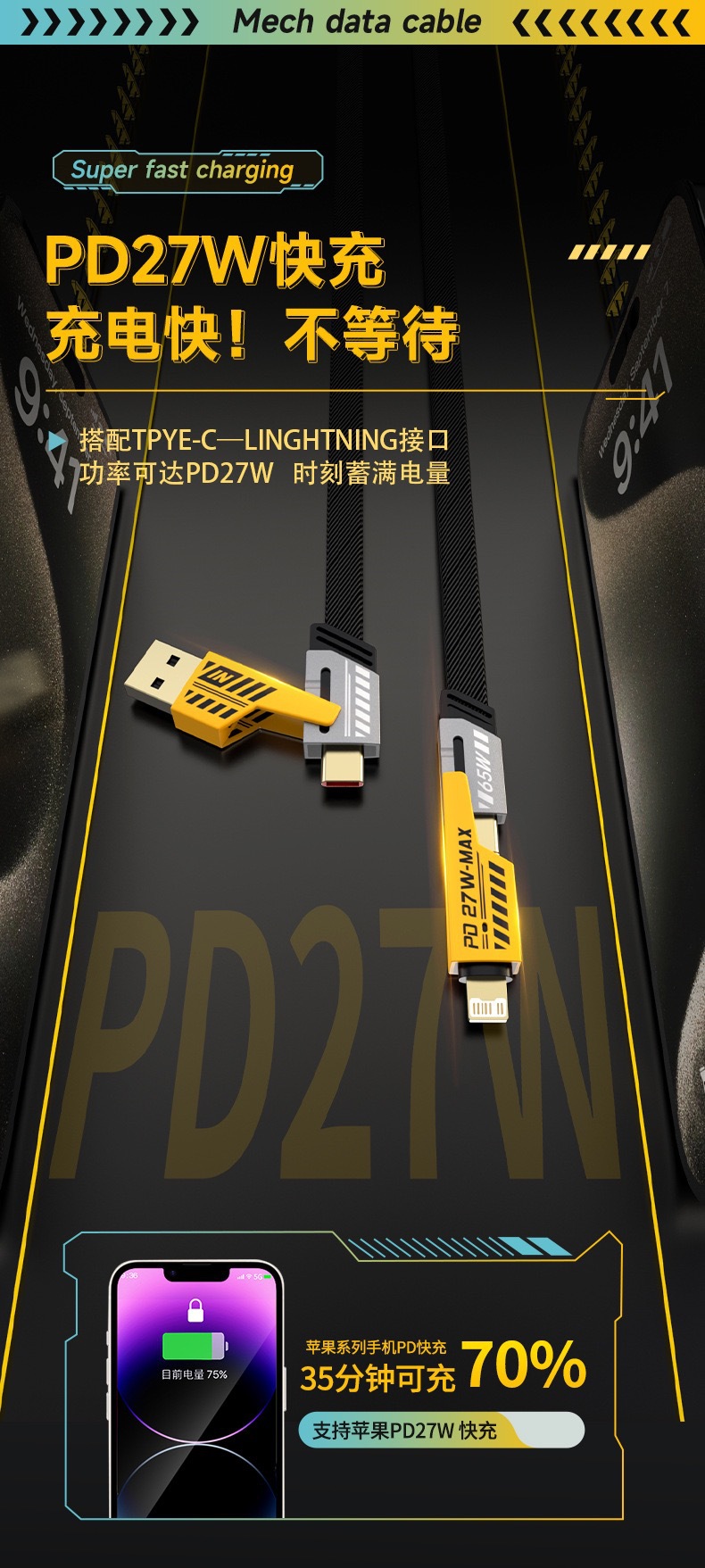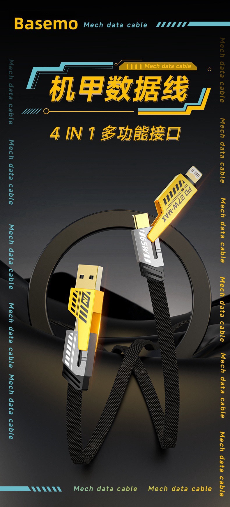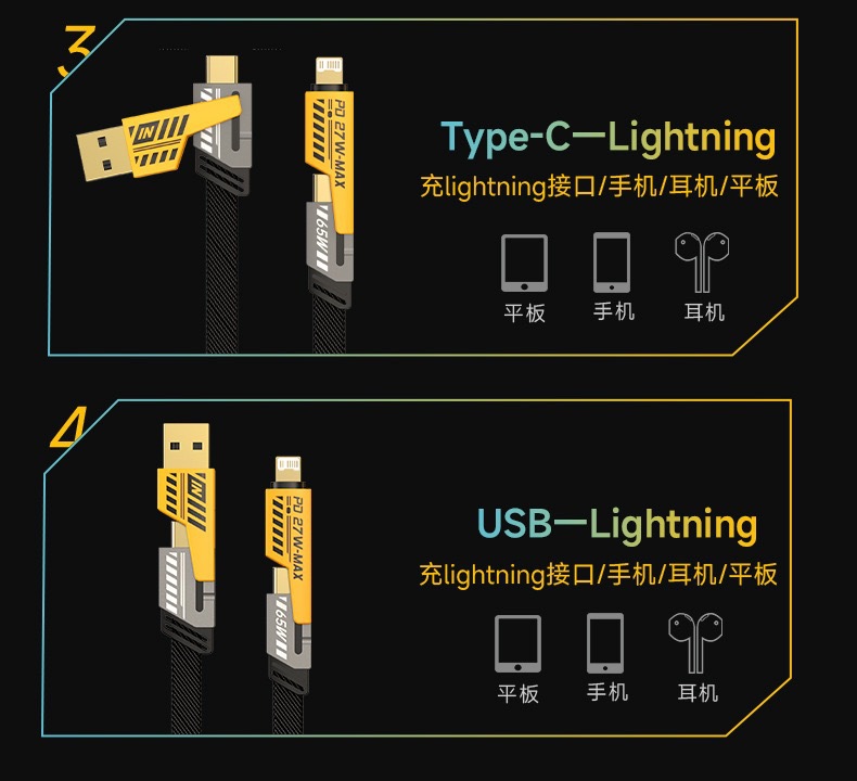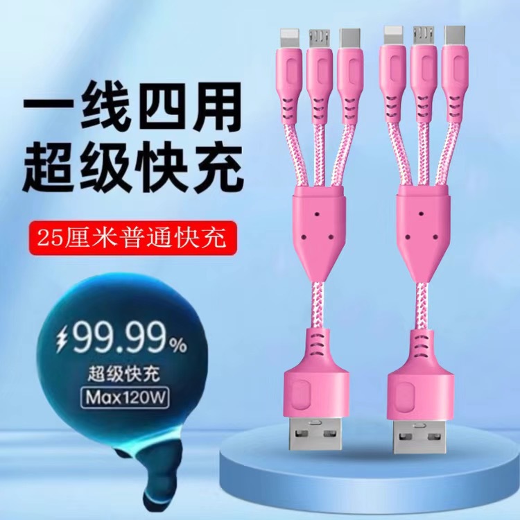 迷你数据线四合一发光超级快充PD充电器双typec快充线手机平板线
