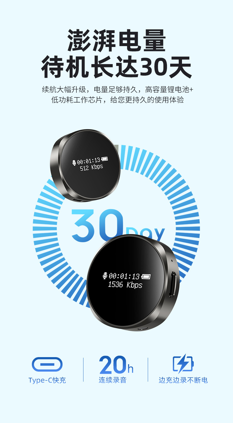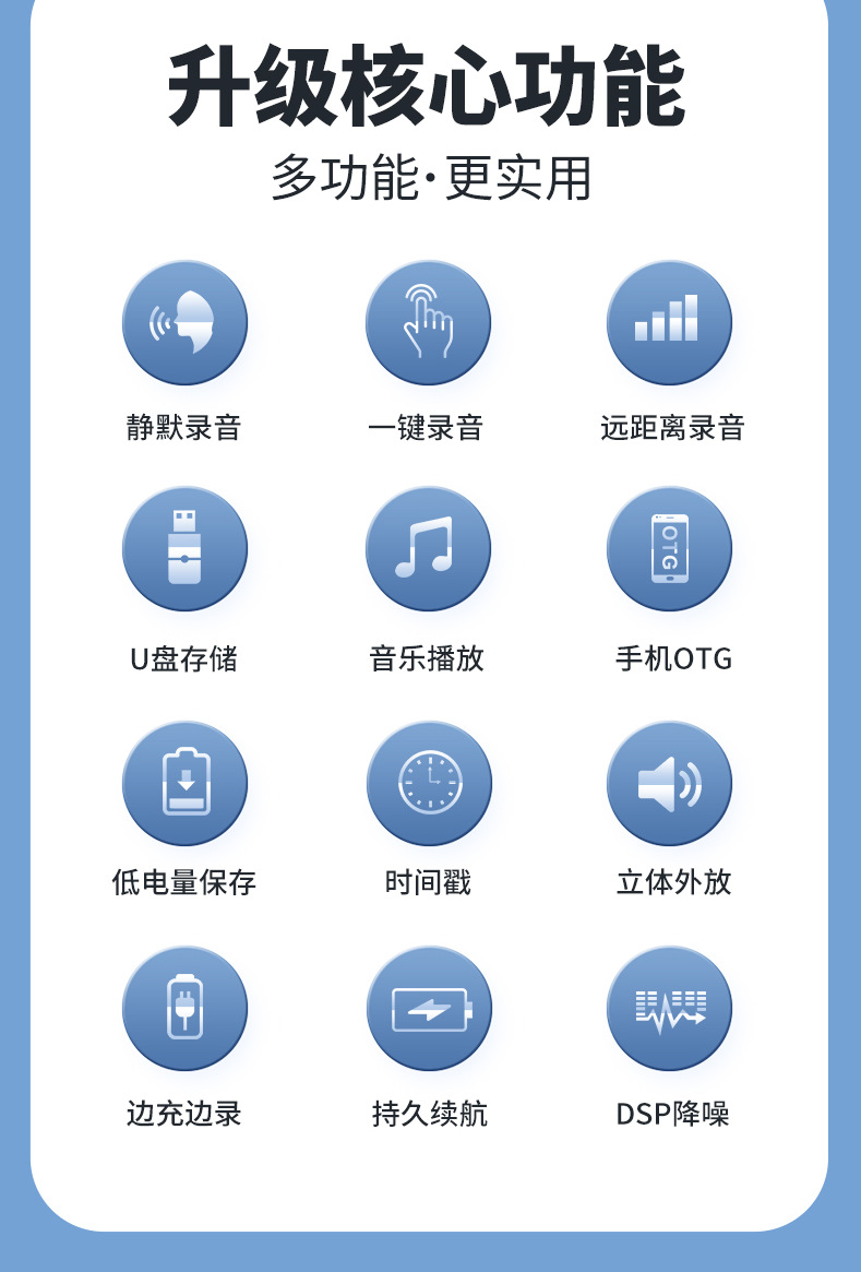 新款8G/32G/64G录音笔高清降噪商务会议学生便携式录音笔声控