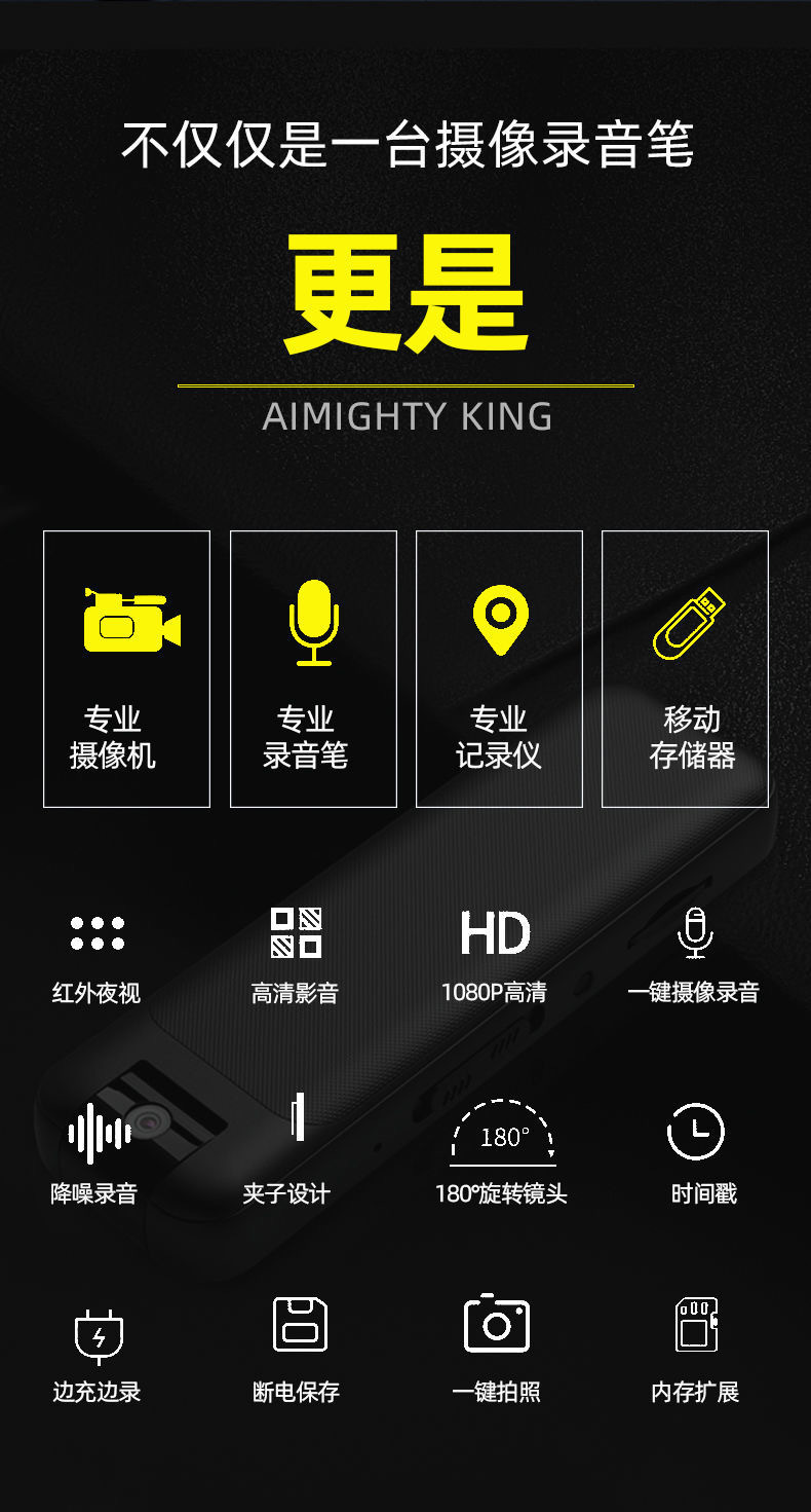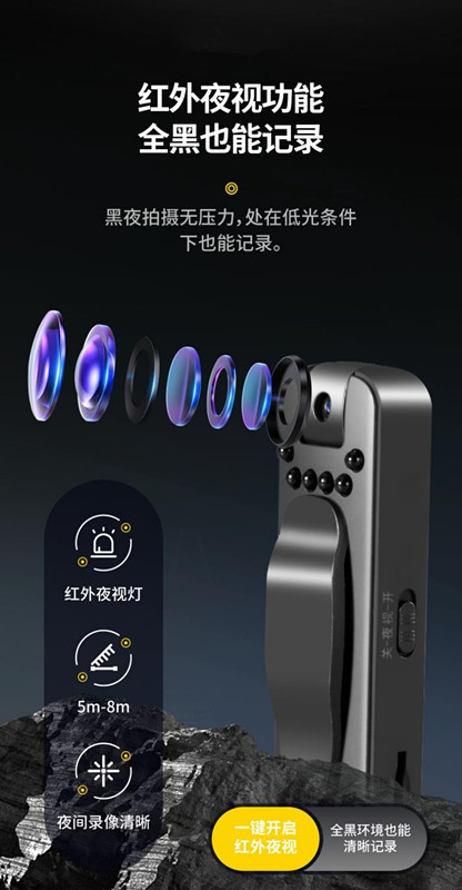 跨境供应录像机录音笔高清1080P智能降噪运动插卡背夹摄像机批发