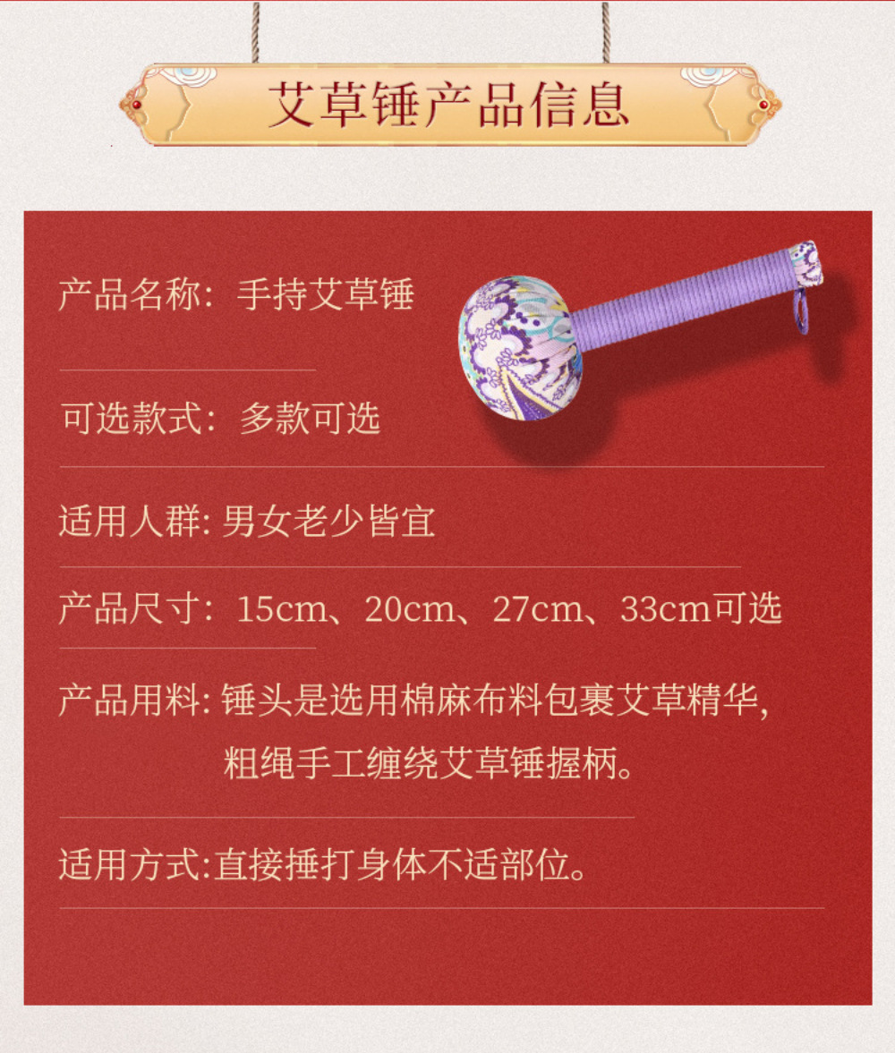艾草锤手工diy艾灸锤艾草养生锤礼盒经络按摩锤艾草捶艾叶锤艾锤