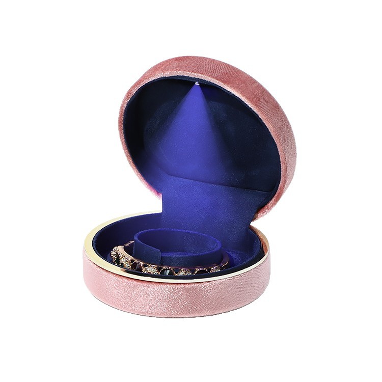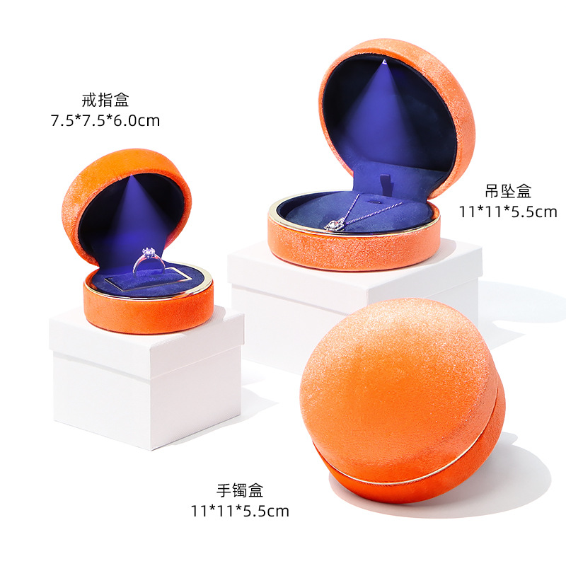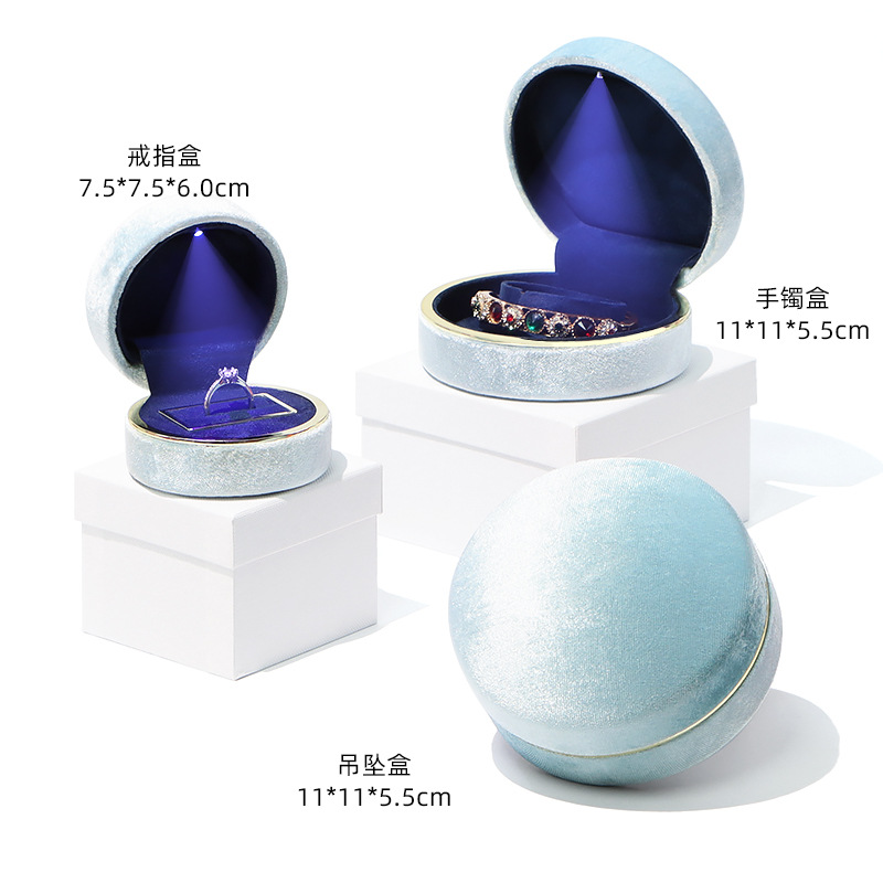 新款圆形绒布灯盒LED带灯珠宝首饰盒戒指盒吊坠盒项链礼物包装盒