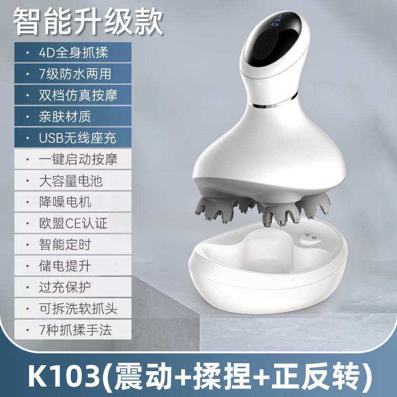 跨境头部按摩器头疗解压穴位电动经络刷防水揉捏手持式头皮按摩仪