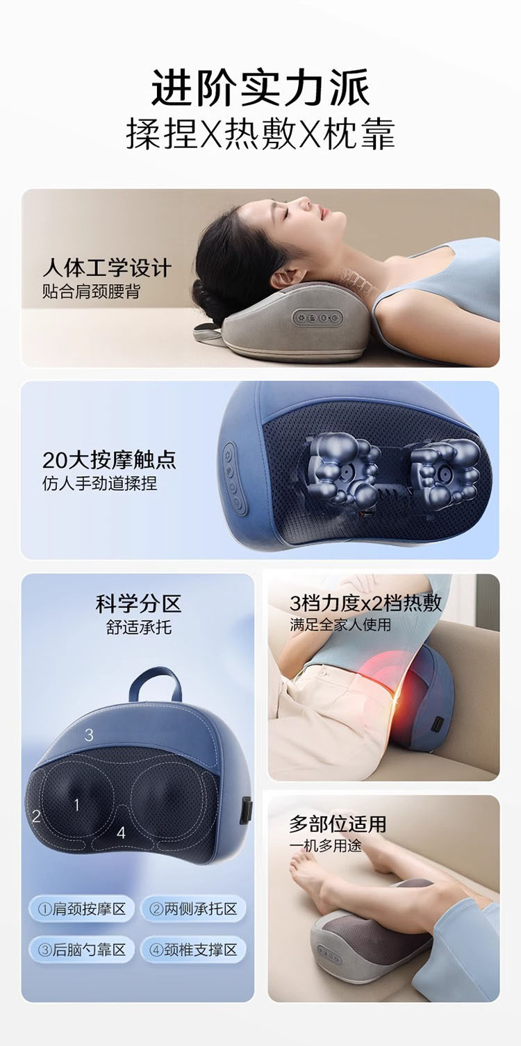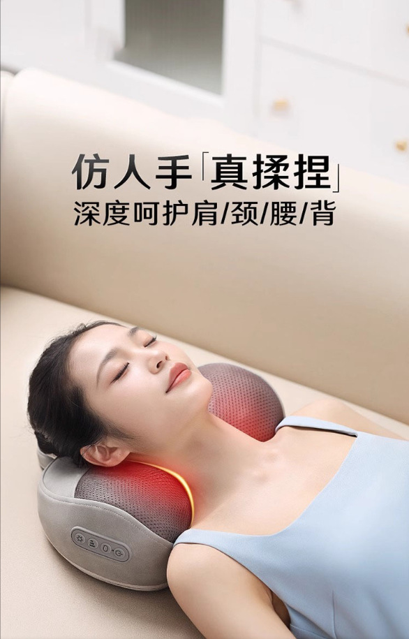 跨境新款按摩枕按摩仪器热敷腰背颈椎肩颈部揉捏颈椎肩颈按摩枕