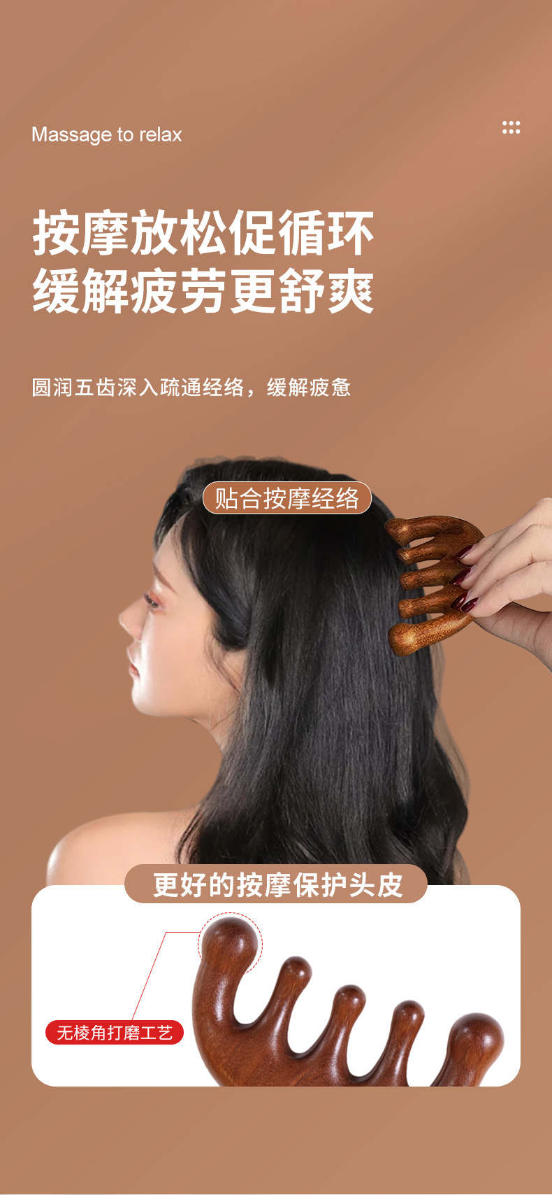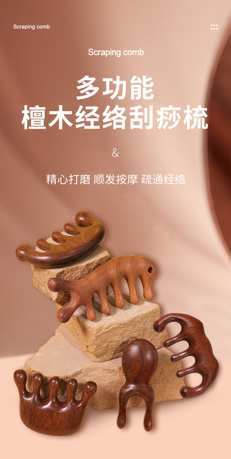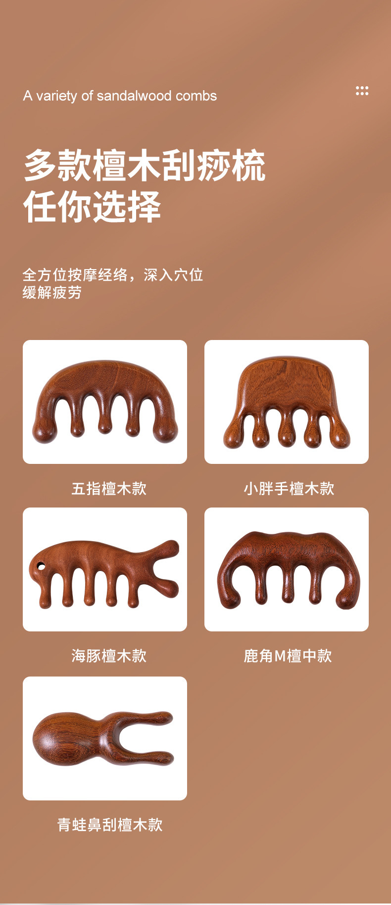 檀木经络刮痧梳头部按摩五齿全身通用按摩神器养生头疗梳工厂批发