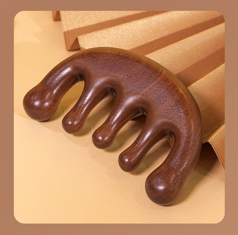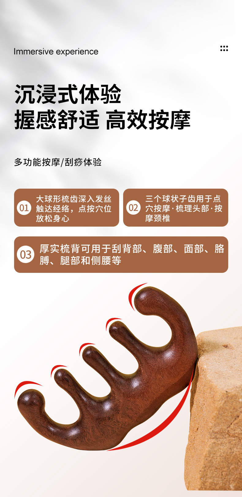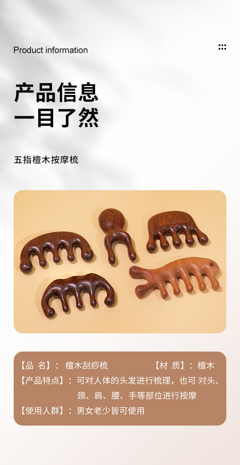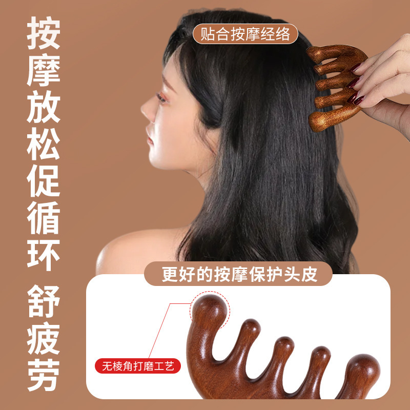 檀木经络刮痧梳头部按摩五齿全身通用按摩神器养生头疗梳工厂批发