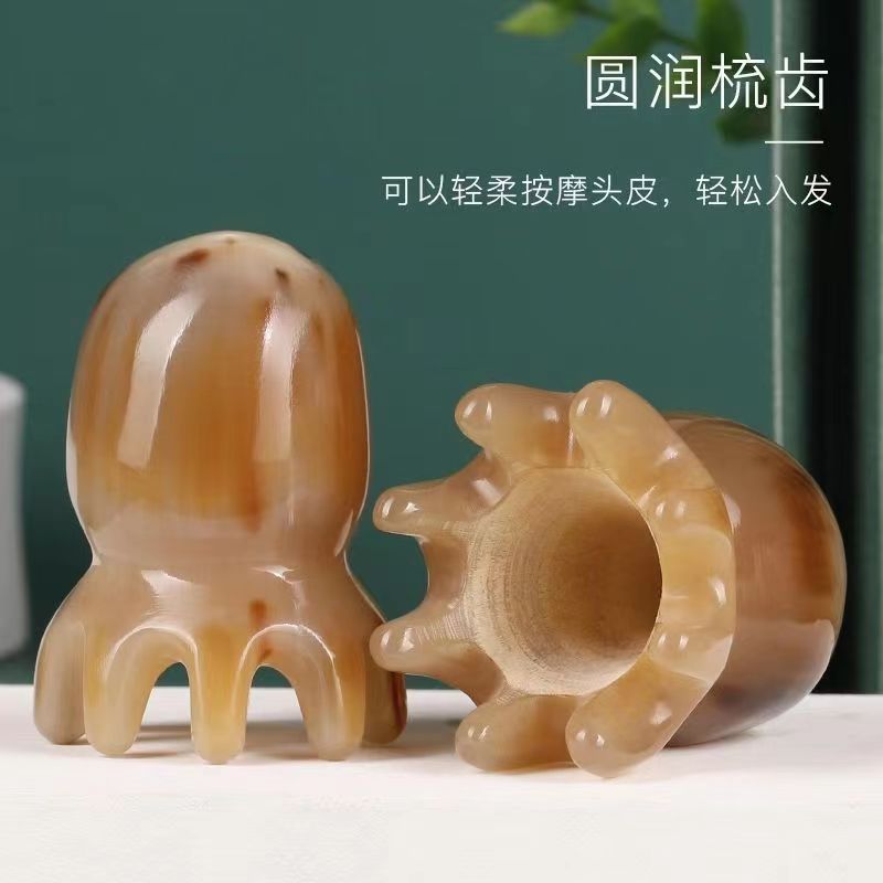 正品按摩刮痧牛角章鱼按摩梳子女脱头疗头部经络防木梳发刮痧皮宽